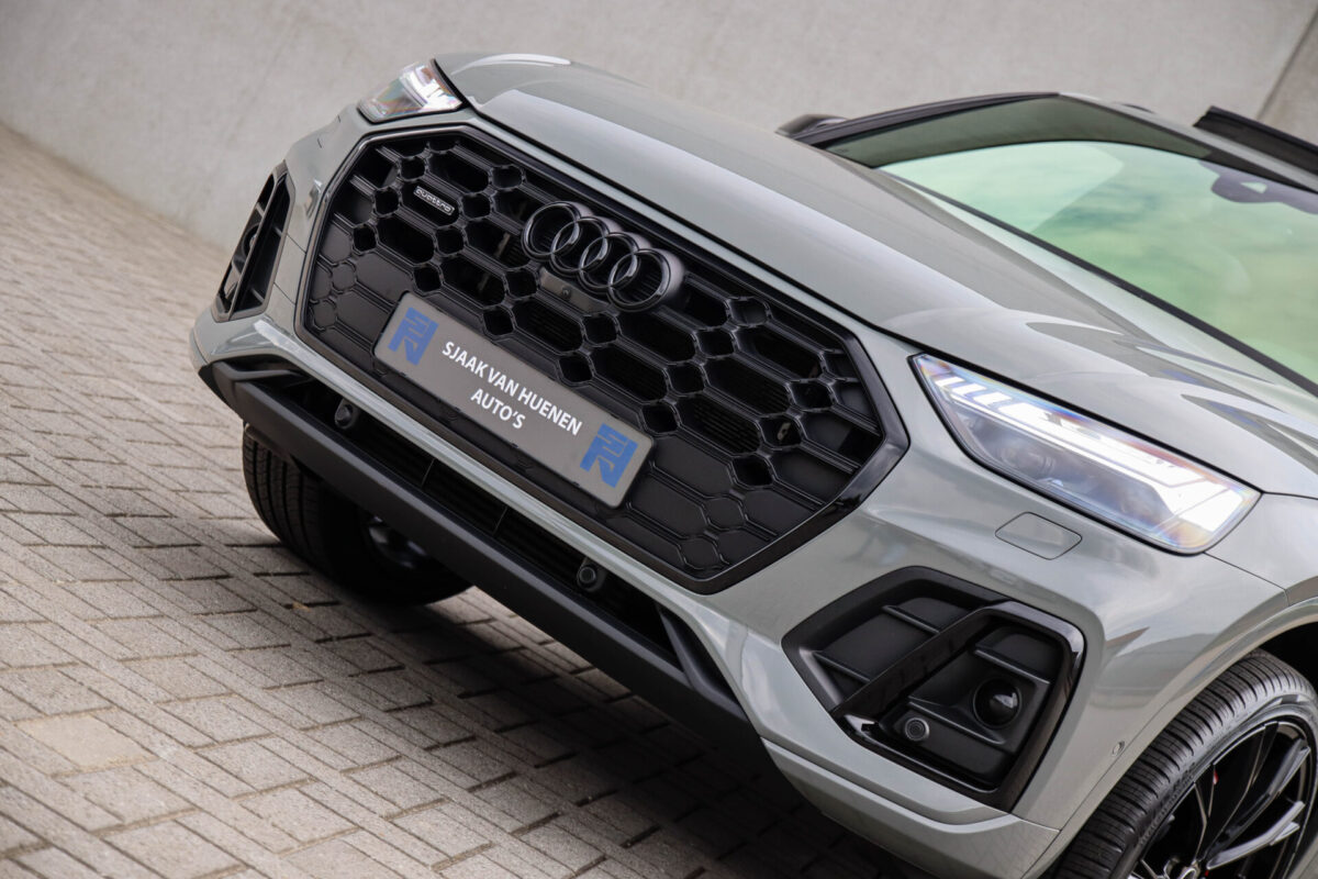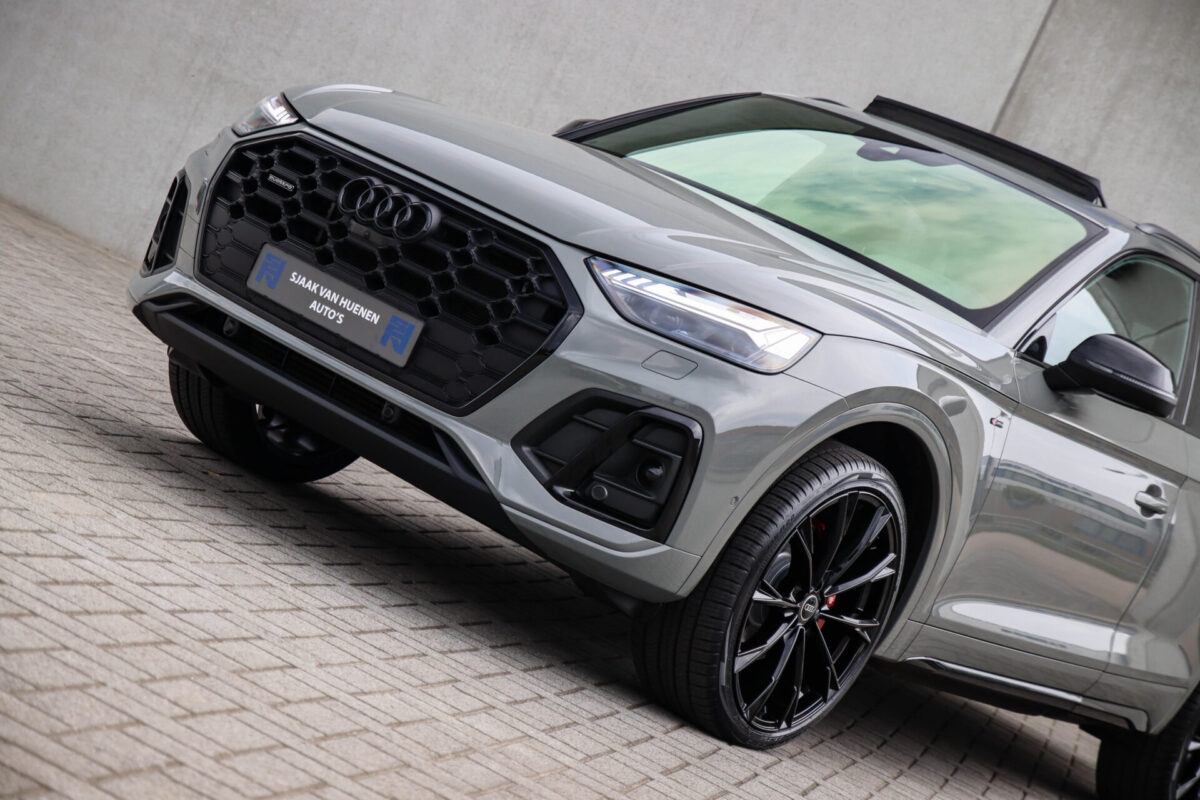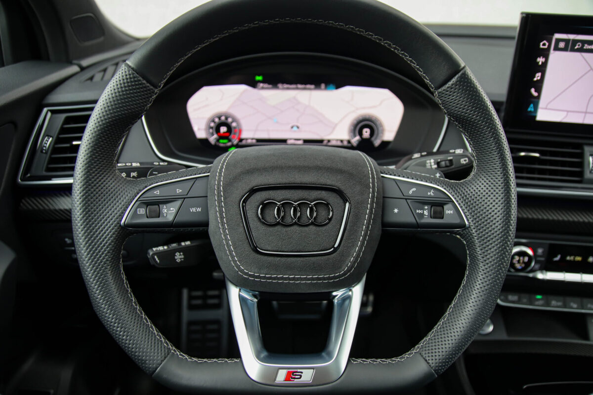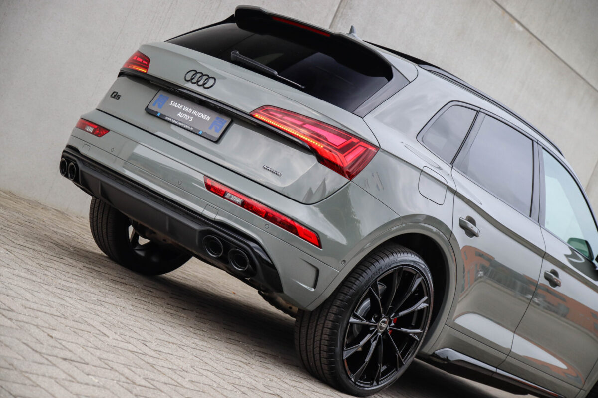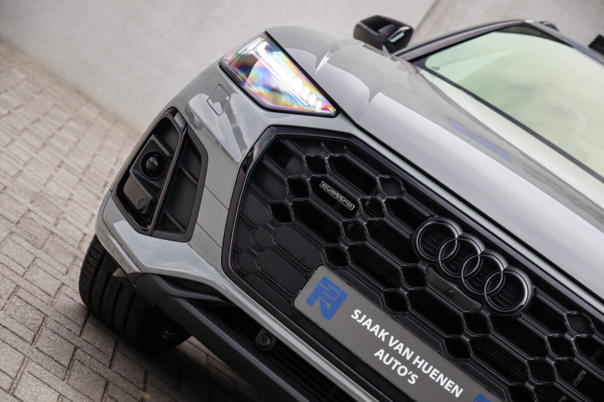 NIEUW MODEL | MODEL 2022! Een in uitmuntende staat verkerende Audi Q5 50 TFSI e 220kw/299pk Quattro Competition S-Tronic Automaat Pro Line S S-Line! Rechtstreeks aangekocht bij de Audi dealer, afkomstig van de 1e eigenaar met een uiterst interessant gecontroleerde tellerstand van slechts 55.588km. In perfecte fabrieksconfiguratie; Quantum Grey parel lak gecombineerd met het Zwart optiekpakket, de Elektrisch verstelbare zwart lederen S kuipstoelen met Diamond Cross stitching met stoelmassage + Audi Exclusive Alcantara airbag, het Panoramisch glazen schuif-/kanteldak en natuurlijk de Audi Virtual Cockpit! Deze Audi biedt met de 299pk en 450Nm sterke 2.0 liter TFSI turbomotor, gekoppeld aan de Audi Quattro 4-wielaandrijving een trekvermogen van 2000kg. Het betreft een BTW-auto, dus voor zowel de zakelijke als particuliere klant interessant. De getoonde 22inch Black Performance velgenset met 4x Pirelli Scorpion ZERO Allseason banden is tegen geringe meerprijs van €2595,- te verkrijgen.