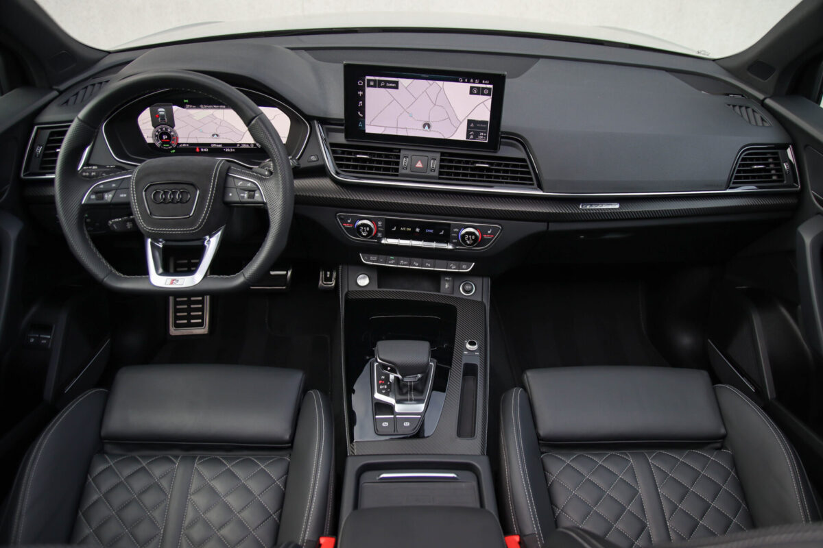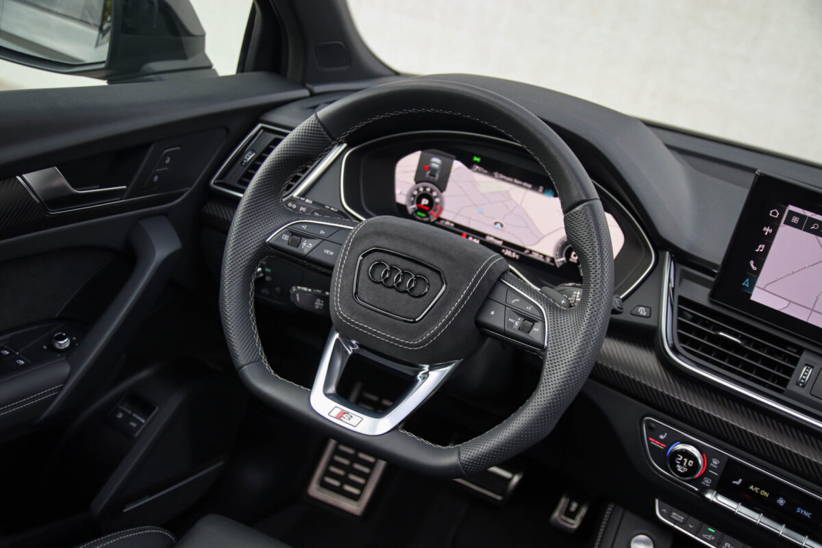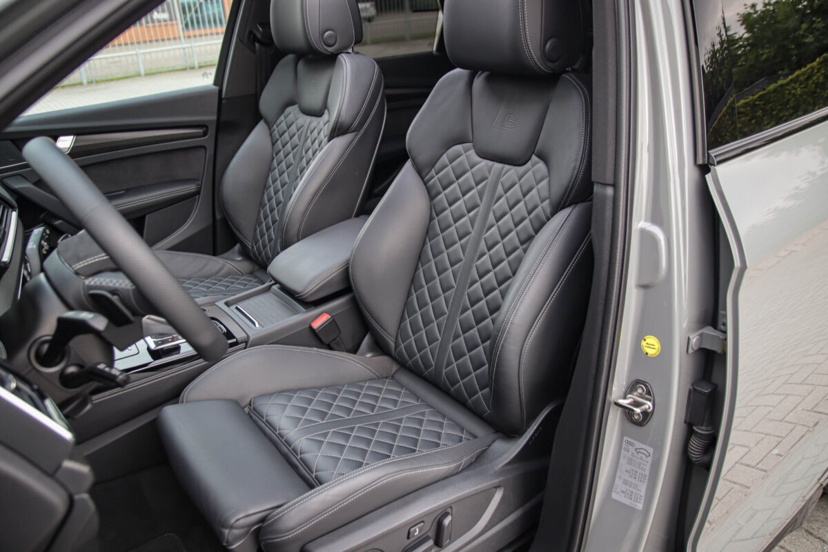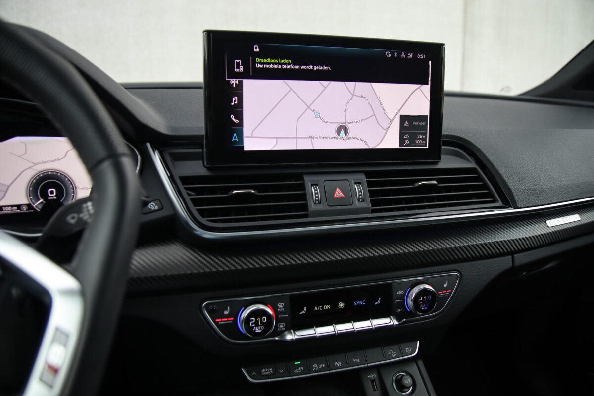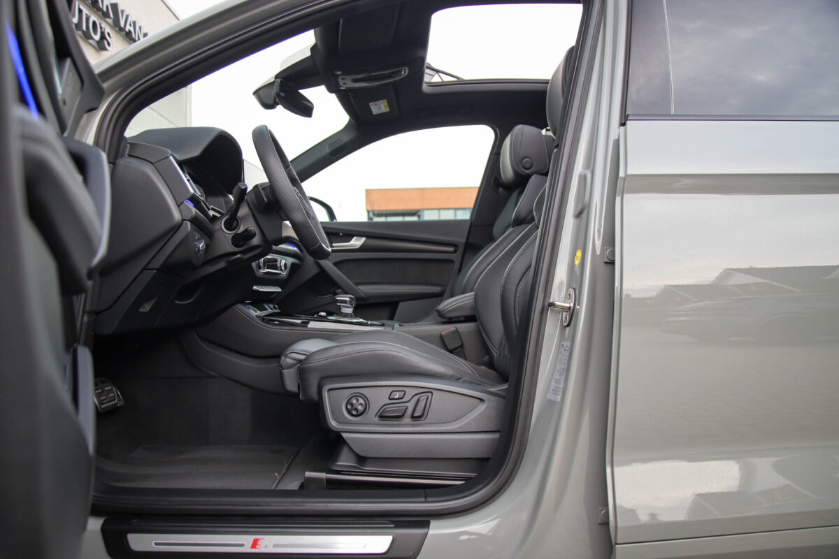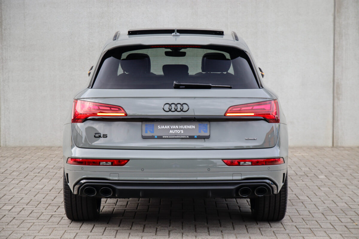NIEUW MODEL | MODEL 2022! Een in uitmuntende staat verkerende Audi Q5 50 TFSI e 220kw/299pk Quattro Competition S-Tronic Automaat Pro Line S S-Line! Rechtstreeks aangekocht bij de Audi dealer, afkomstig van de 1e eigenaar met een uiterst interessant gecontroleerde tellerstand van slechts 55.588km. In perfecte fabrieksconfiguratie; Quantum Grey parel lak gecombineerd met het Zwart optiekpakket, de Elektrisch verstelbare zwart lederen S kuipstoelen met Diamond Cross stitching met stoelmassage + Audi Exclusive Alcantara airbag, het Panoramisch glazen schuif-/kanteldak en natuurlijk de Audi Virtual Cockpit! Deze Audi biedt met de 299pk en 450Nm sterke 2.0 liter TFSI turbomotor, gekoppeld aan de Audi Quattro 4-wielaandrijving een trekvermogen van 2000kg. Het betreft een BTW-auto, dus voor zowel de zakelijke als particuliere klant interessant. De getoonde 22inch Black Performance velgenset met 4x Pirelli Scorpion ZERO Allseason banden is tegen geringe meerprijs van €2595,- te verkrijgen.