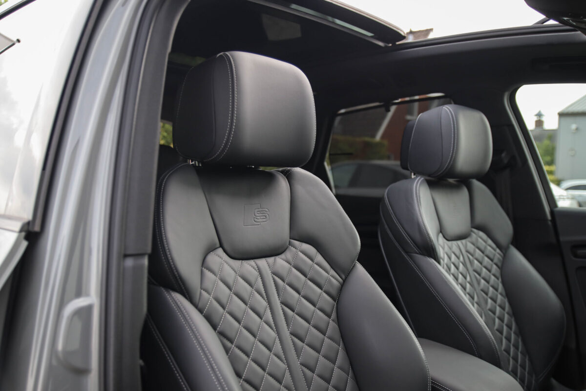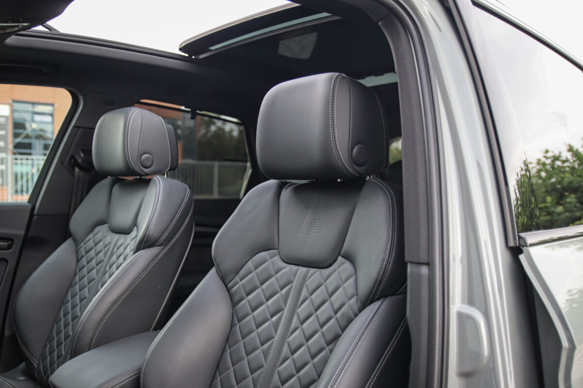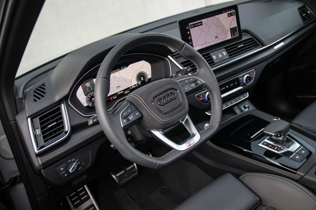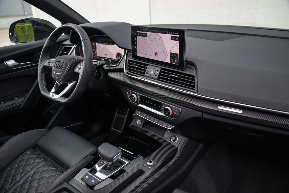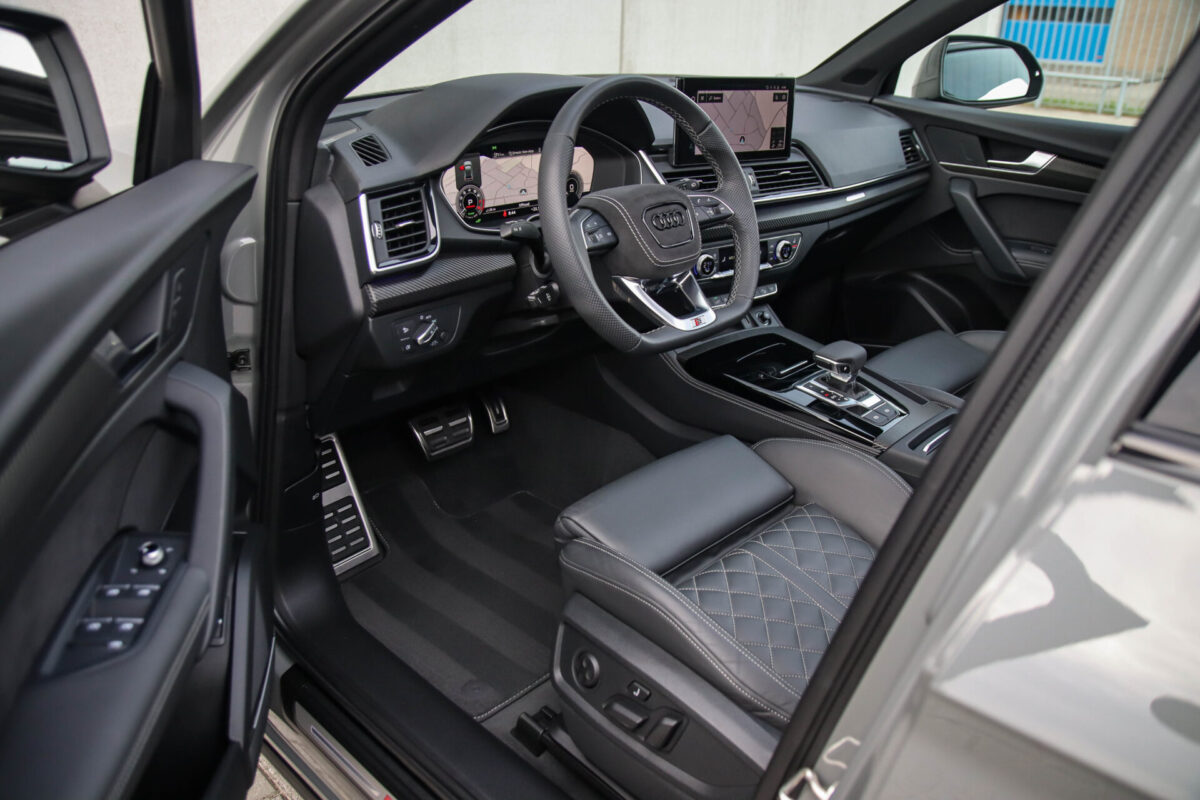 NIEUW MODEL | MODEL 2022! Een in uitmuntende staat verkerende Audi Q5 50 TFSI e 220kw/299pk Quattro Competition S-Tronic Automaat Pro Line S S-Line! Rechtstreeks aangekocht bij de Audi dealer, afkomstig van de 1e eigenaar met een uiterst interessant gecontroleerde tellerstand van slechts 55.588km. In perfecte fabrieksconfiguratie; Quantum Grey parel lak gecombineerd met het Zwart optiekpakket, de Elektrisch verstelbare zwart lederen S kuipstoelen met Diamond Cross stitching met stoelmassage + Audi Exclusive Alcantara airbag, het Panoramisch glazen schuif-/kanteldak en natuurlijk de Audi Virtual Cockpit! Deze Audi biedt met de 299pk en 450Nm sterke 2.0 liter TFSI turbomotor, gekoppeld aan de Audi Quattro 4-wielaandrijving een trekvermogen van 2000kg. Het betreft een BTW-auto, dus voor zowel de zakelijke als particuliere klant interessant. De getoonde 22inch Black Performance velgenset met 4x Pirelli Scorpion ZERO Allseason banden is tegen geringe meerprijs van €2595,- te verkrijgen.