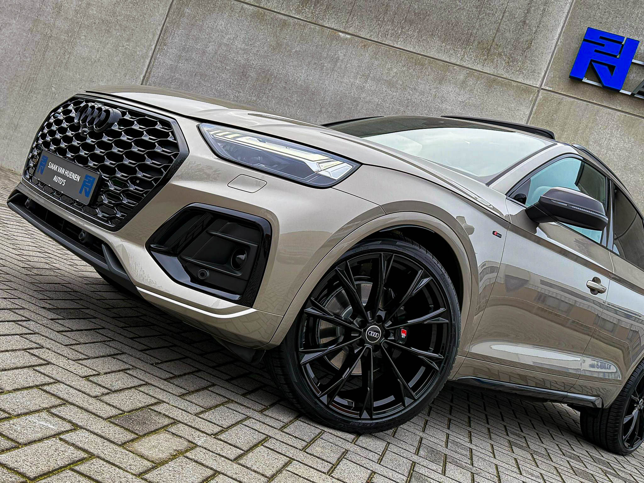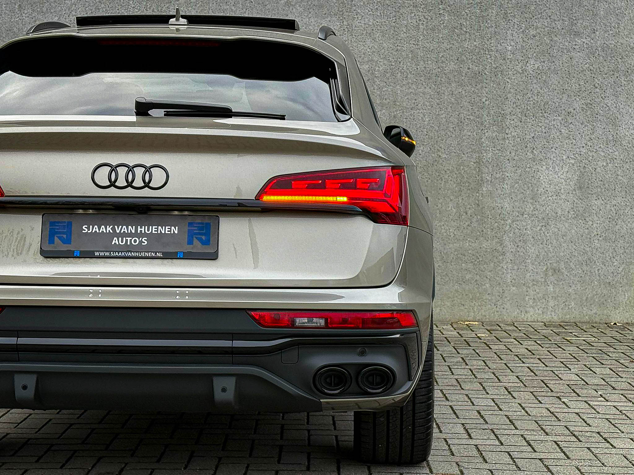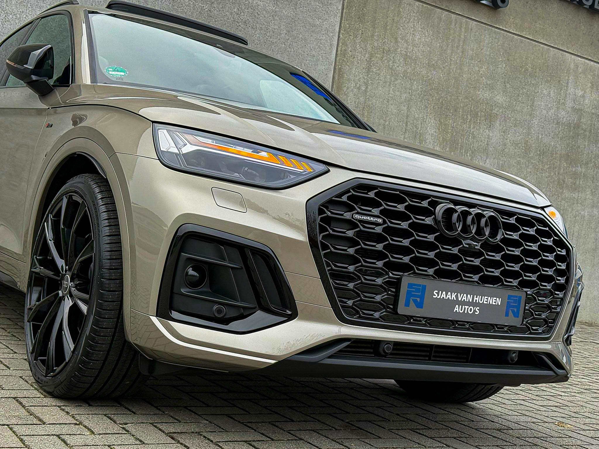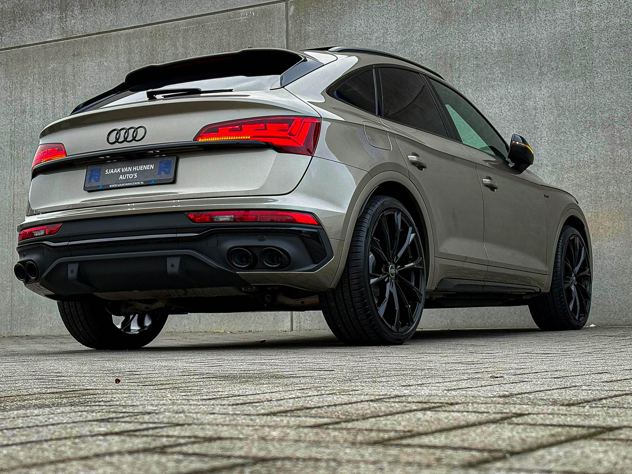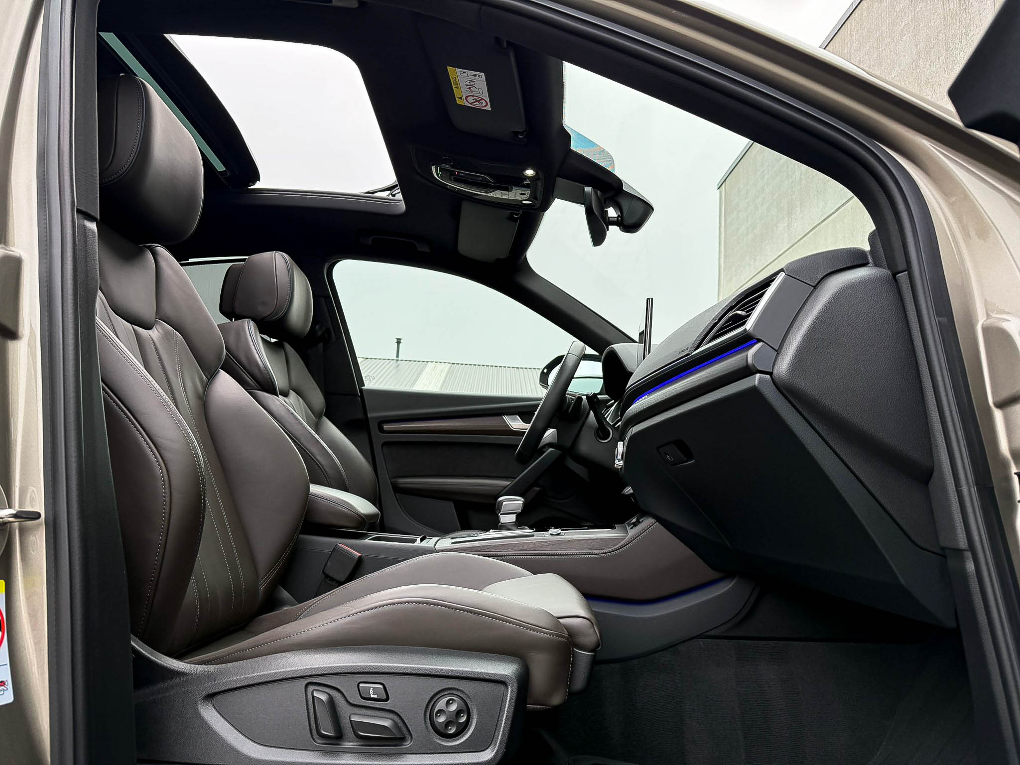 NIEUW MODEL | MODEL 2023! Een bijzonder unieke  Audi Q5 Sportback 50 TFSI e 220kw/299pk Quattro Competition S-Tronic Automaat Pro Line S S-Line! Het betreft een origineel AUDI EXCLUSIVE dealer exemplaar welke afkomstig is van de 1e eigenaar met een zeer nette tellerstand van slechts 36.534km. In unieke en perfecte fabrieksconfiguratie; Audi Exclusive Karatbeige Metallic lak gecombineerd met het Zwart optiekpakket, De actieve comfortabele instelbare dynamische Luchtvering, De elektrisch verstelbare Audi Exclusive Bruin Valcona lederen S stoelen incl. geheugen fuctie / Memory/Massage, Audi Exclusive Alcantara airbag incl. bruine stiksels + Afgevlakt sportstuur, Verwarmde en gekoelde bekerhouders, Panoramisch glazen schuif-/kanteldak, verwarmde en gekoelde bekerhouders, stoelverwarming voor en achter en natuurlijk de Audi Virtual Cockpit plus! Deze Audi biedt met de 299pk en 450Nm sterke 2.0 liter TFSI turbomotor, gekoppeld aan de Audi Quattro 4-wielaandrijving een trekvermogen van 2000kg. Het betreft een BTW-auto, dus voor zowel de zakelijke als particuliere klant interessant. De getoonde 22inch Black Performance velgenset met 4x Pirelli Scorpion ZERO Allseason banden is tegen geringe meerprijs van €2595,- te verkrijgen.