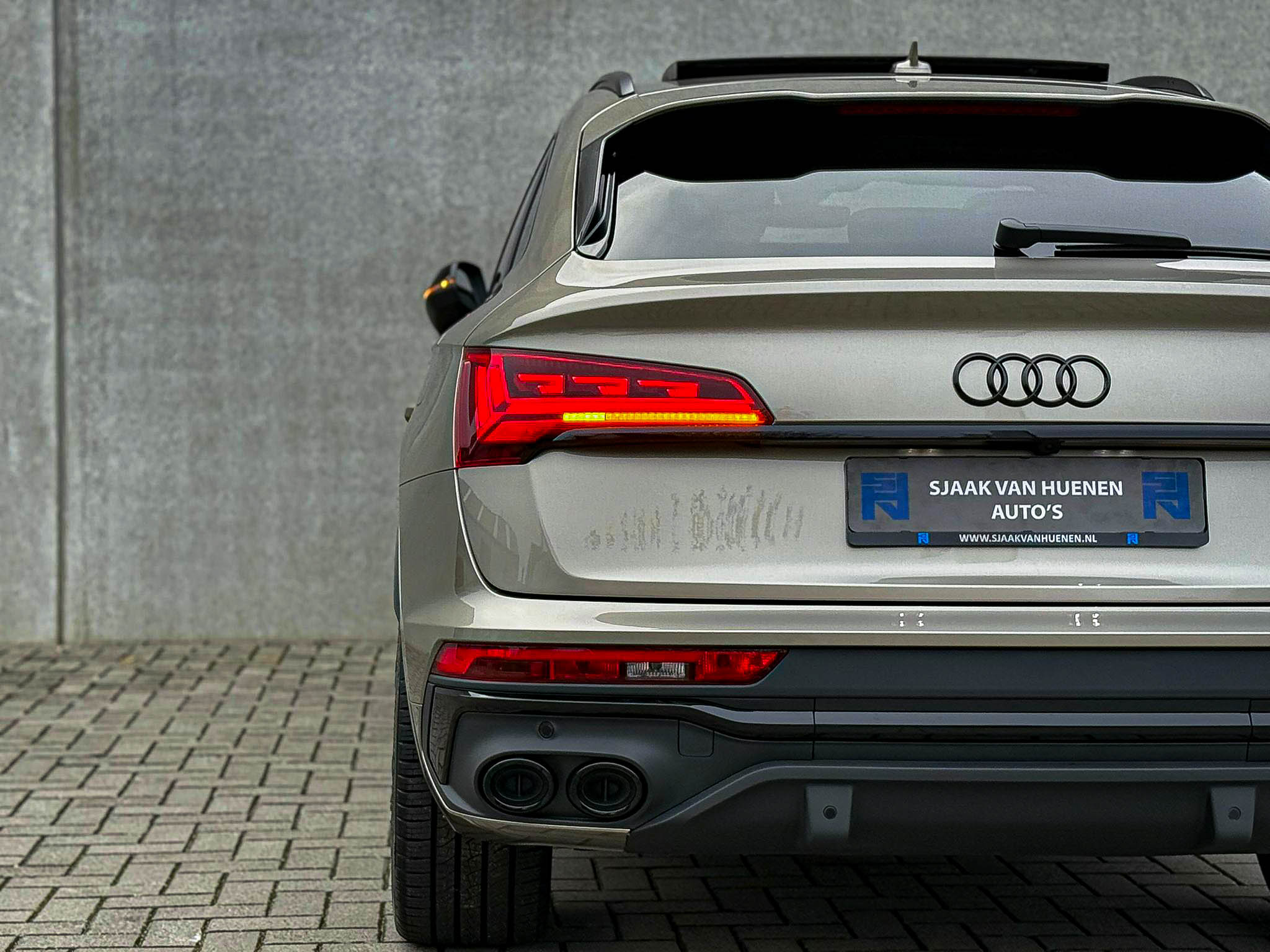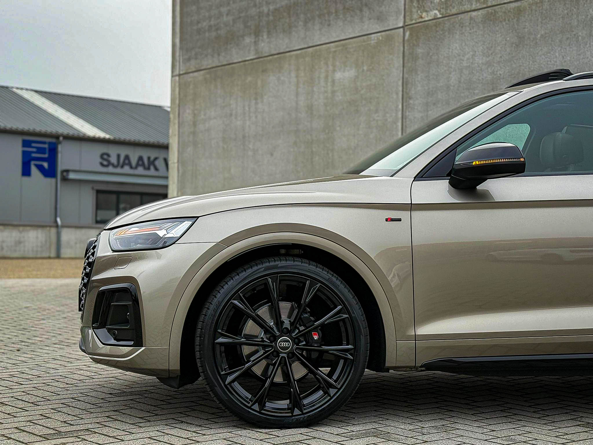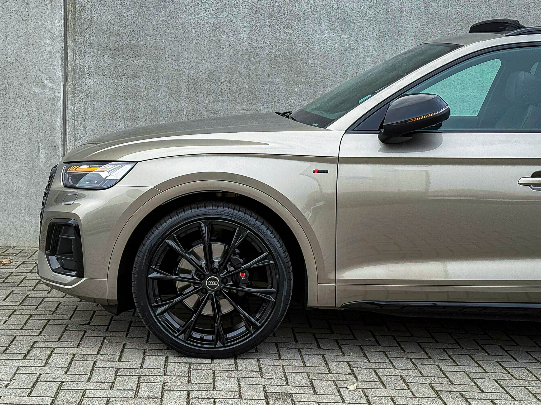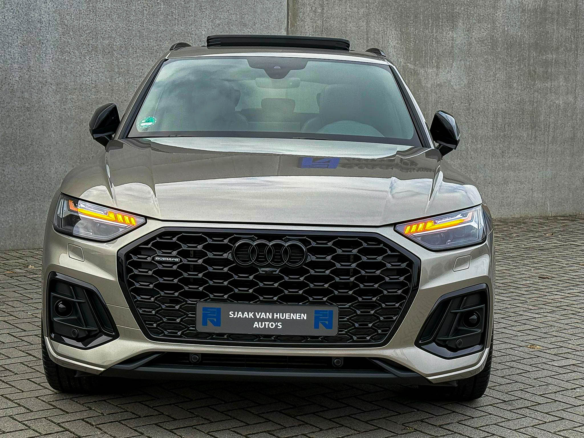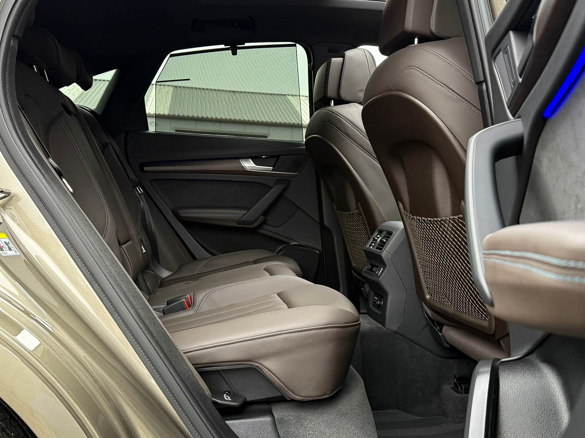 NIEUW MODEL | MODEL 2023! Een bijzonder unieke  Audi Q5 Sportback 50 TFSI e 220kw/299pk Quattro Competition S-Tronic Automaat Pro Line S S-Line! Het betreft een origineel AUDI EXCLUSIVE dealer exemplaar welke afkomstig is van de 1e eigenaar met een zeer nette tellerstand van slechts 36.534km. In unieke en perfecte fabrieksconfiguratie; Audi Exclusive Karatbeige Metallic lak gecombineerd met het Zwart optiekpakket, De actieve comfortabele instelbare dynamische Luchtvering, De elektrisch verstelbare Audi Exclusive Bruin Valcona lederen S stoelen incl. geheugen fuctie / Memory/Massage, Audi Exclusive Alcantara airbag incl. bruine stiksels + Afgevlakt sportstuur, Verwarmde en gekoelde bekerhouders, Panoramisch glazen schuif-/kanteldak, verwarmde en gekoelde bekerhouders, stoelverwarming voor en achter en natuurlijk de Audi Virtual Cockpit plus! Deze Audi biedt met de 299pk en 450Nm sterke 2.0 liter TFSI turbomotor, gekoppeld aan de Audi Quattro 4-wielaandrijving een trekvermogen van 2000kg. Het betreft een BTW-auto, dus voor zowel de zakelijke als particuliere klant interessant. De getoonde 22inch Black Performance velgenset met 4x Pirelli Scorpion ZERO Allseason banden is tegen geringe meerprijs van €2595,- te verkrijgen.