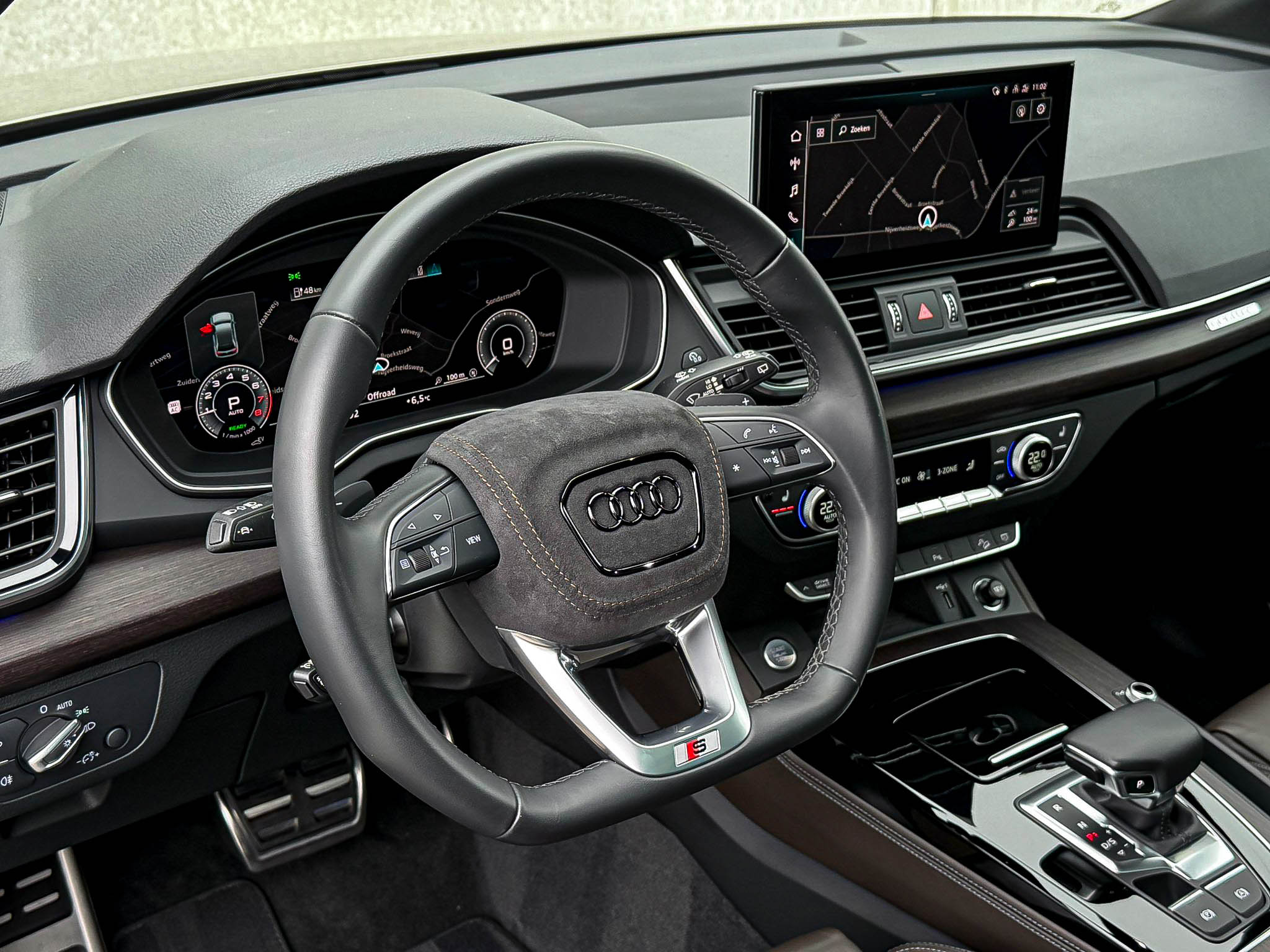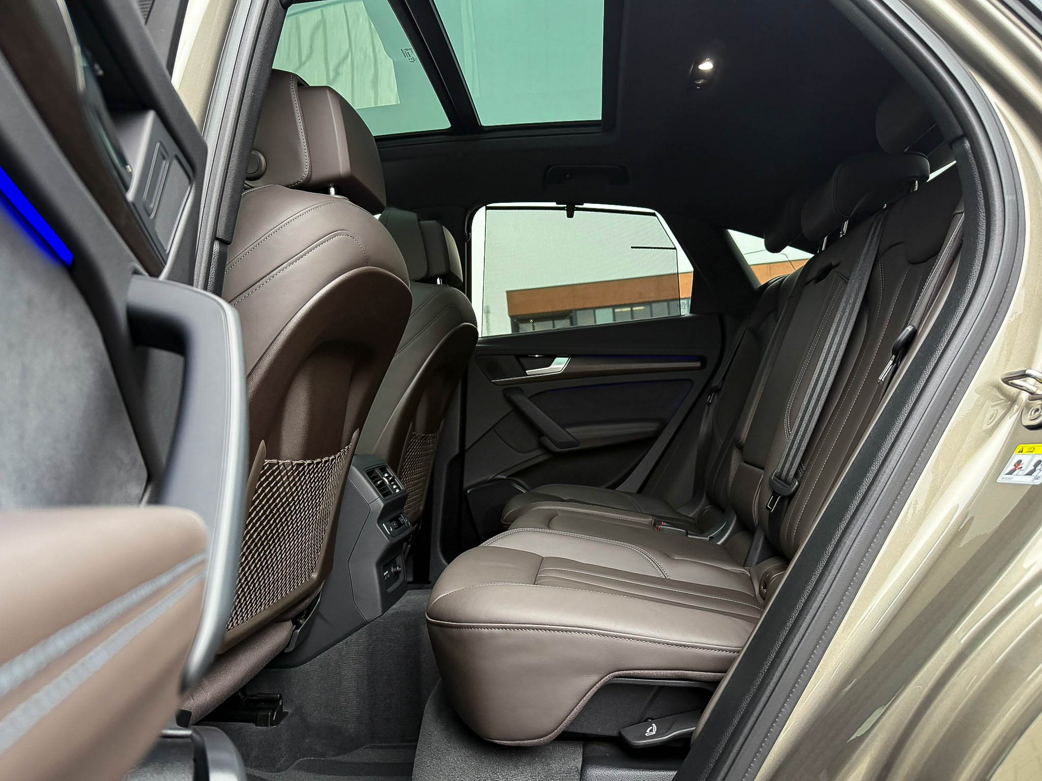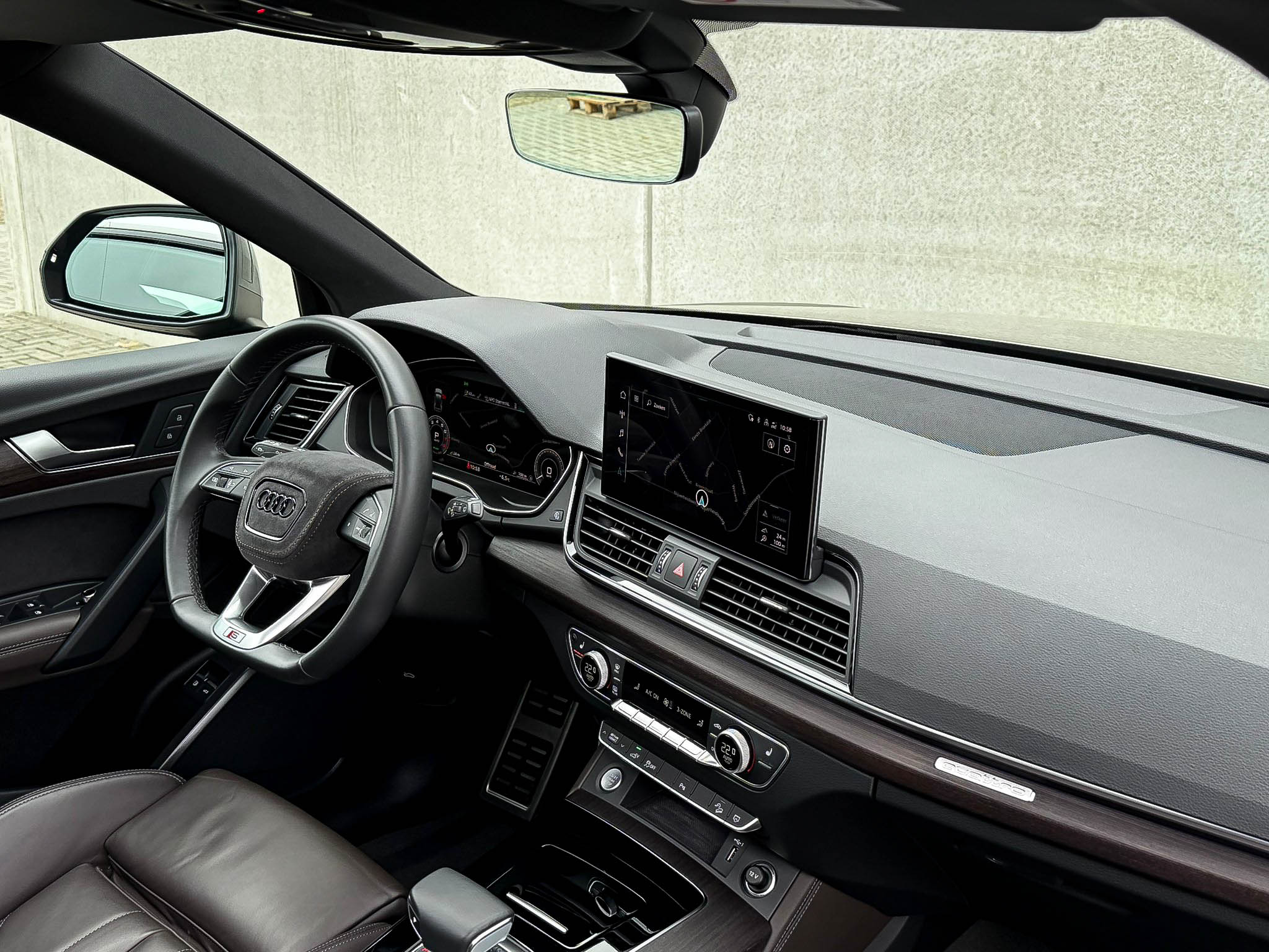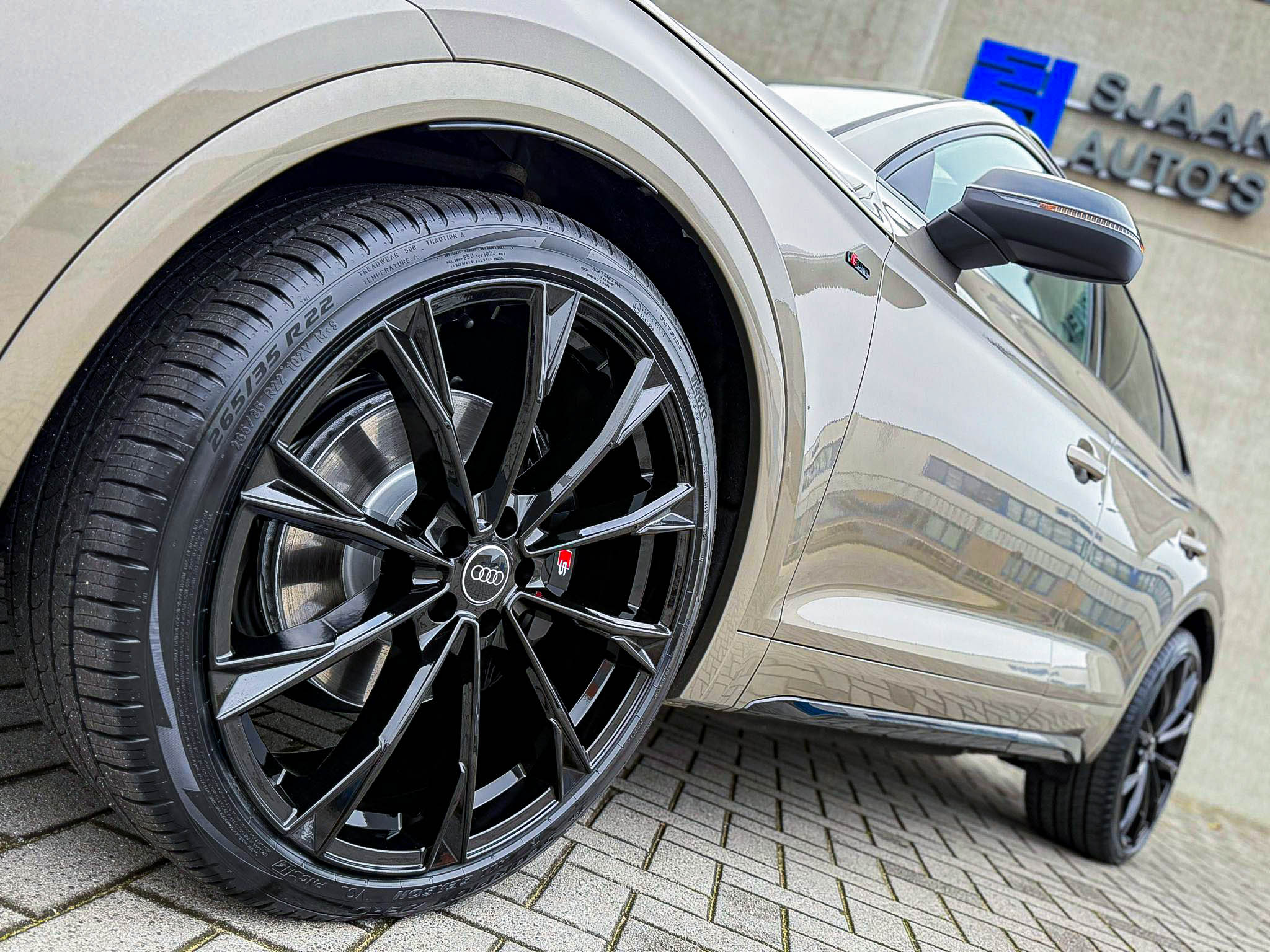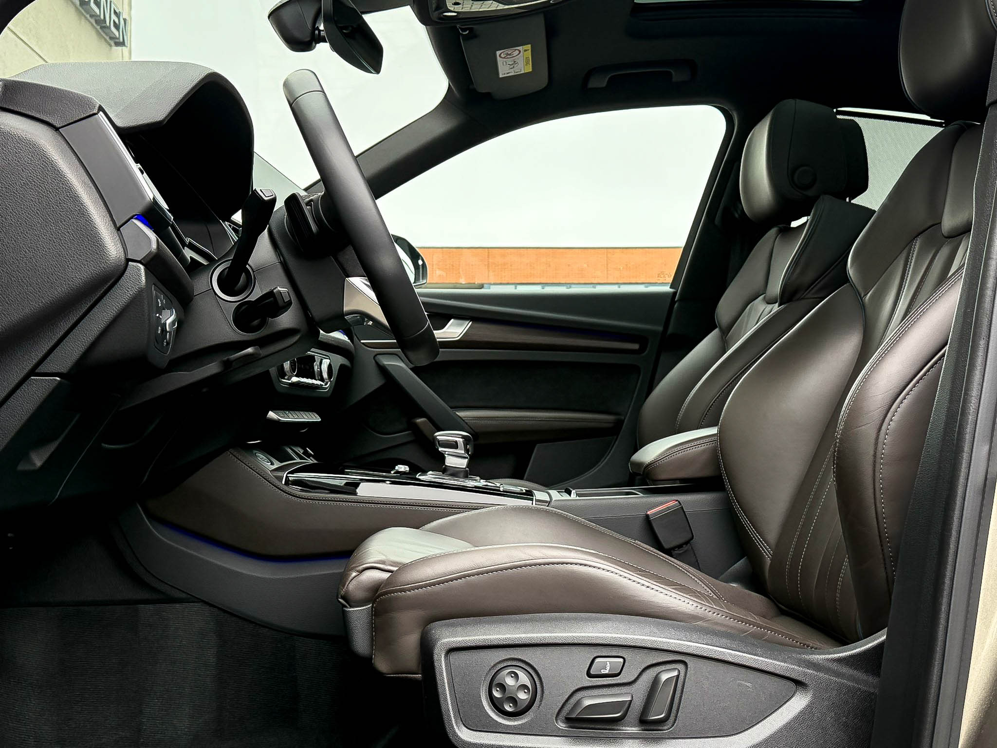 NIEUW MODEL | MODEL 2023! Een bijzonder unieke  Audi Q5 Sportback 50 TFSI e 220kw/299pk Quattro Competition S-Tronic Automaat Pro Line S S-Line! Het betreft een origineel AUDI EXCLUSIVE dealer exemplaar welke afkomstig is van de 1e eigenaar met een zeer nette tellerstand van slechts 36.534km. In unieke en perfecte fabrieksconfiguratie; Audi Exclusive Karatbeige Metallic lak gecombineerd met het Zwart optiekpakket, De actieve comfortabele instelbare dynamische Luchtvering, De elektrisch verstelbare Audi Exclusive Bruin Valcona lederen S stoelen incl. geheugen fuctie / Memory/Massage, Audi Exclusive Alcantara airbag incl. bruine stiksels + Afgevlakt sportstuur, Verwarmde en gekoelde bekerhouders, Panoramisch glazen schuif-/kanteldak, verwarmde en gekoelde bekerhouders, stoelverwarming voor en achter en natuurlijk de Audi Virtual Cockpit plus! Deze Audi biedt met de 299pk en 450Nm sterke 2.0 liter TFSI turbomotor, gekoppeld aan de Audi Quattro 4-wielaandrijving een trekvermogen van 2000kg. Het betreft een BTW-auto, dus voor zowel de zakelijke als particuliere klant interessant. De getoonde 22inch Black Performance velgenset met 4x Pirelli Scorpion ZERO Allseason banden is tegen geringe meerprijs van €2595,- te verkrijgen.