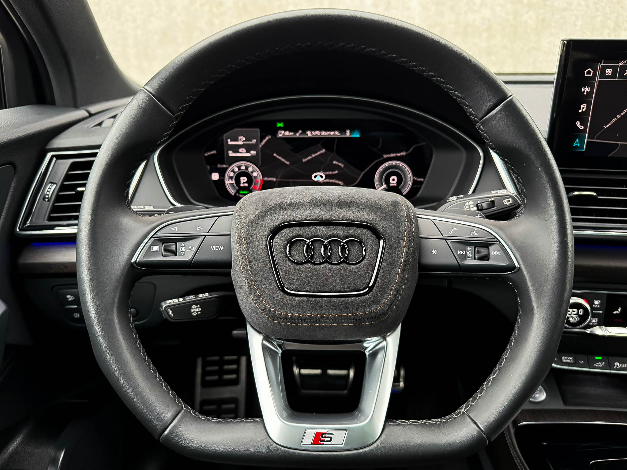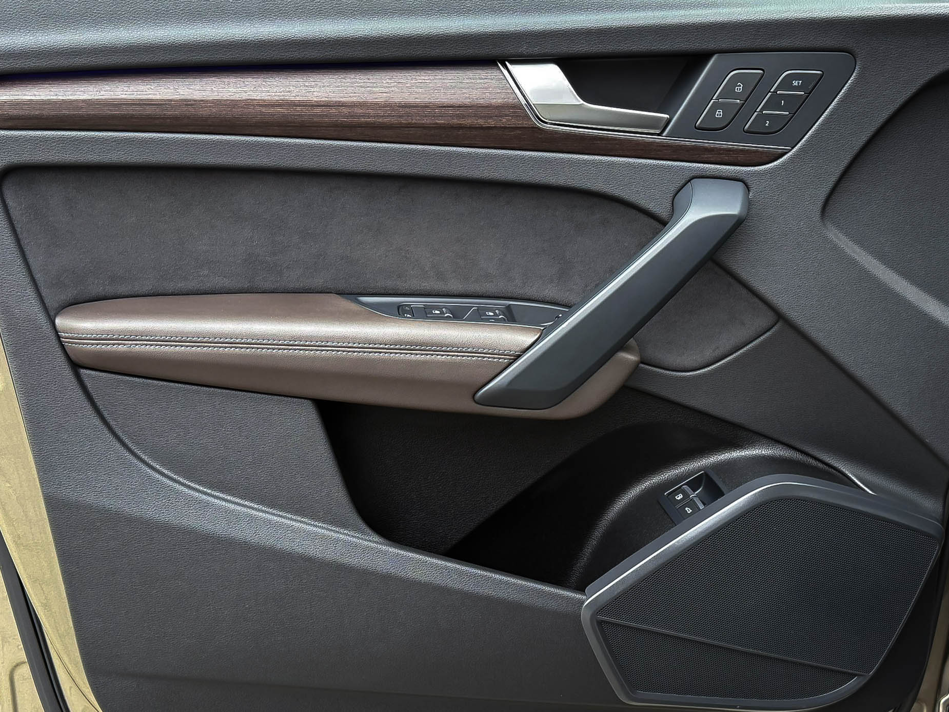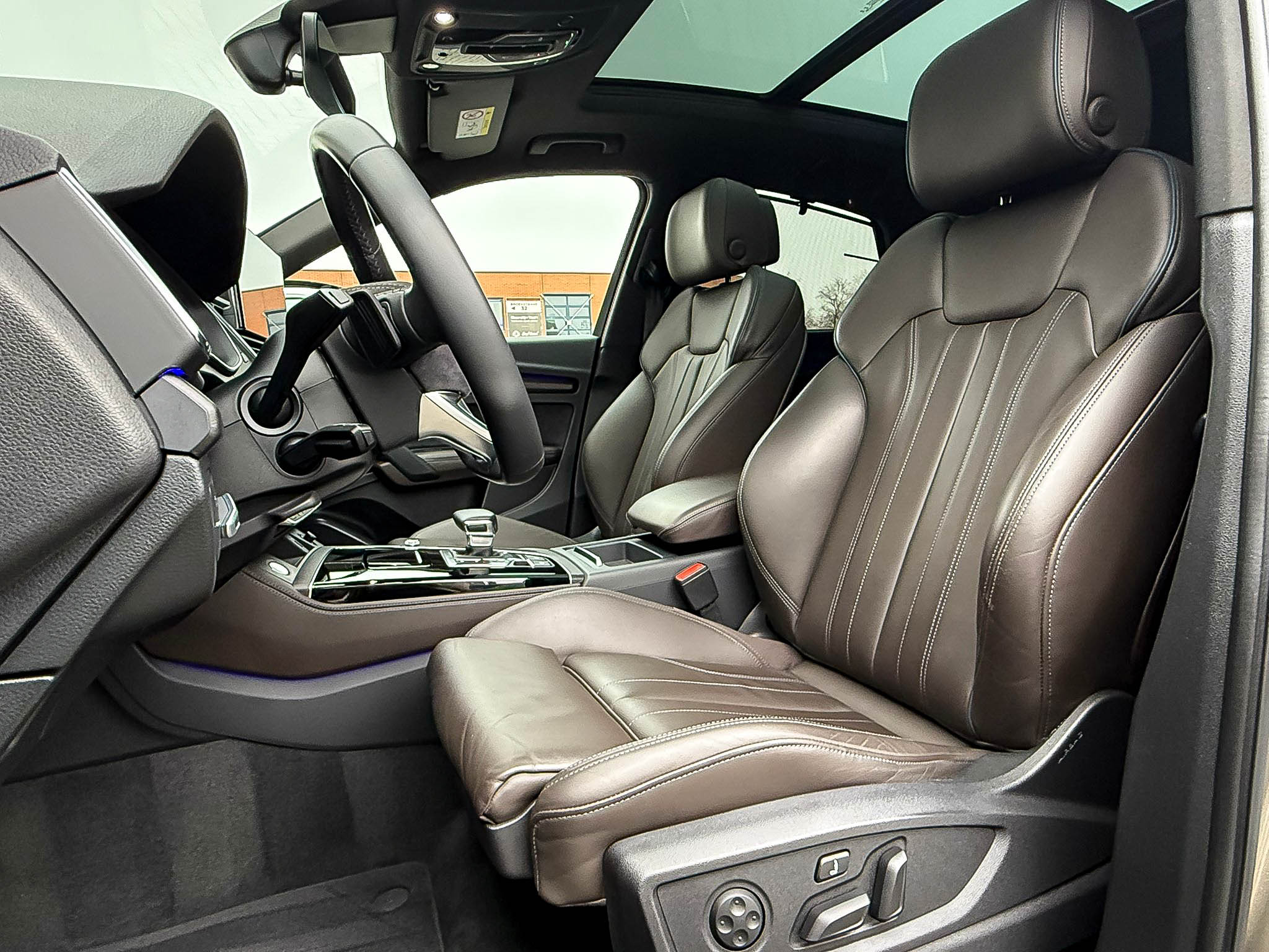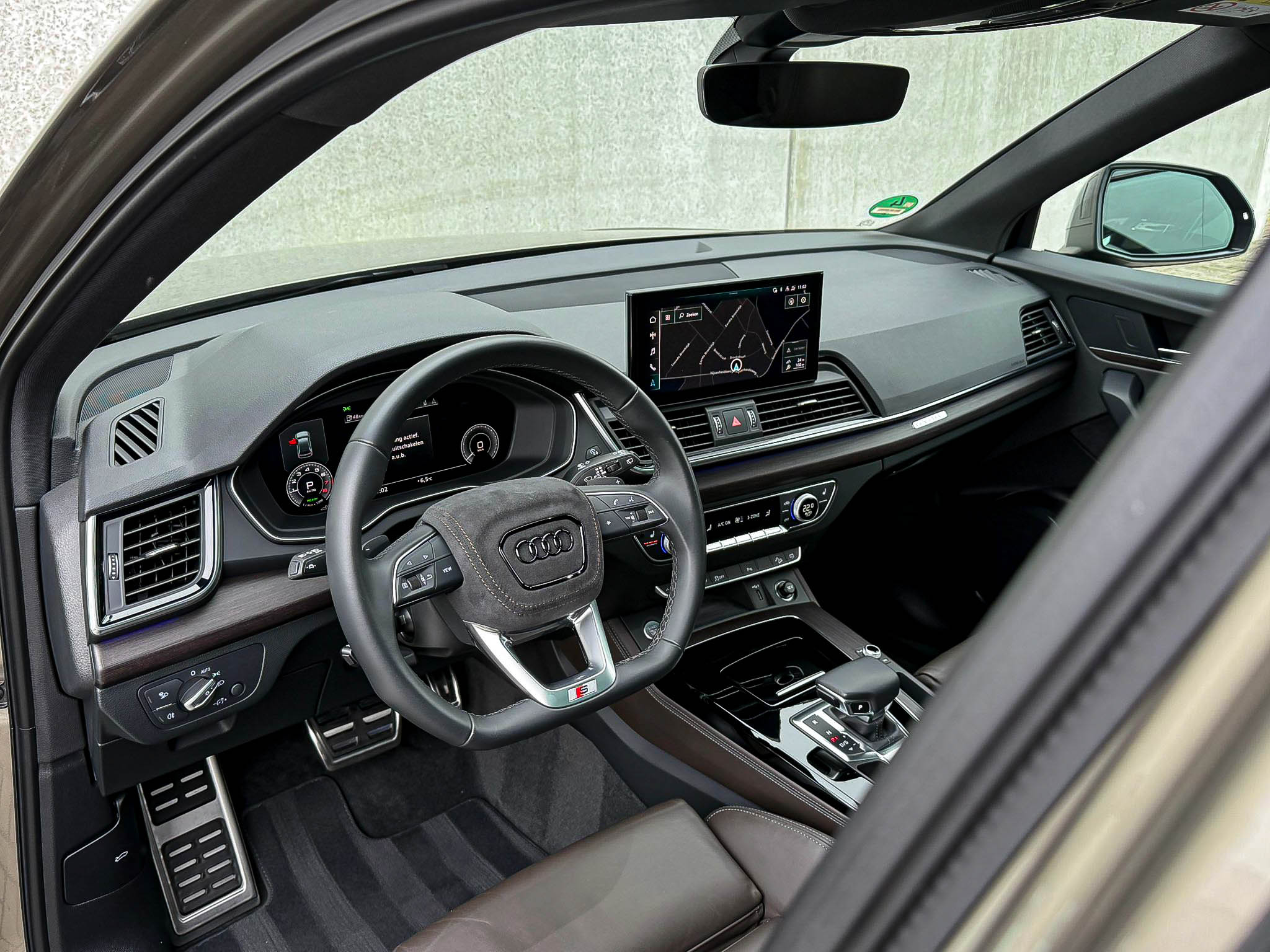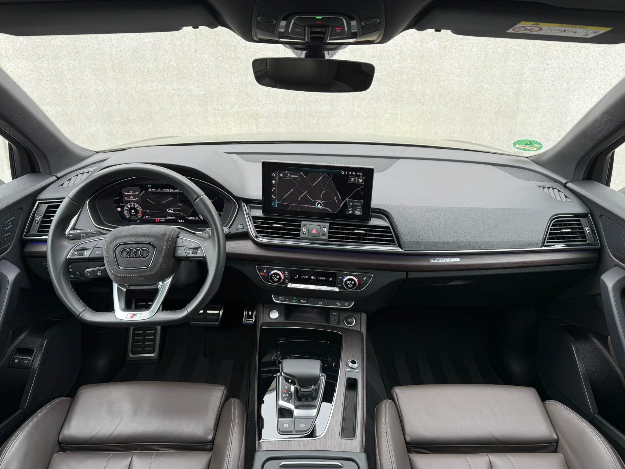 NIEUW MODEL | MODEL 2023! Een bijzonder unieke  Audi Q5 Sportback 50 TFSI e 220kw/299pk Quattro Competition S-Tronic Automaat Pro Line S S-Line! Het betreft een origineel AUDI EXCLUSIVE dealer exemplaar welke afkomstig is van de 1e eigenaar met een zeer nette tellerstand van slechts 36.534km. In unieke en perfecte fabrieksconfiguratie; Audi Exclusive Karatbeige Metallic lak gecombineerd met het Zwart optiekpakket, De actieve comfortabele instelbare dynamische Luchtvering, De elektrisch verstelbare Audi Exclusive Bruin Valcona lederen S stoelen incl. geheugen fuctie / Memory/Massage, Audi Exclusive Alcantara airbag incl. bruine stiksels + Afgevlakt sportstuur, Verwarmde en gekoelde bekerhouders, Panoramisch glazen schuif-/kanteldak, verwarmde en gekoelde bekerhouders, stoelverwarming voor en achter en natuurlijk de Audi Virtual Cockpit plus! Deze Audi biedt met de 299pk en 450Nm sterke 2.0 liter TFSI turbomotor, gekoppeld aan de Audi Quattro 4-wielaandrijving een trekvermogen van 2000kg. Het betreft een BTW-auto, dus voor zowel de zakelijke als particuliere klant interessant. De getoonde 22inch Black Performance velgenset met 4x Pirelli Scorpion ZERO Allseason banden is tegen geringe meerprijs van €2595,- te verkrijgen.