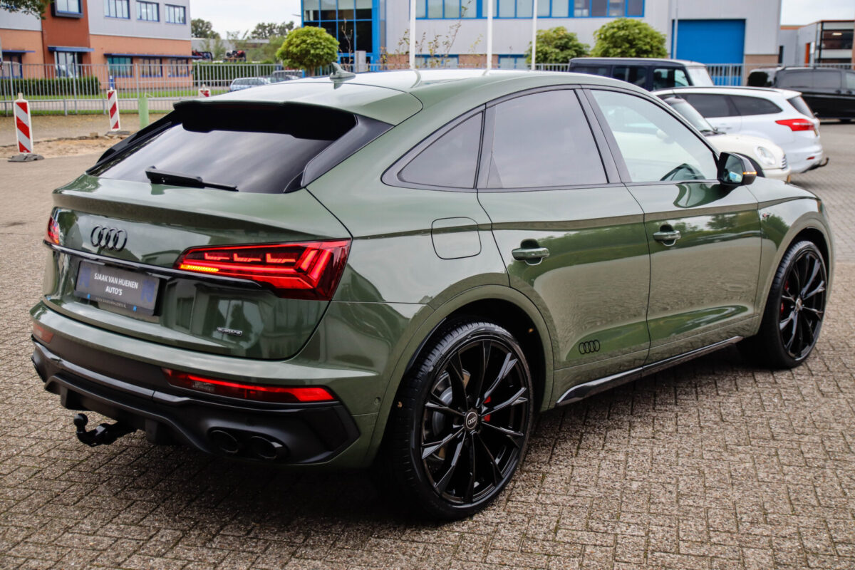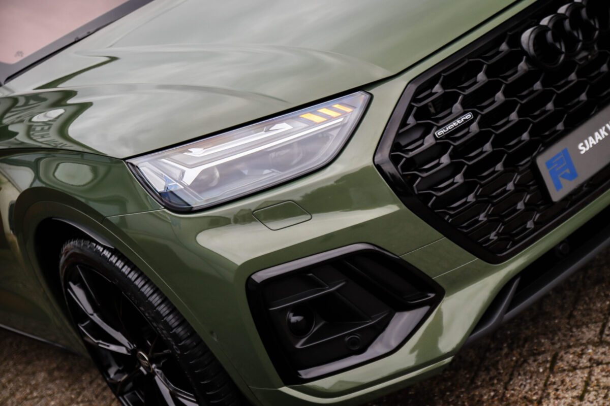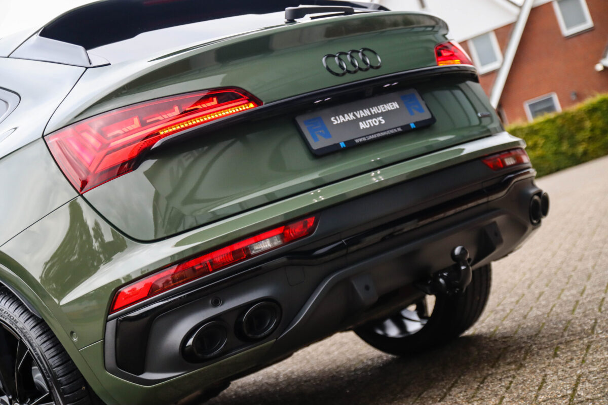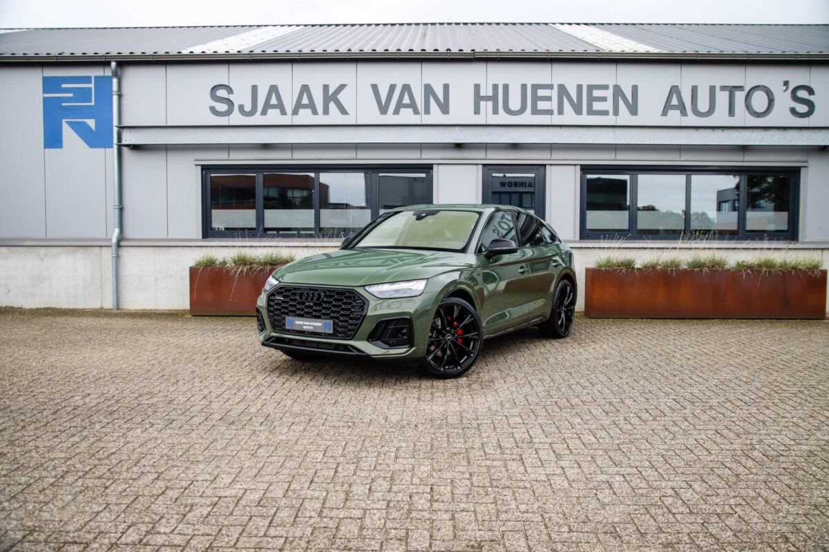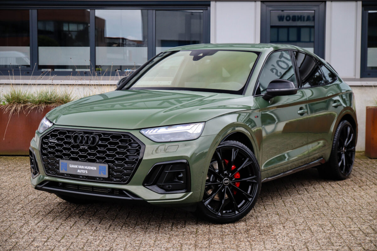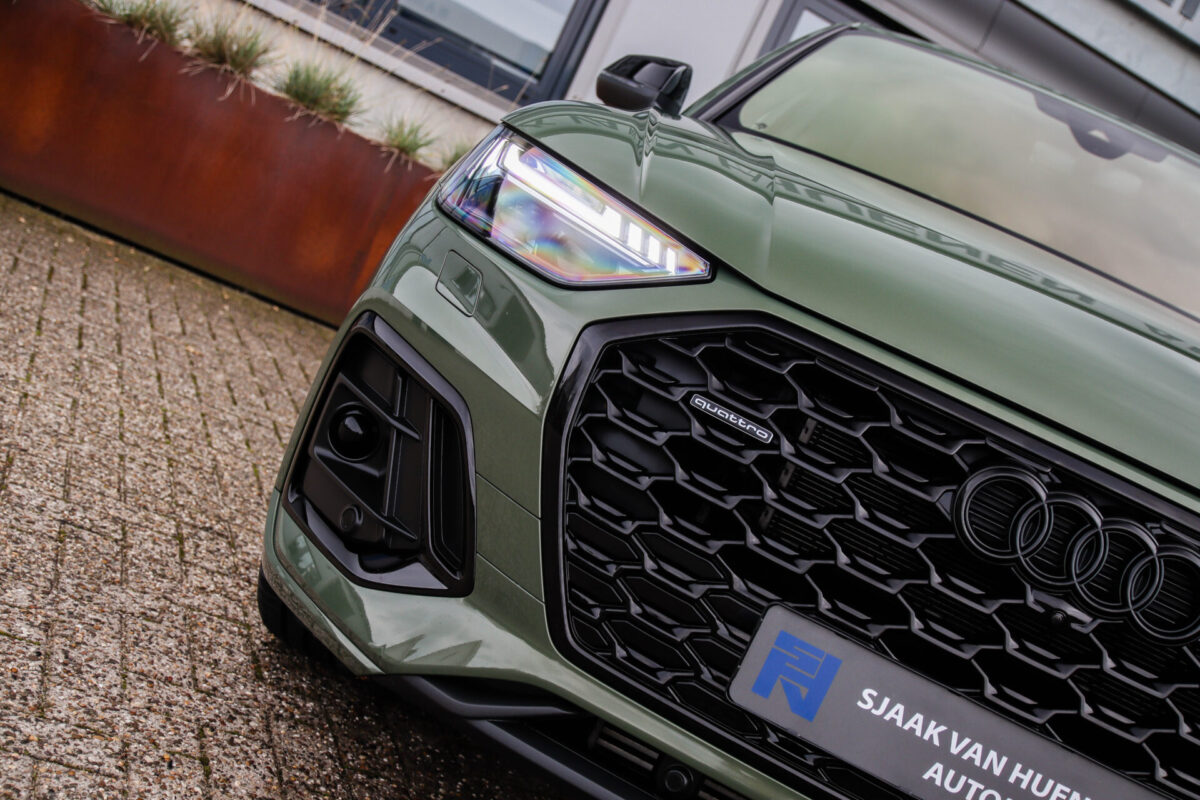 NIEUW MODEL | MODEL 2022! Een in uitmuntende staat verkerende Audi Q5 55 TFSI e 270kw/367pk Quattro Competition S-Tronic Automaat Pro Line S S-Line! Het betreft een Audi dealer exemplaar welke afkomstig is van de 1e eigenaar met een zeer interessant gecontroleerde tellerstand van slechts 49.717km. Een uiterst smaakvolle SUV Coupe vanwege de District Green parel lak gecombineerd met het Zwart optiekpakket, de Elektrisch verstelbare zwart geperforeerd lederen sportstoelen incl. Stoelventilatie, de comfortabele Luchtvering en natuurlijk de Audi Virtual Cockpit! Deze Audi biedt met de 367pk en 500Nm sterke 2.0 liter TFSI turbomotor, gekoppeld aan de Audi Quattro 4-wielaandrijving een trekvermogen van 2000kg. Het betreft een BTW-auto, dus voor zowel de zakelijke als particuliere klant interessant. De getoonde 22inch Black Performance velgenset met 4x Pirelli Scorpion ZERO Allseason banden is tegen geringe meerprijs van €2595,- te verkrijgen.