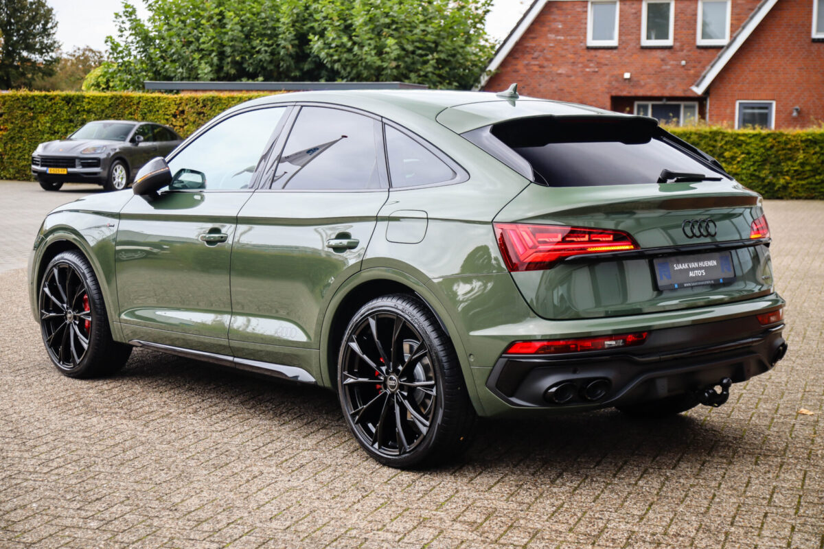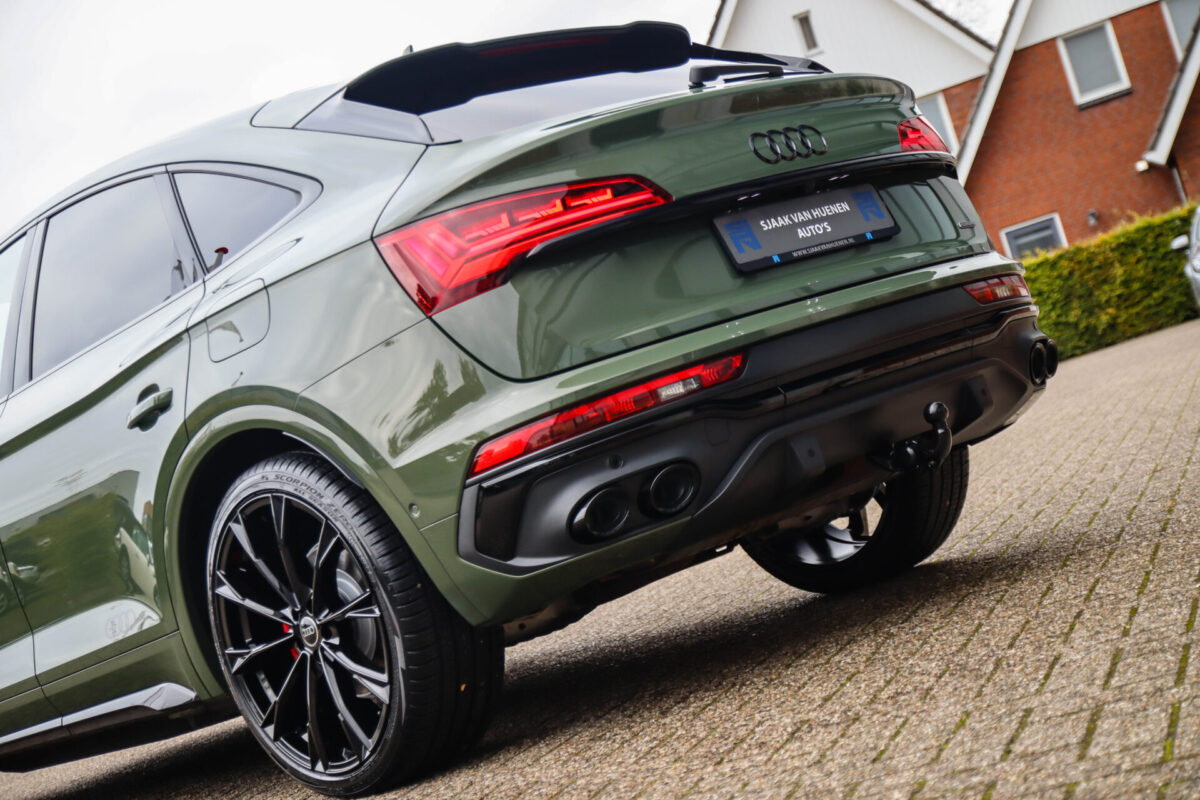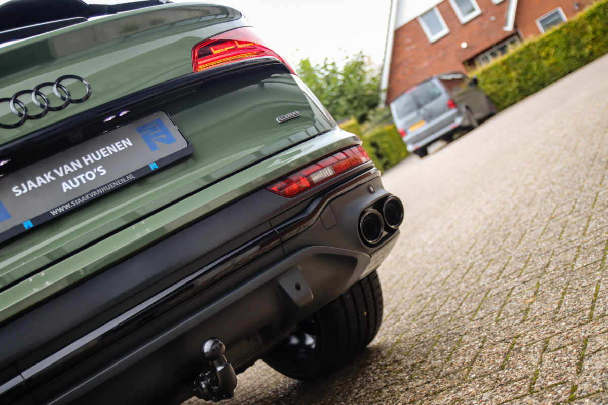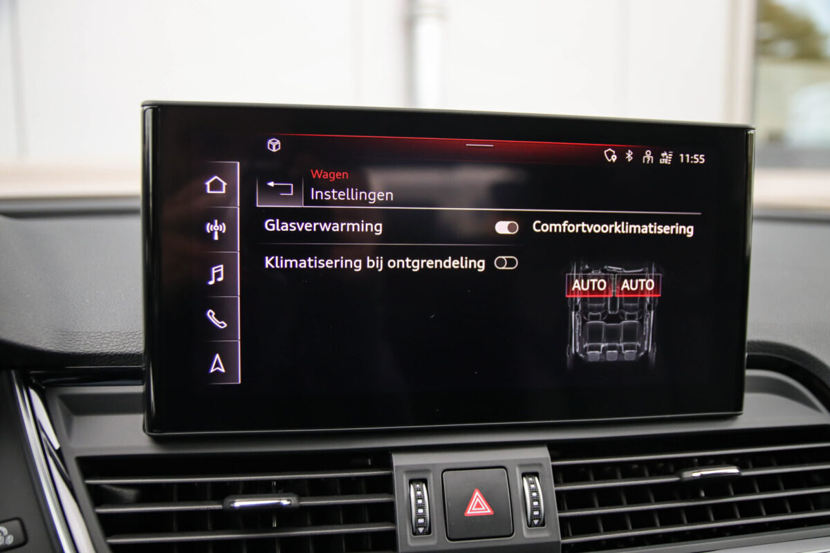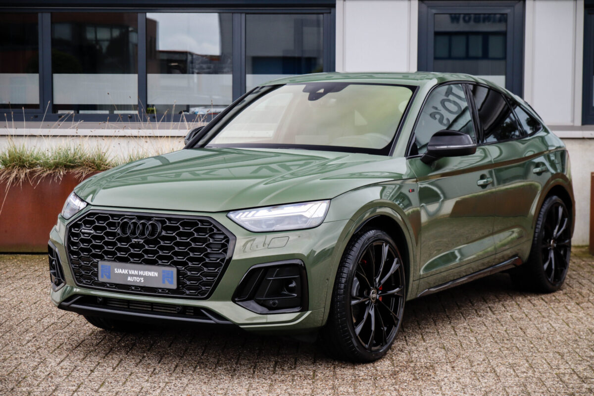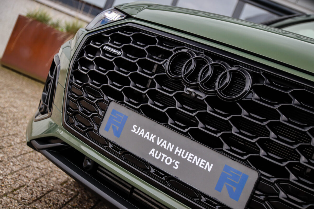 NIEUW MODEL | MODEL 2022! Een in uitmuntende staat verkerende Audi Q5 55 TFSI e 270kw/367pk Quattro Competition S-Tronic Automaat Pro Line S S-Line! Het betreft een Audi dealer exemplaar welke afkomstig is van de 1e eigenaar met een zeer interessant gecontroleerde tellerstand van slechts 49.717km. Een uiterst smaakvolle SUV Coupe vanwege de District Green parel lak gecombineerd met het Zwart optiekpakket, de Elektrisch verstelbare zwart geperforeerd lederen sportstoelen incl. Stoelventilatie, de comfortabele Luchtvering en natuurlijk de Audi Virtual Cockpit! Deze Audi biedt met de 367pk en 500Nm sterke 2.0 liter TFSI turbomotor, gekoppeld aan de Audi Quattro 4-wielaandrijving een trekvermogen van 2000kg. Het betreft een BTW-auto, dus voor zowel de zakelijke als particuliere klant interessant. De getoonde 22inch Black Performance velgenset met 4x Pirelli Scorpion ZERO Allseason banden is tegen geringe meerprijs van €2595,- te verkrijgen.