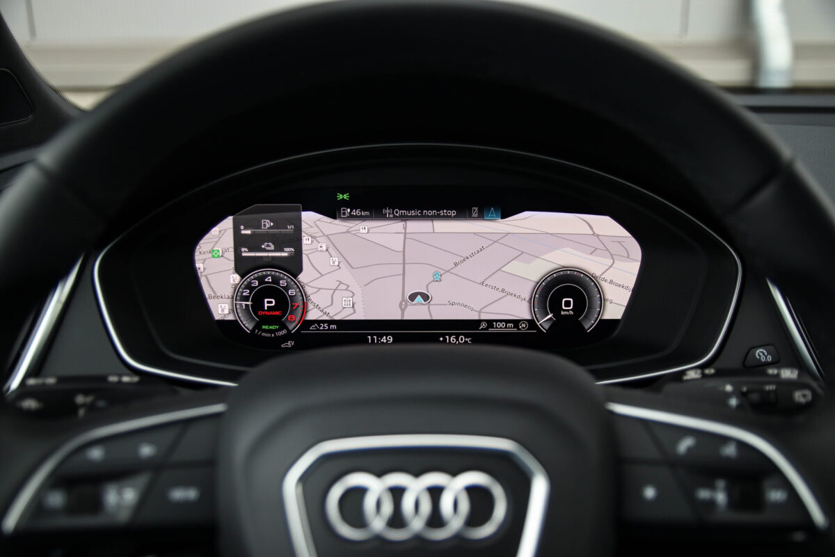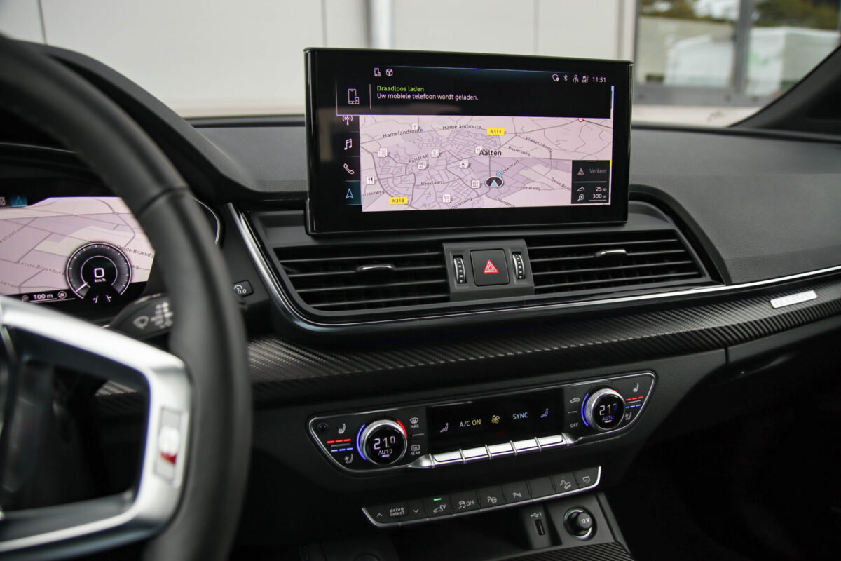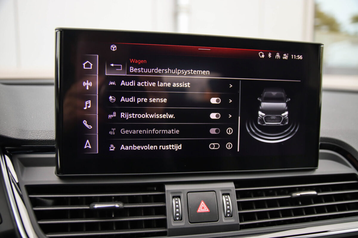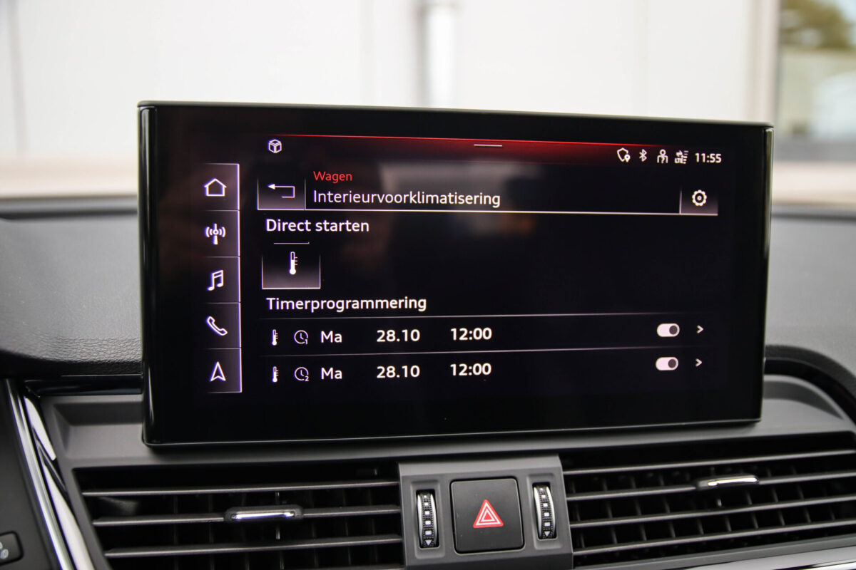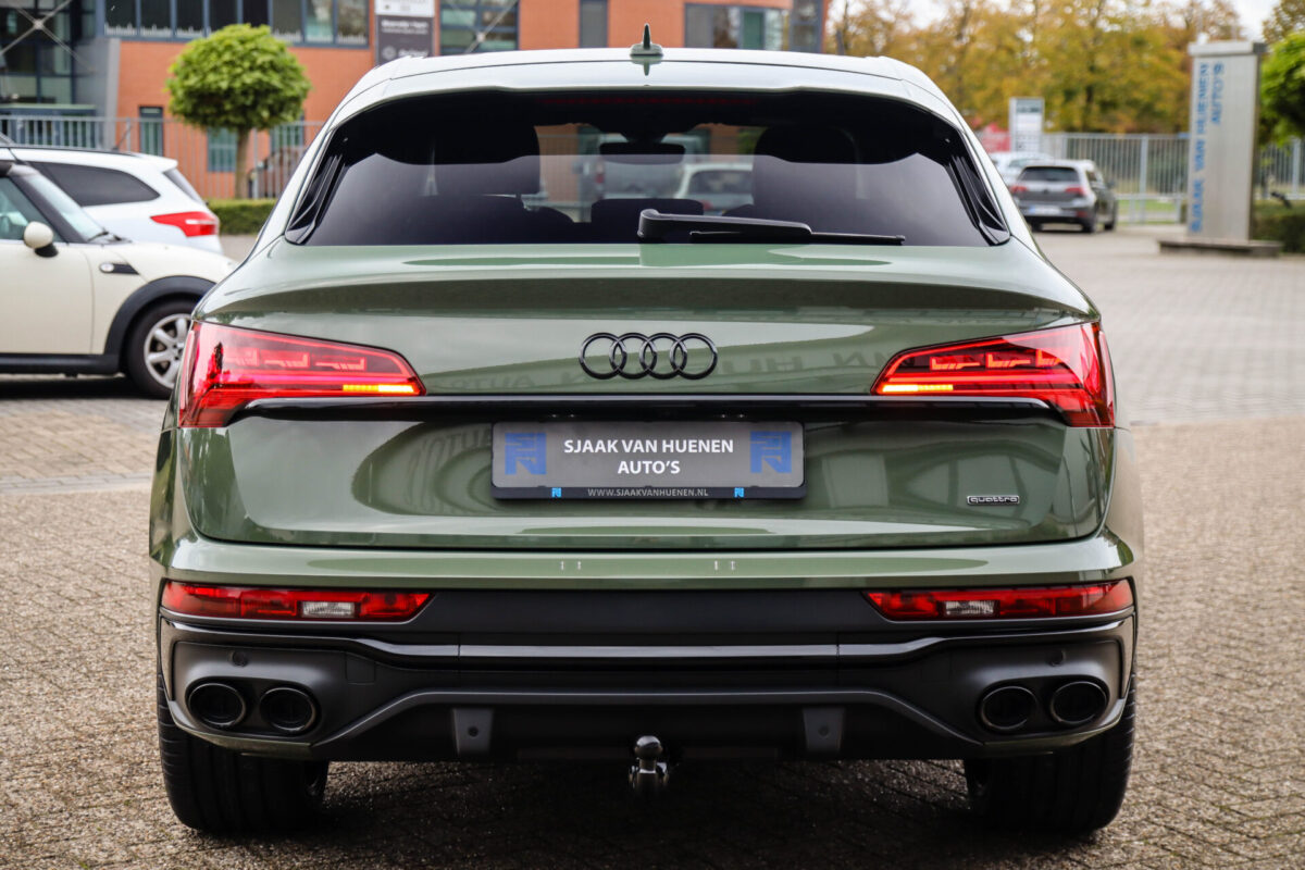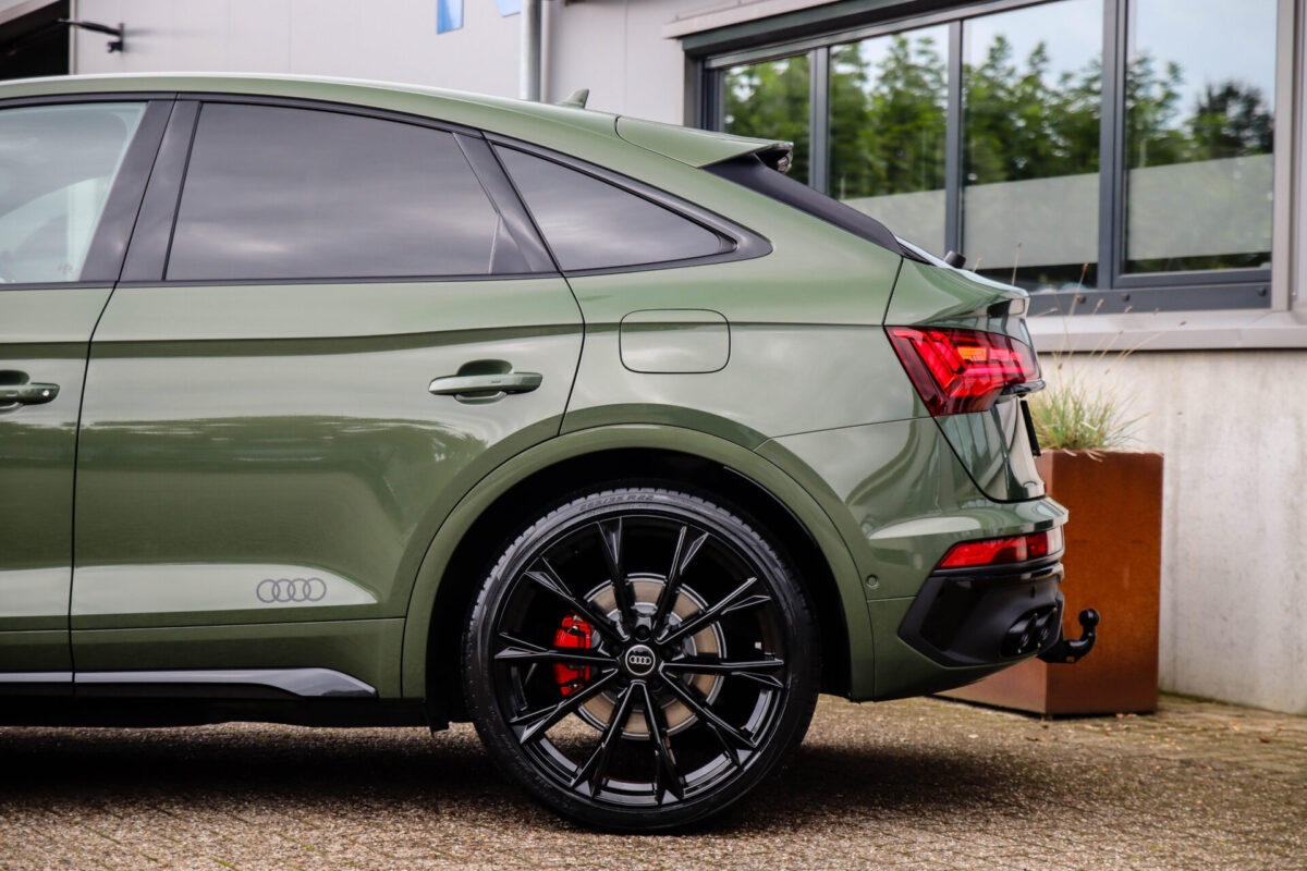 NIEUW MODEL | MODEL 2022! Een in uitmuntende staat verkerende Audi Q5 55 TFSI e 270kw/367pk Quattro Competition S-Tronic Automaat Pro Line S S-Line! Het betreft een Audi dealer exemplaar welke afkomstig is van de 1e eigenaar met een zeer interessant gecontroleerde tellerstand van slechts 49.717km. Een uiterst smaakvolle SUV Coupe vanwege de District Green parel lak gecombineerd met het Zwart optiekpakket, de Elektrisch verstelbare zwart geperforeerd lederen sportstoelen incl. Stoelventilatie, de comfortabele Luchtvering en natuurlijk de Audi Virtual Cockpit! Deze Audi biedt met de 367pk en 500Nm sterke 2.0 liter TFSI turbomotor, gekoppeld aan de Audi Quattro 4-wielaandrijving een trekvermogen van 2000kg. Het betreft een BTW-auto, dus voor zowel de zakelijke als particuliere klant interessant. De getoonde 22inch Black Performance velgenset met 4x Pirelli Scorpion ZERO Allseason banden is tegen geringe meerprijs van €2595,- te verkrijgen.