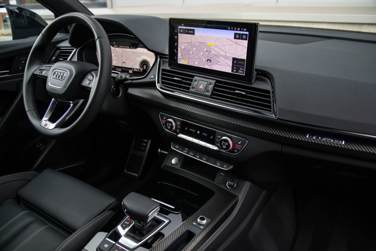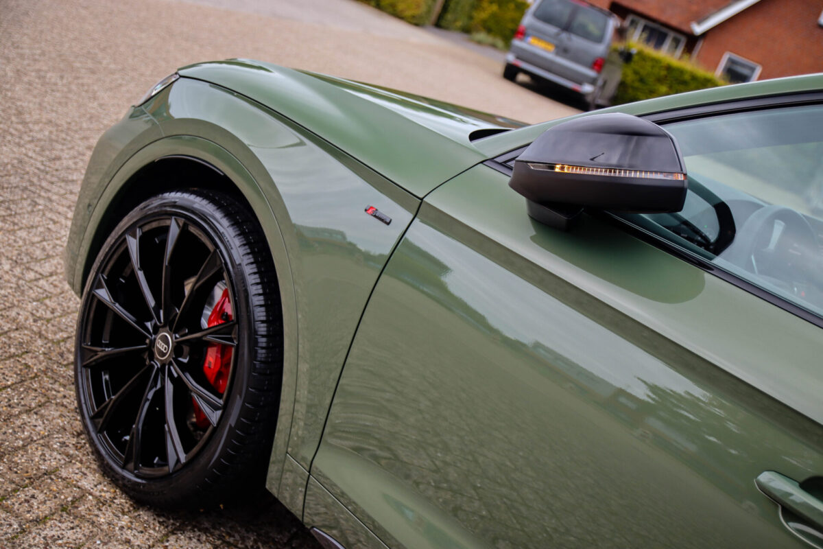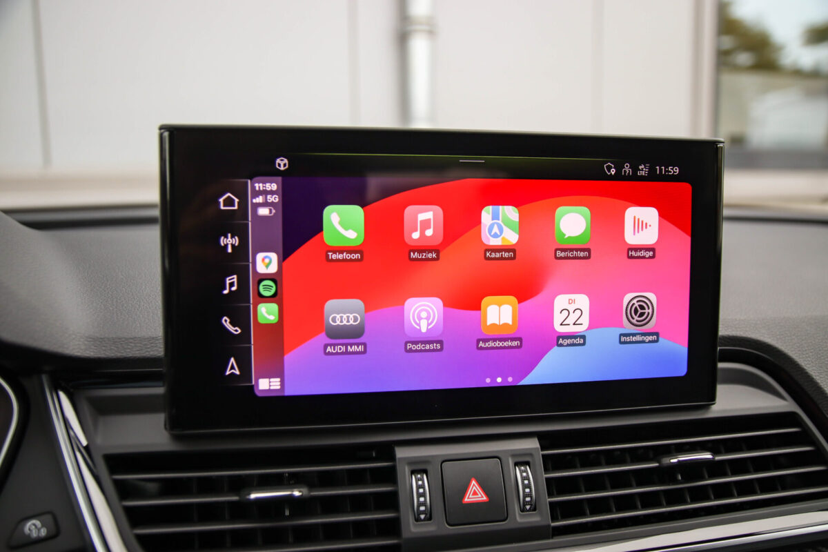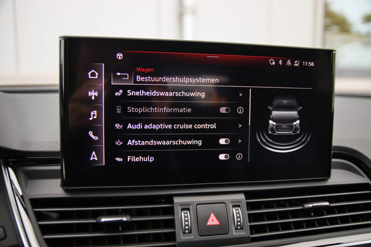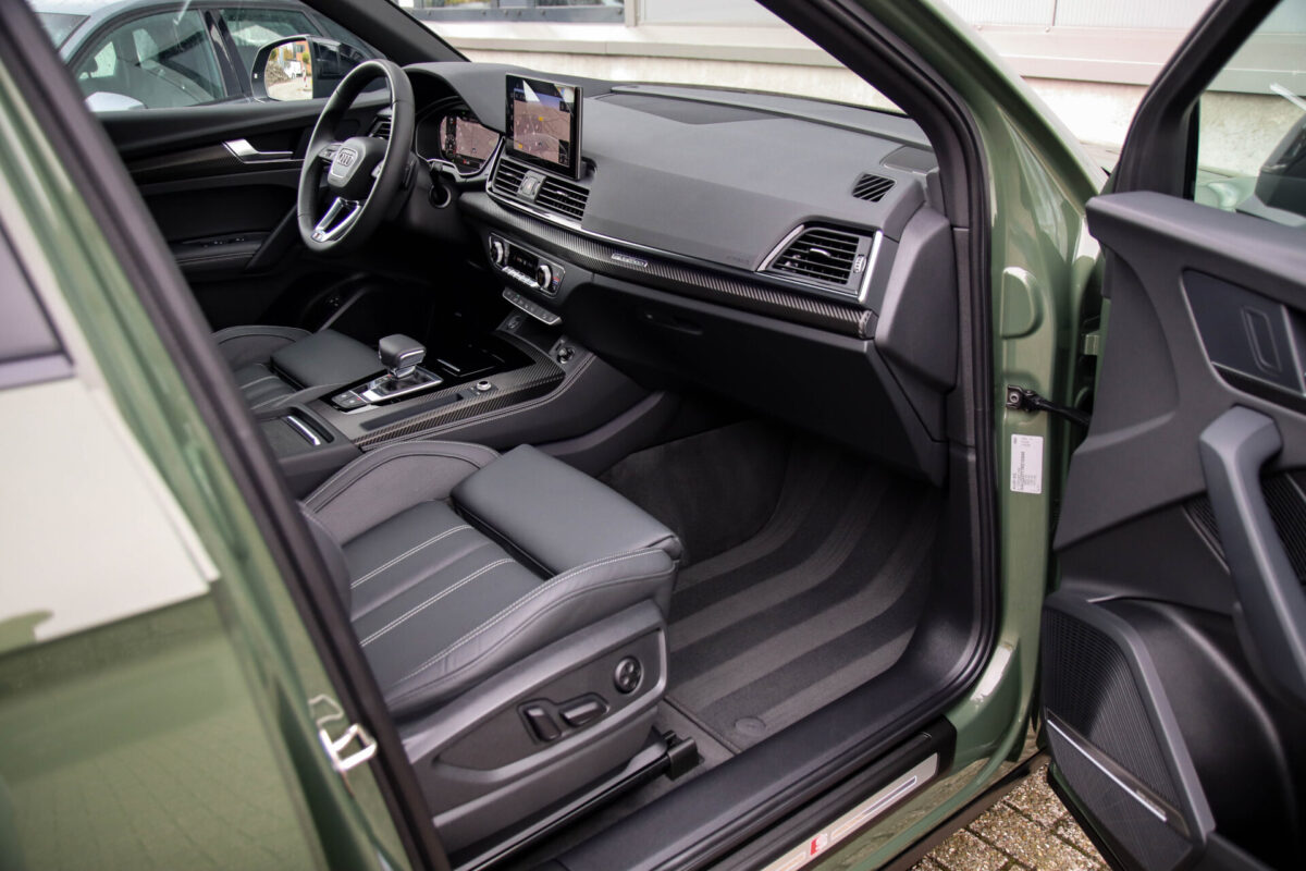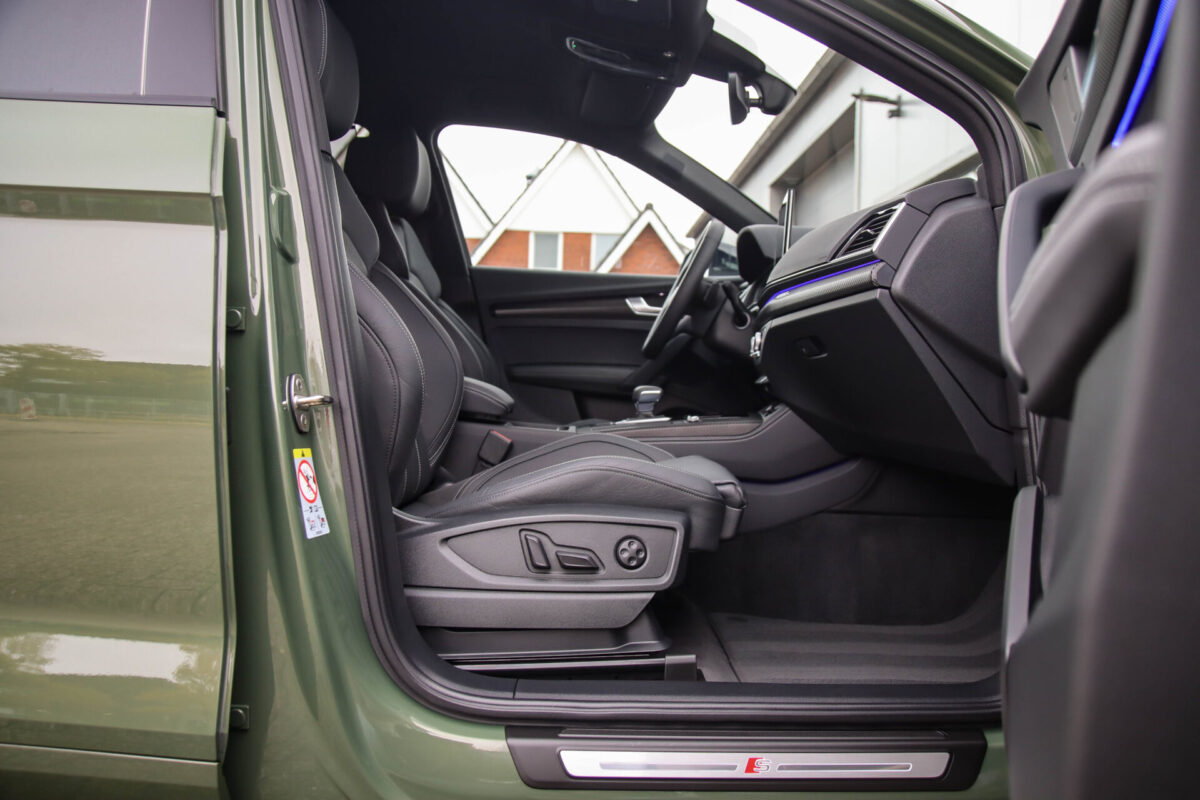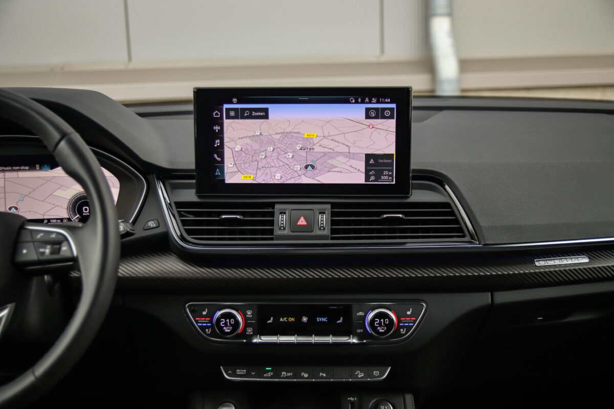 NIEUW MODEL | MODEL 2022! Een in uitmuntende staat verkerende Audi Q5 55 TFSI e 270kw/367pk Quattro Competition S-Tronic Automaat Pro Line S S-Line! Het betreft een Audi dealer exemplaar welke afkomstig is van de 1e eigenaar met een zeer interessant gecontroleerde tellerstand van slechts 49.717km. Een uiterst smaakvolle SUV Coupe vanwege de District Green parel lak gecombineerd met het Zwart optiekpakket, de Elektrisch verstelbare zwart geperforeerd lederen sportstoelen incl. Stoelventilatie, de comfortabele Luchtvering en natuurlijk de Audi Virtual Cockpit! Deze Audi biedt met de 367pk en 500Nm sterke 2.0 liter TFSI turbomotor, gekoppeld aan de Audi Quattro 4-wielaandrijving een trekvermogen van 2000kg. Het betreft een BTW-auto, dus voor zowel de zakelijke als particuliere klant interessant. De getoonde 22inch Black Performance velgenset met 4x Pirelli Scorpion ZERO Allseason banden is tegen geringe meerprijs van €2595,- te verkrijgen.