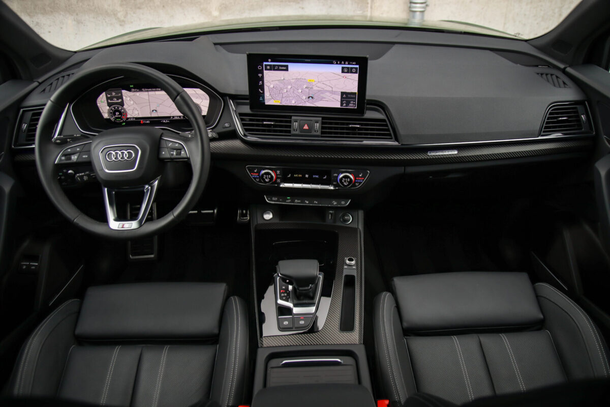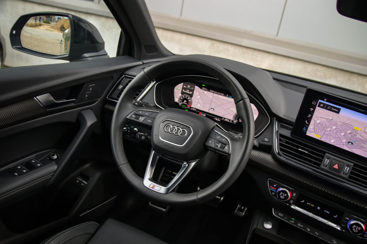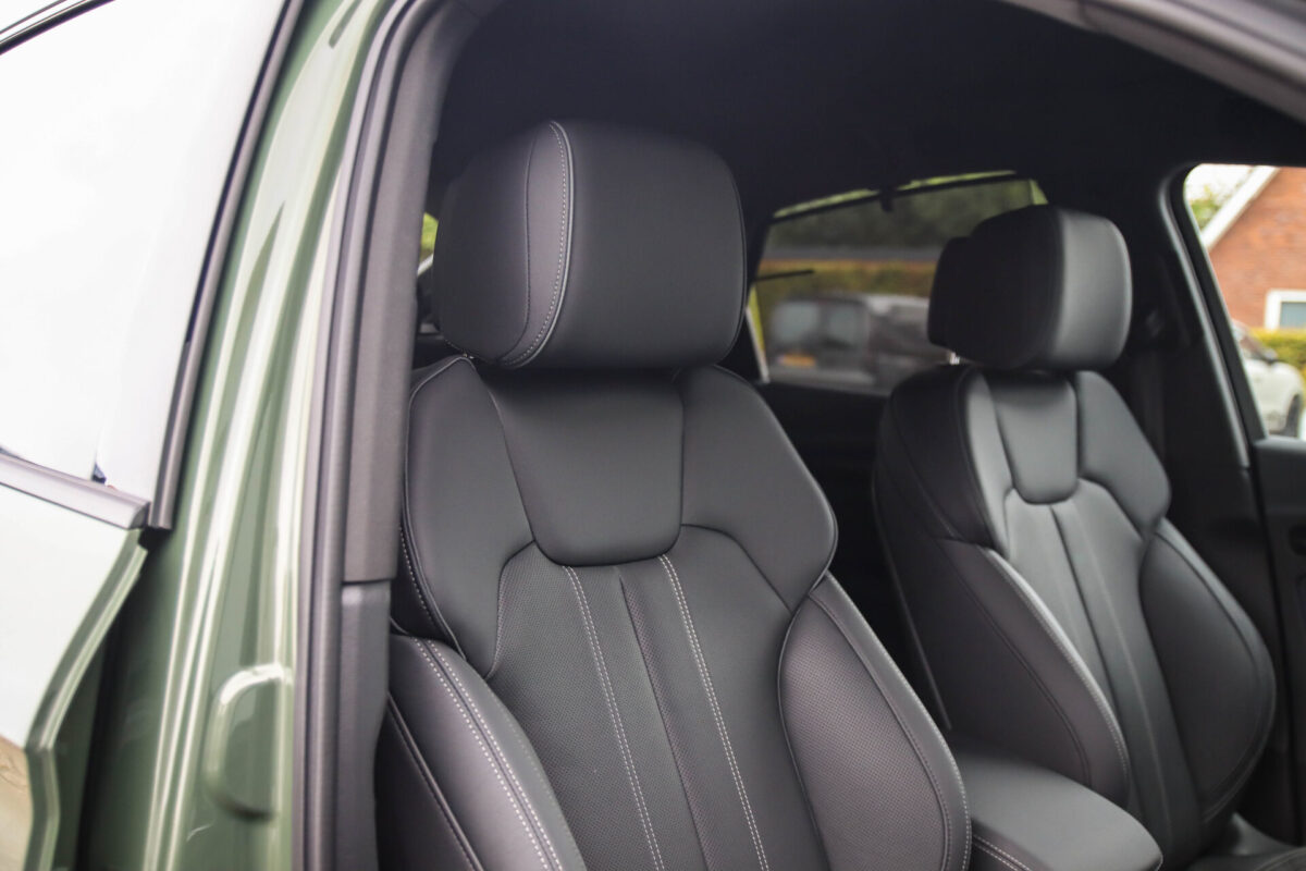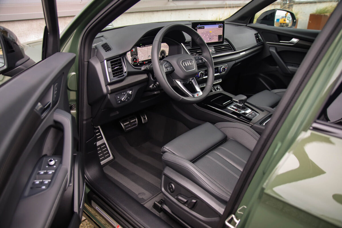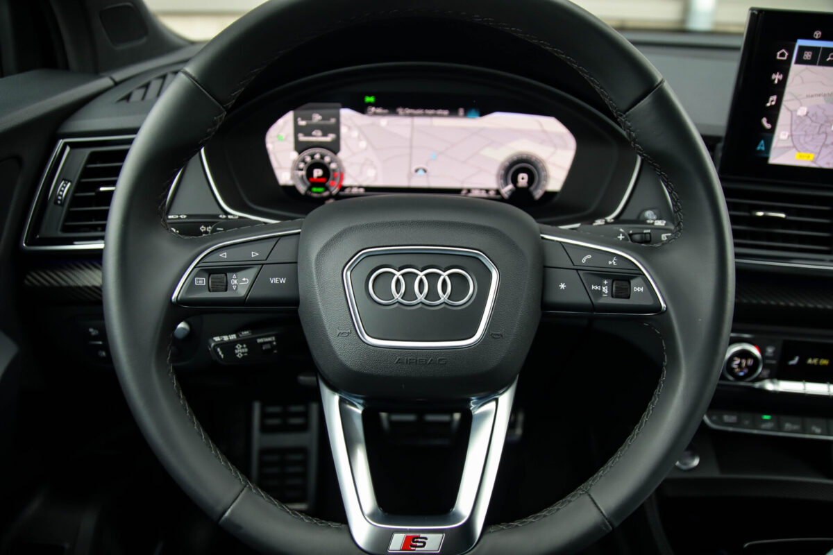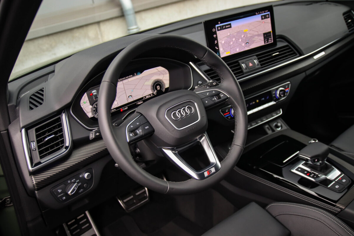 NIEUW MODEL | MODEL 2022! Een in uitmuntende staat verkerende Audi Q5 55 TFSI e 270kw/367pk Quattro Competition S-Tronic Automaat Pro Line S S-Line! Het betreft een Audi dealer exemplaar welke afkomstig is van de 1e eigenaar met een zeer interessant gecontroleerde tellerstand van slechts 49.717km. Een uiterst smaakvolle SUV Coupe vanwege de District Green parel lak gecombineerd met het Zwart optiekpakket, de Elektrisch verstelbare zwart geperforeerd lederen sportstoelen incl. Stoelventilatie, de comfortabele Luchtvering en natuurlijk de Audi Virtual Cockpit! Deze Audi biedt met de 367pk en 500Nm sterke 2.0 liter TFSI turbomotor, gekoppeld aan de Audi Quattro 4-wielaandrijving een trekvermogen van 2000kg. Het betreft een BTW-auto, dus voor zowel de zakelijke als particuliere klant interessant. De getoonde 22inch Black Performance velgenset met 4x Pirelli Scorpion ZERO Allseason banden is tegen geringe meerprijs van €2595,- te verkrijgen.