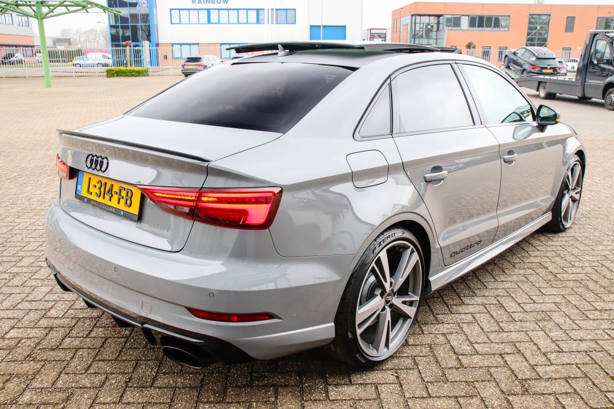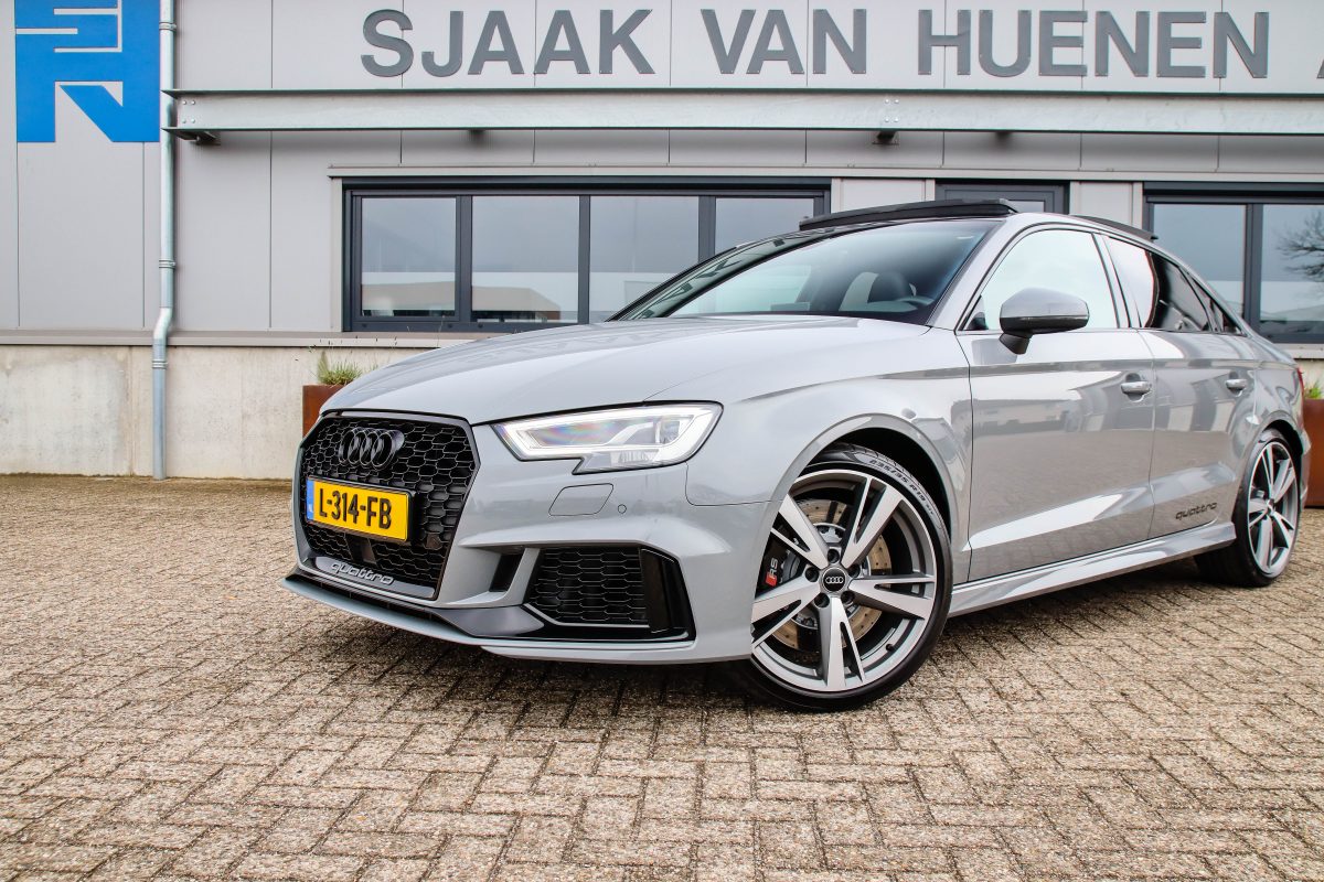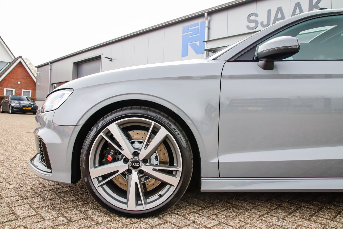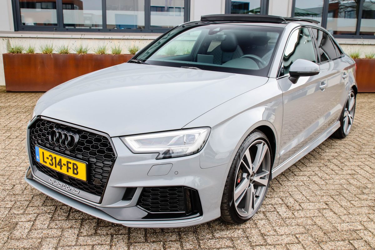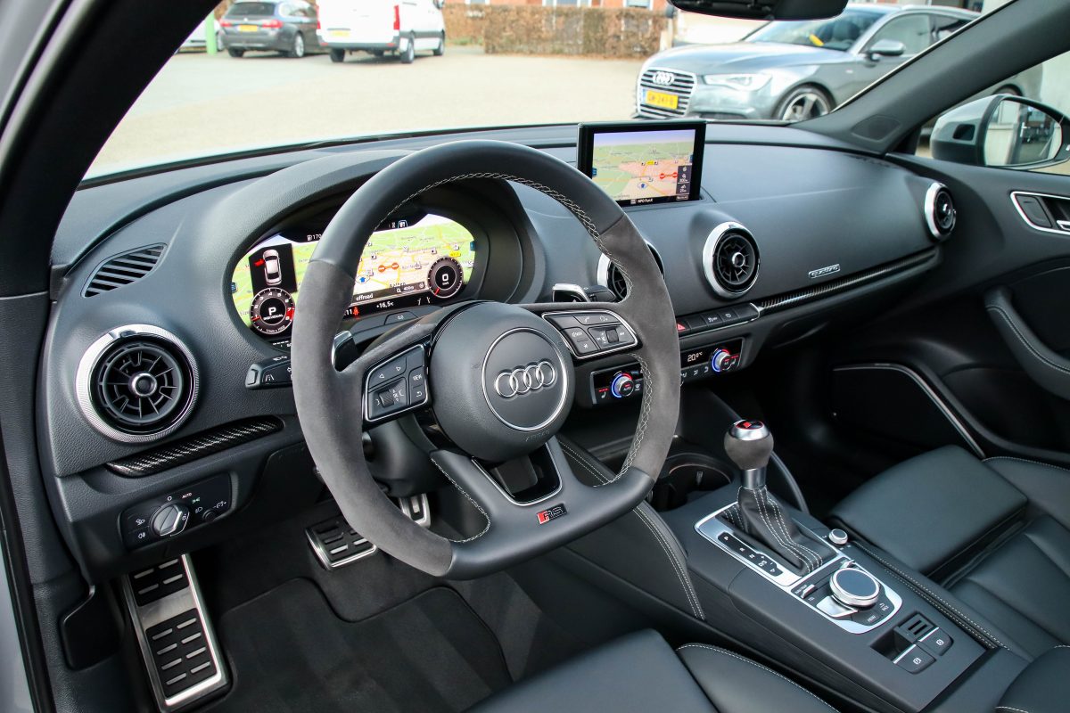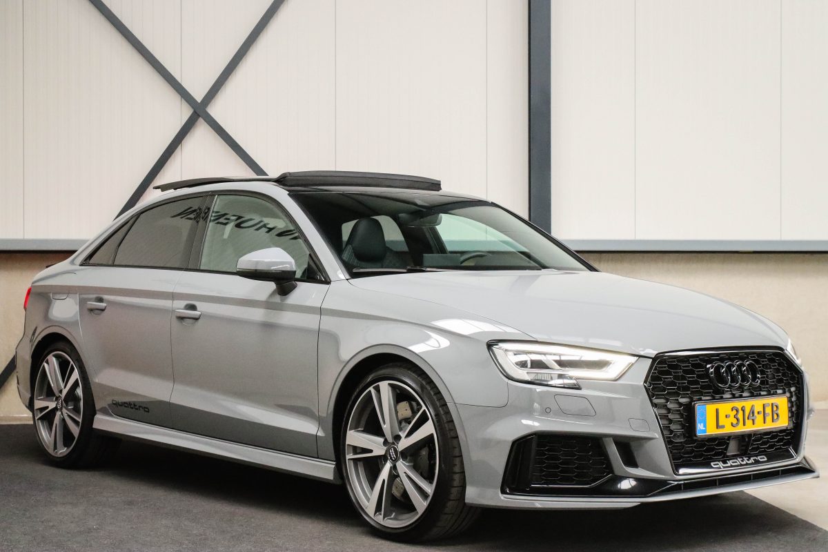 NIEUW MODEL | MODEL 2018 | FACELIFT! Een geweldig geconfigureerde en in smetteloze staat verkerende Audi RS3 Limousine 2.5 TFSI 5-cilinder 400pk S-Tronic automaat QUATTRO! Afkomstig van de 1e eigenaar, uiteraard volledig Audi dealer onderhouden inclusief bijbehorende documentatie met een gecontroleerde tellerstand van slechts 58.713km! Door QUATTRO GmbH voorzien van de juiste Audi Exclusive fabrieksconfiguratie. Maarliefst 400pk en 480Nm levert deze fenomenale 2.5 TFSI 5-cilinder turbomotor! Het sublieme Audi Quattro 4-wielaandrijving, het originele sportuitlaatsysteem biedt natuurlijk 100% garantie voor ongekende prestaties en bovenal een uniek 5-cilinder motorgeluid! Slechts 4,1 seconden zijn er nodig om deze RS naar de 100km/h te katapulteren. Het betreft een BTW-auto, dus voor zowel de zakelijke als particuliere klant interessant.