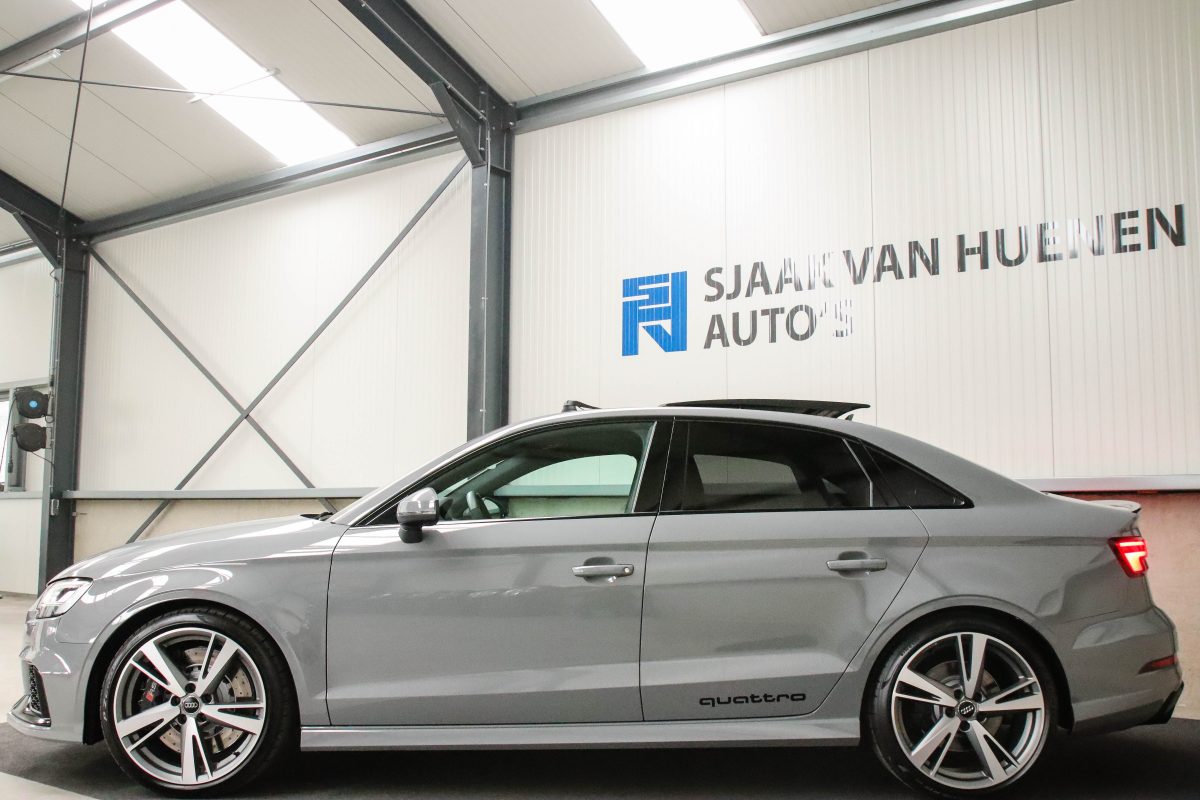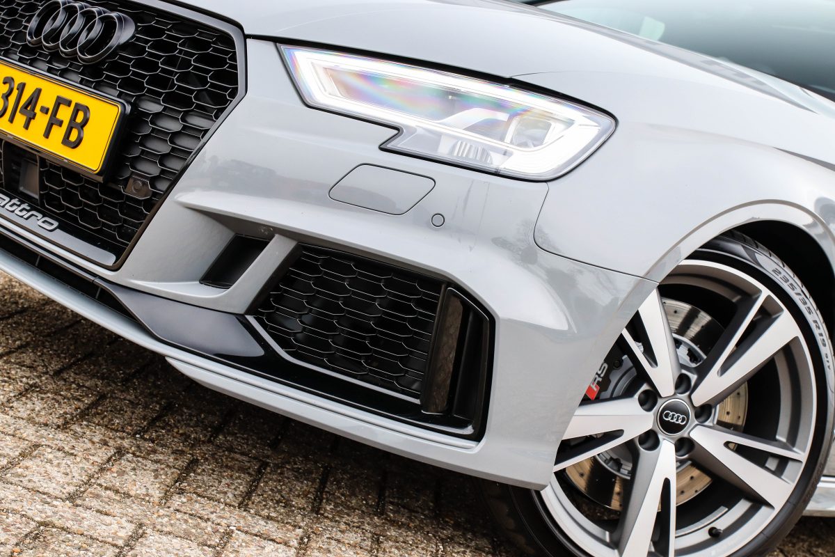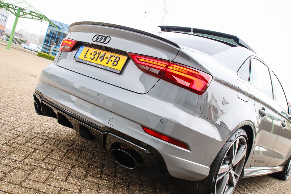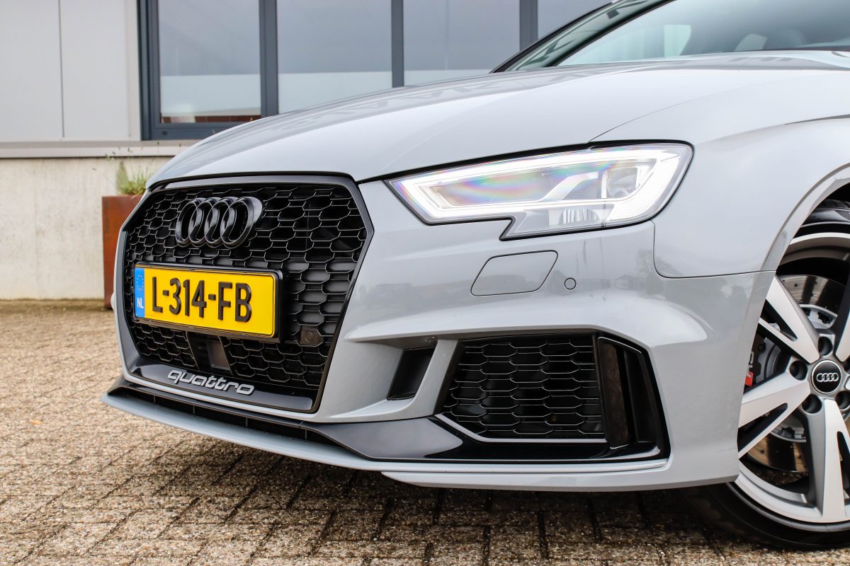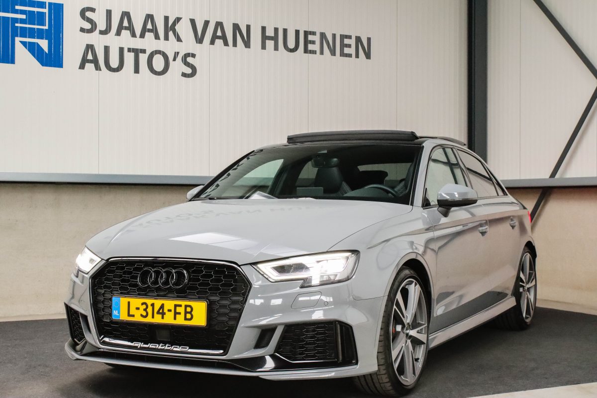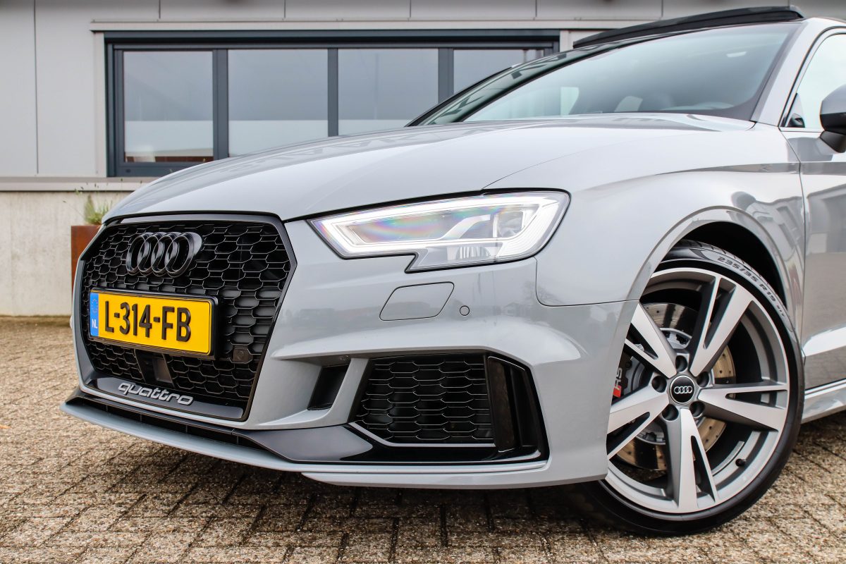 NIEUW MODEL | MODEL 2018 | FACELIFT! Een geweldig geconfigureerde en in smetteloze staat verkerende Audi RS3 Limousine 2.5 TFSI 5-cilinder 400pk S-Tronic automaat QUATTRO! Afkomstig van de 1e eigenaar, uiteraard volledig Audi dealer onderhouden inclusief bijbehorende documentatie met een gecontroleerde tellerstand van slechts 58.713km! Door QUATTRO GmbH voorzien van de juiste Audi Exclusive fabrieksconfiguratie. Maarliefst 400pk en 480Nm levert deze fenomenale 2.5 TFSI 5-cilinder turbomotor! Het sublieme Audi Quattro 4-wielaandrijving, het originele sportuitlaatsysteem biedt natuurlijk 100% garantie voor ongekende prestaties en bovenal een uniek 5-cilinder motorgeluid! Slechts 4,1 seconden zijn er nodig om deze RS naar de 100km/h te katapulteren. Het betreft een BTW-auto, dus voor zowel de zakelijke als particuliere klant interessant.