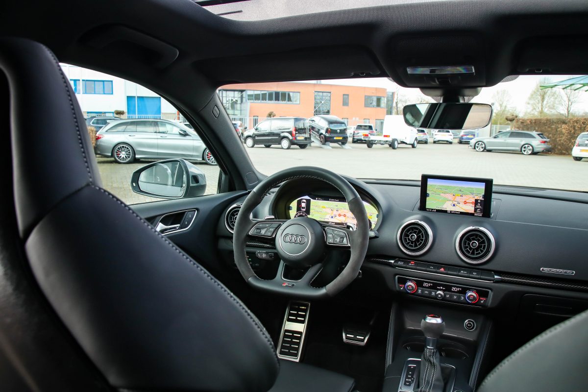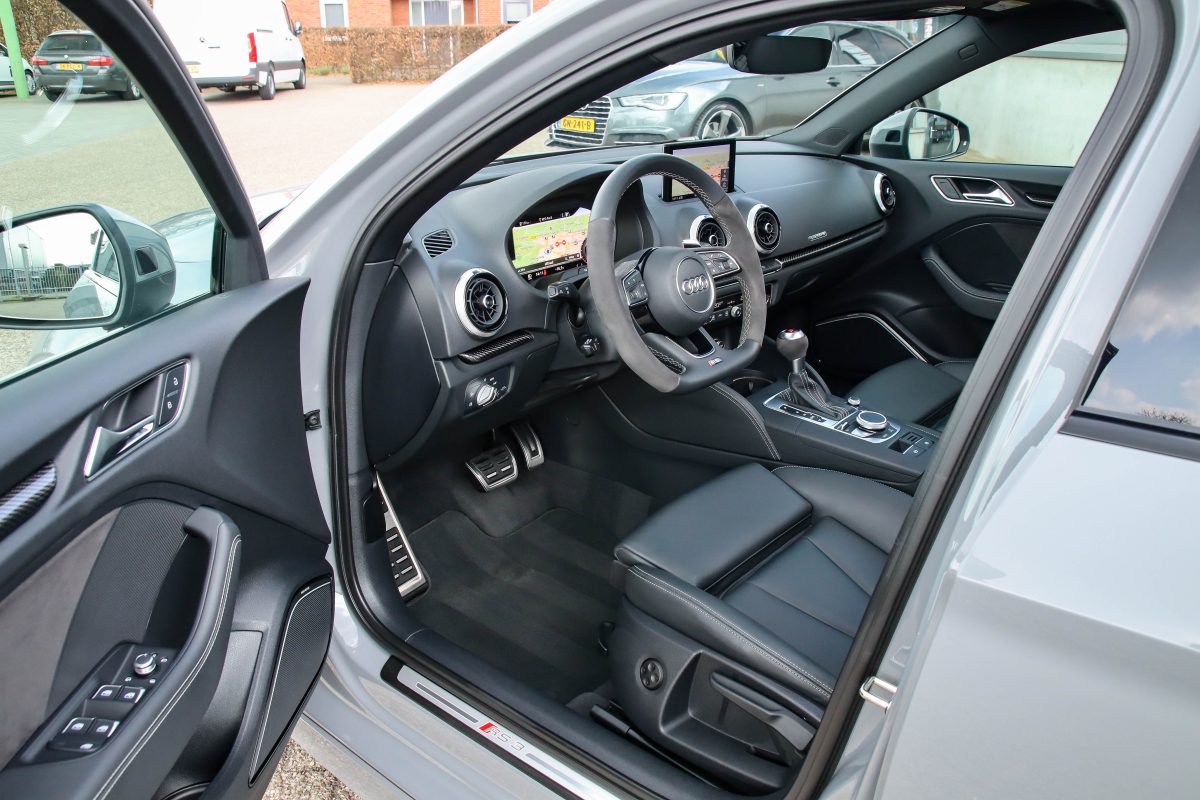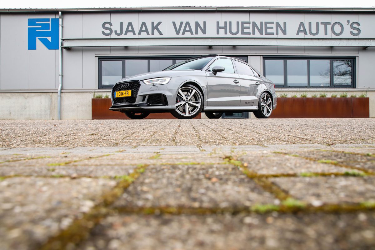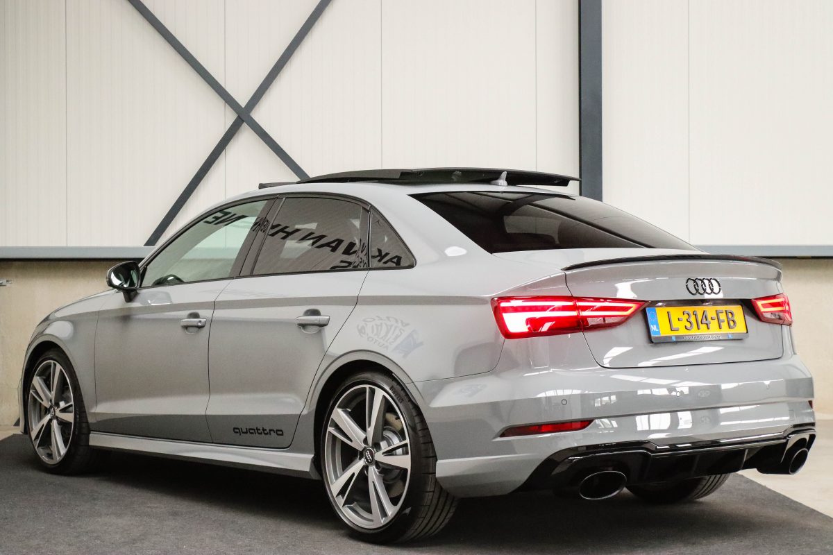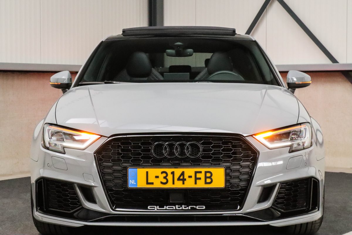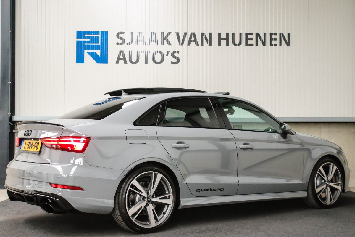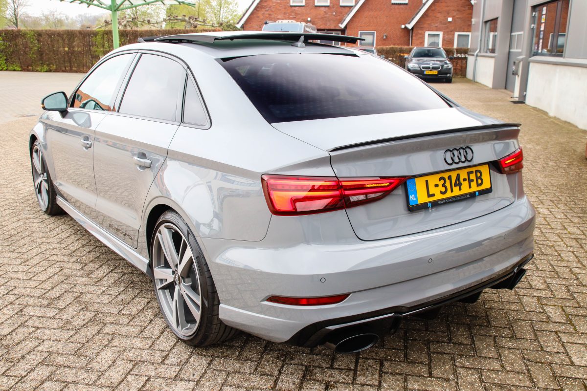 NIEUW MODEL | MODEL 2018 | FACELIFT! Een geweldig geconfigureerde en in smetteloze staat verkerende Audi RS3 Limousine 2.5 TFSI 5-cilinder 400pk S-Tronic automaat QUATTRO! Afkomstig van de 1e eigenaar, uiteraard volledig Audi dealer onderhouden inclusief bijbehorende documentatie met een gecontroleerde tellerstand van slechts 58.713km! Door QUATTRO GmbH voorzien van de juiste Audi Exclusive fabrieksconfiguratie. Maarliefst 400pk en 480Nm levert deze fenomenale 2.5 TFSI 5-cilinder turbomotor! Het sublieme Audi Quattro 4-wielaandrijving, het originele sportuitlaatsysteem biedt natuurlijk 100% garantie voor ongekende prestaties en bovenal een uniek 5-cilinder motorgeluid! Slechts 4,1 seconden zijn er nodig om deze RS naar de 100km/h te katapulteren. Het betreft een BTW-auto, dus voor zowel de zakelijke als particuliere klant interessant.