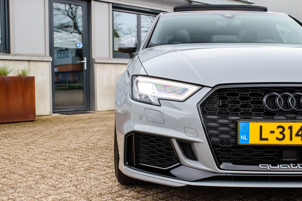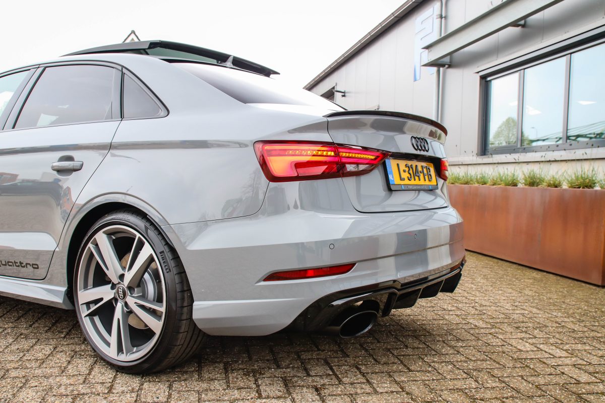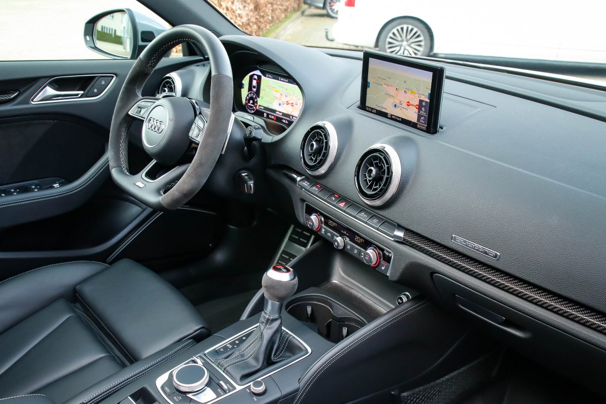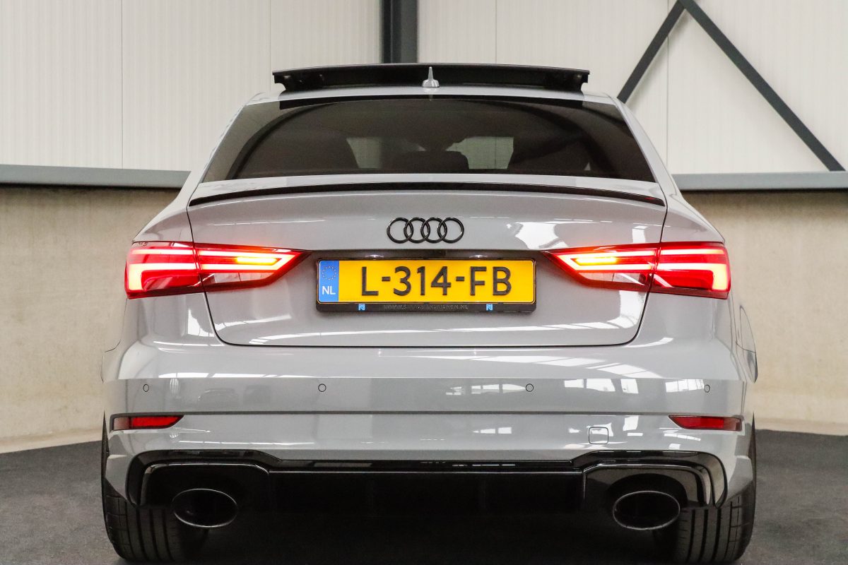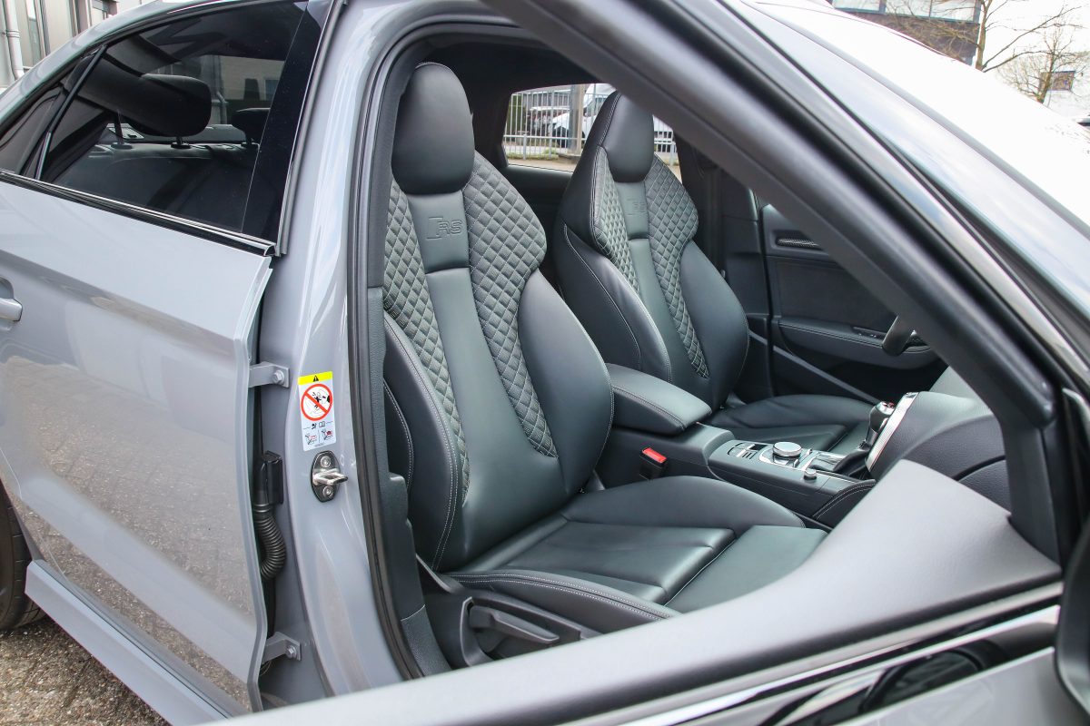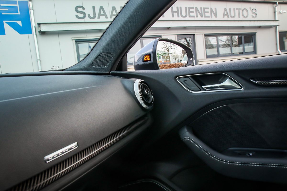 NIEUW MODEL | MODEL 2018 | FACELIFT! Een geweldig geconfigureerde en in smetteloze staat verkerende Audi RS3 Limousine 2.5 TFSI 5-cilinder 400pk S-Tronic automaat QUATTRO! Afkomstig van de 1e eigenaar, uiteraard volledig Audi dealer onderhouden inclusief bijbehorende documentatie met een gecontroleerde tellerstand van slechts 58.713km! Door QUATTRO GmbH voorzien van de juiste Audi Exclusive fabrieksconfiguratie. Maarliefst 400pk en 480Nm levert deze fenomenale 2.5 TFSI 5-cilinder turbomotor! Het sublieme Audi Quattro 4-wielaandrijving, het originele sportuitlaatsysteem biedt natuurlijk 100% garantie voor ongekende prestaties en bovenal een uniek 5-cilinder motorgeluid! Slechts 4,1 seconden zijn er nodig om deze RS naar de 100km/h te katapulteren. Het betreft een BTW-auto, dus voor zowel de zakelijke als particuliere klant interessant.