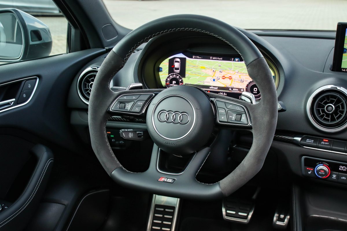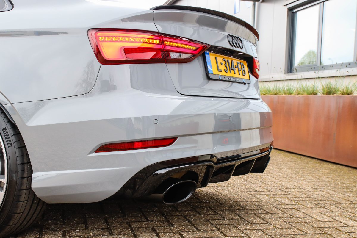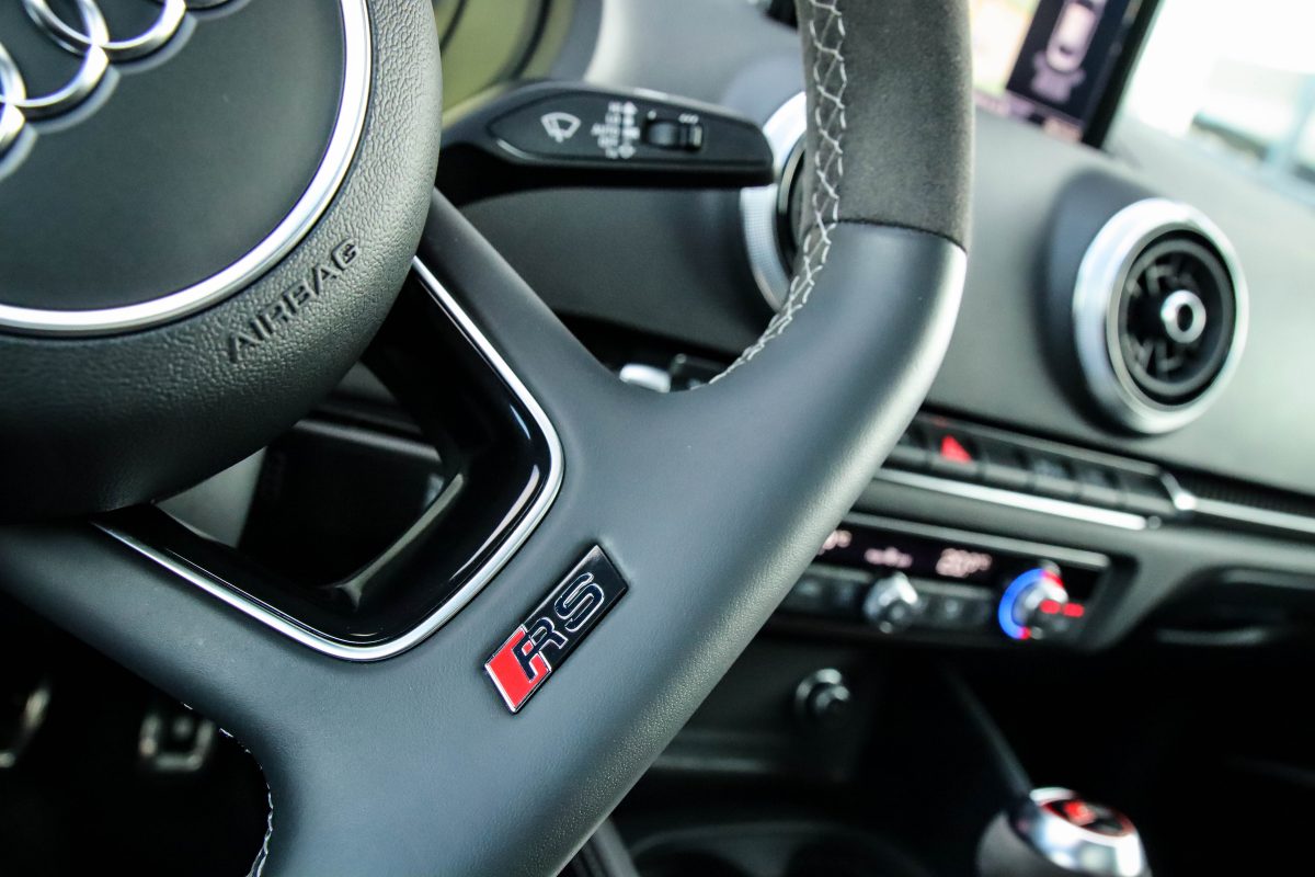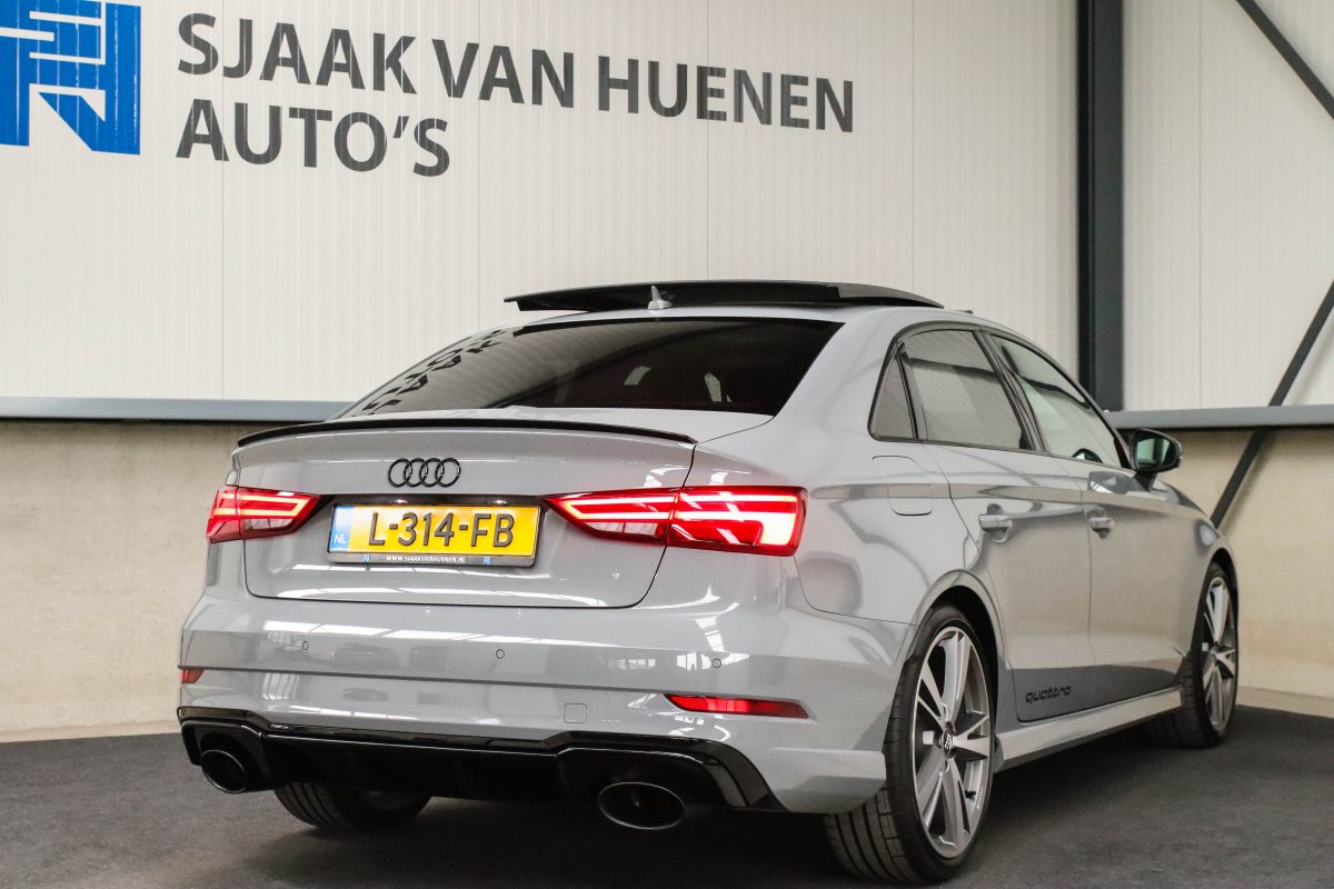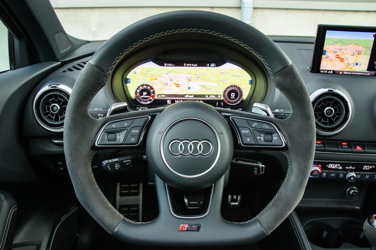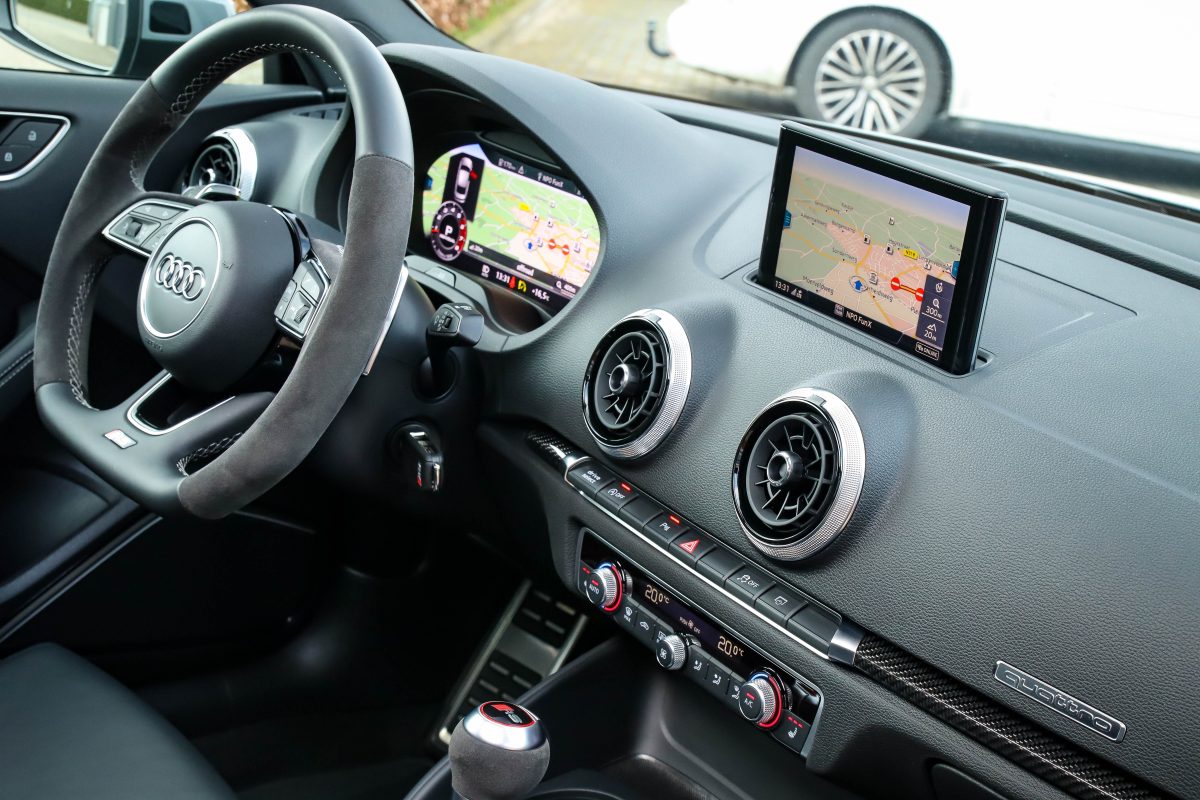 NIEUW MODEL | MODEL 2018 | FACELIFT! Een geweldig geconfigureerde en in smetteloze staat verkerende Audi RS3 Limousine 2.5 TFSI 5-cilinder 400pk S-Tronic automaat QUATTRO! Afkomstig van de 1e eigenaar, uiteraard volledig Audi dealer onderhouden inclusief bijbehorende documentatie met een gecontroleerde tellerstand van slechts 58.713km! Door QUATTRO GmbH voorzien van de juiste Audi Exclusive fabrieksconfiguratie. Maarliefst 400pk en 480Nm levert deze fenomenale 2.5 TFSI 5-cilinder turbomotor! Het sublieme Audi Quattro 4-wielaandrijving, het originele sportuitlaatsysteem biedt natuurlijk 100% garantie voor ongekende prestaties en bovenal een uniek 5-cilinder motorgeluid! Slechts 4,1 seconden zijn er nodig om deze RS naar de 100km/h te katapulteren. Het betreft een BTW-auto, dus voor zowel de zakelijke als particuliere klant interessant.