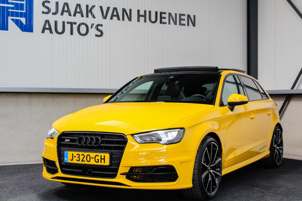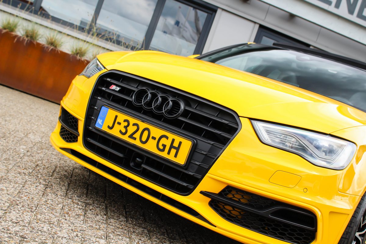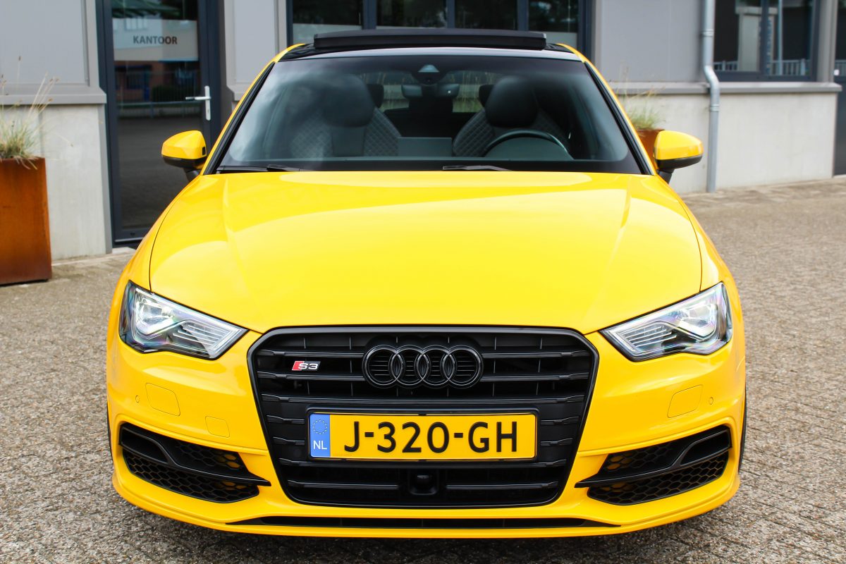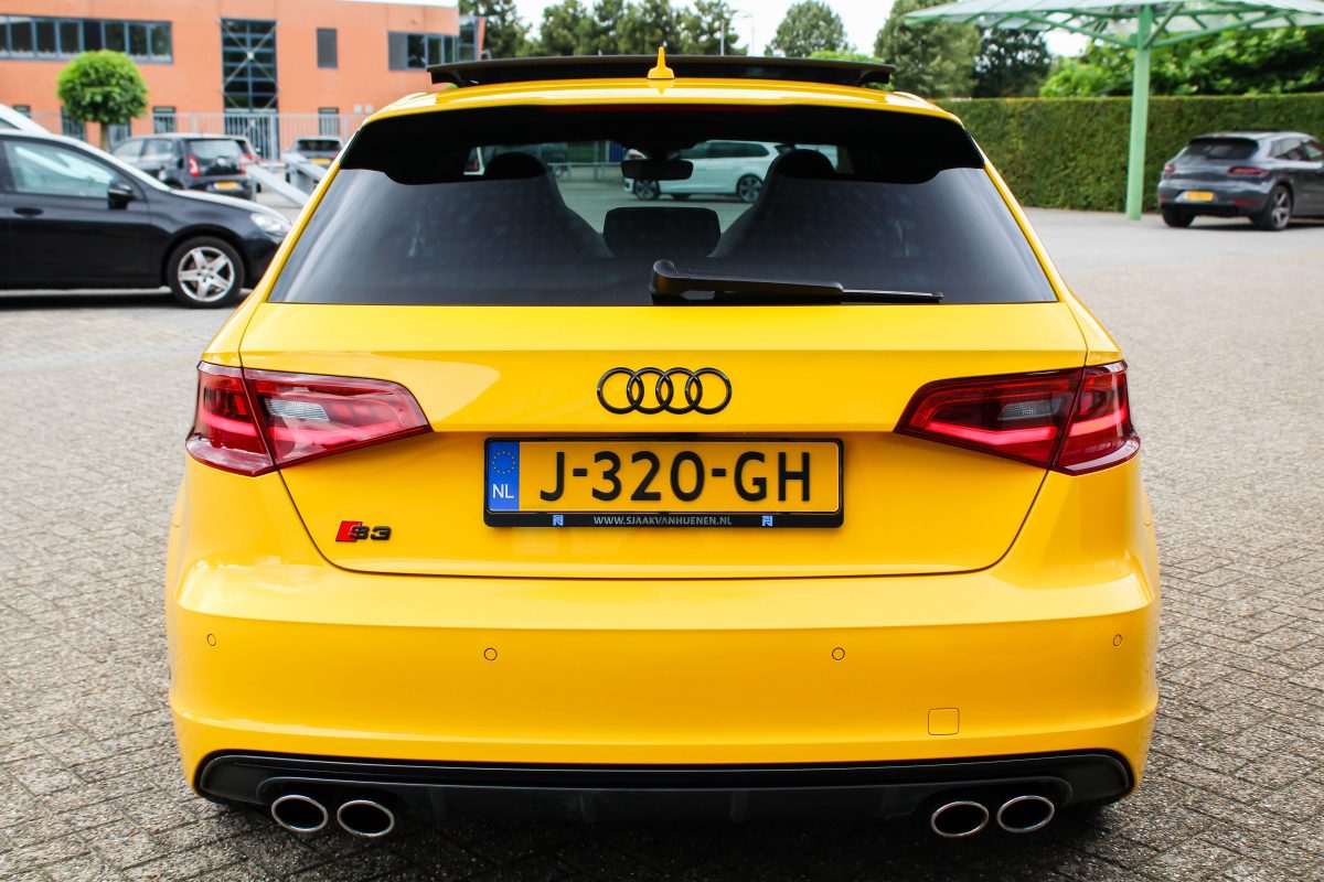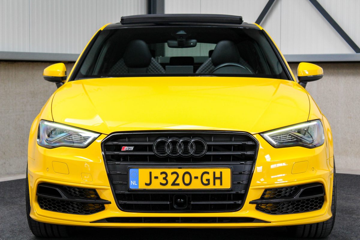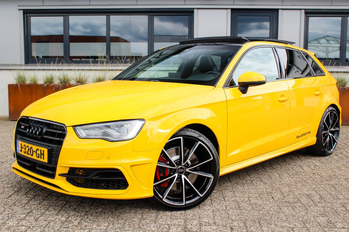 UNIEK! Een in nieuwstaat verkerende en exclusief uitgeruste Audi S3 Sportback 300pk 2.0TFSI S-Tronic automaat Quattro 5-Deurs! Een echt liefhebbers exemplaar, afkomstig van de 1e eigenaar en volledig Audi dealer onderhouden met een tellerstand van slechts 62.527 kilometer. Audi Exclusive exterieur Vegas Yellow gecombineerd met het glazen panoramadak en natuurlijk de Supersport Valcona lederen kuipstoelen met de witte cross stitching maken deze Hothatch tot een uniek exemplaar. De nieuwprijs van ruim €62.000,- vertegenwoordigd een Audi S3 die voorzien is van praktisch iedere fabrieksoptie! De getoonde 19inch Audi S3 velgenset met 4x nieuwe Pirelli PZERO zomerbanden is tegen geringe meerprijs van €995,- te verkrijgen.