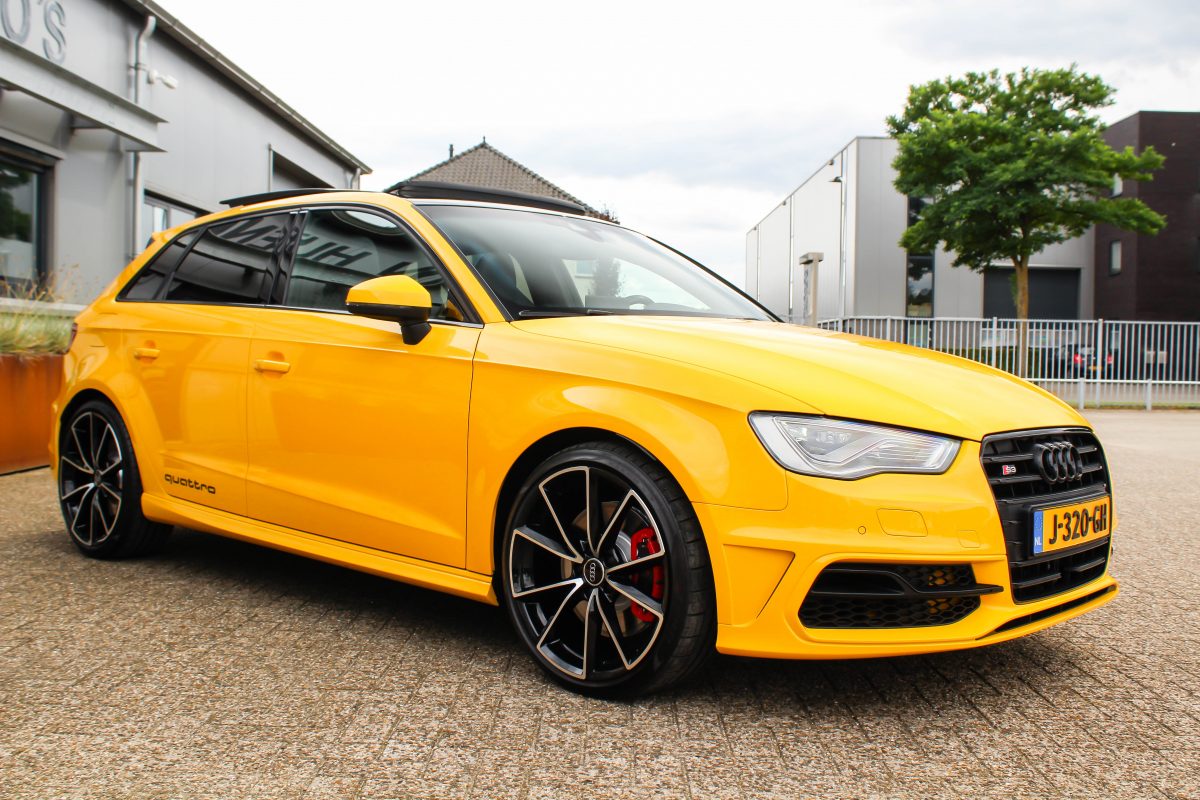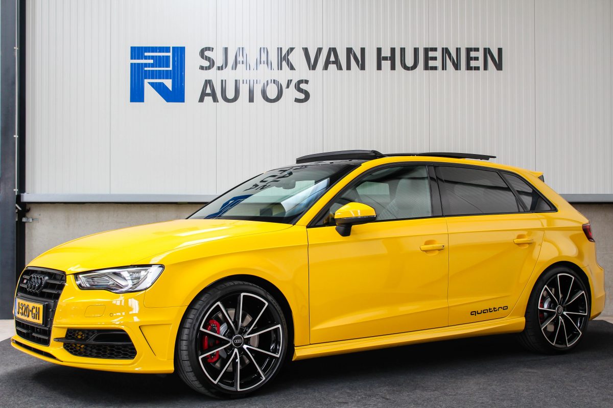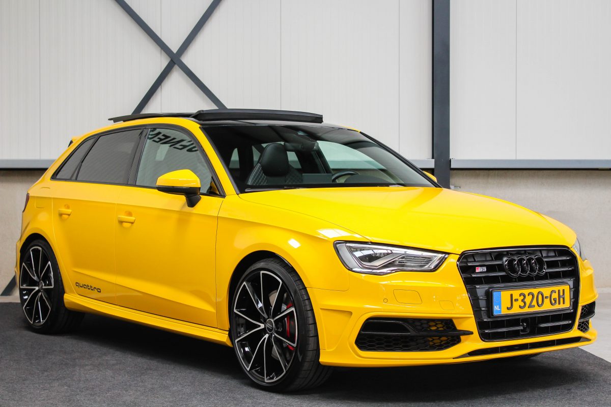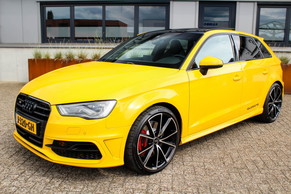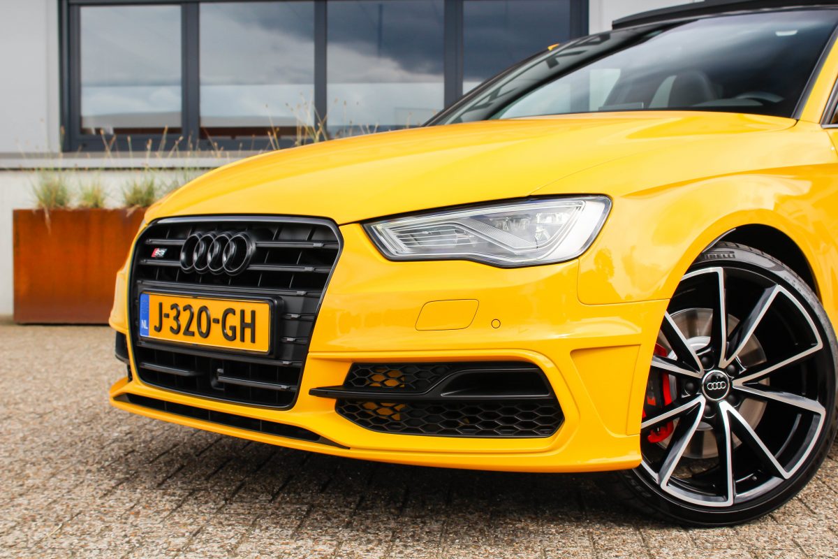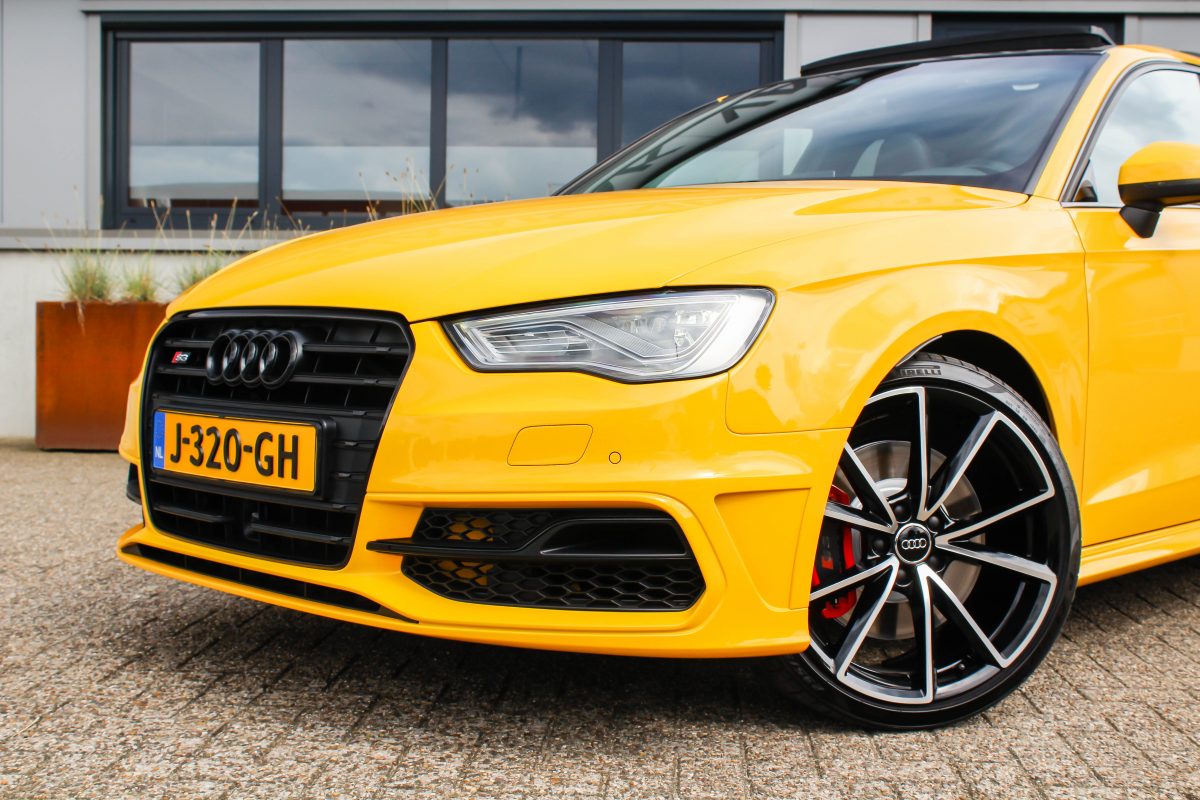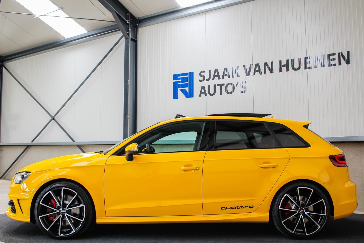 UNIEK! Een in nieuwstaat verkerende en exclusief uitgeruste Audi S3 Sportback 300pk 2.0TFSI S-Tronic automaat Quattro 5-Deurs! Een echt liefhebbers exemplaar, afkomstig van de 1e eigenaar en volledig Audi dealer onderhouden met een tellerstand van slechts 62.527 kilometer. Audi Exclusive exterieur Vegas Yellow gecombineerd met het glazen panoramadak en natuurlijk de Supersport Valcona lederen kuipstoelen met de witte cross stitching maken deze Hothatch tot een uniek exemplaar. De nieuwprijs van ruim €62.000,- vertegenwoordigd een Audi S3 die voorzien is van praktisch iedere fabrieksoptie! De getoonde 19inch Audi S3 velgenset met 4x nieuwe Pirelli PZERO zomerbanden is tegen geringe meerprijs van €995,- te verkrijgen.