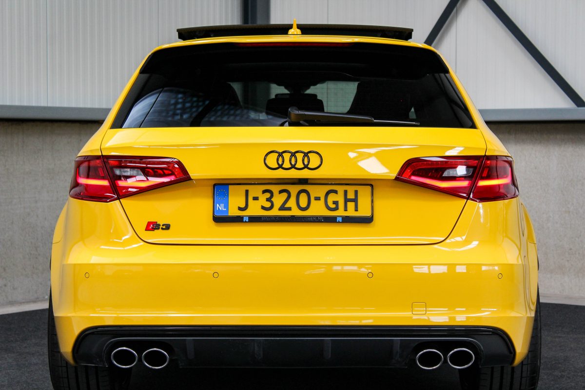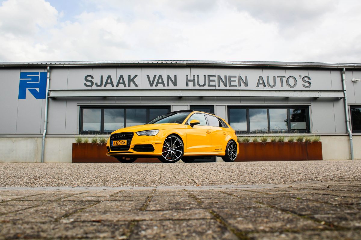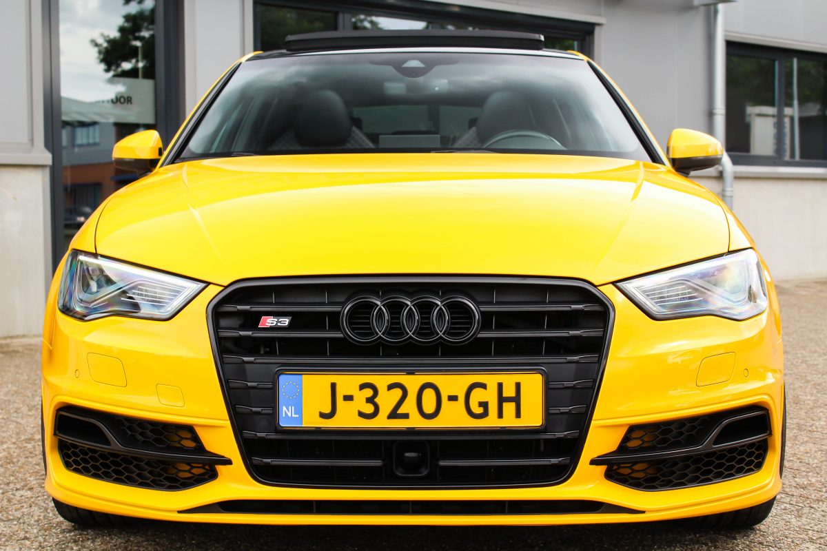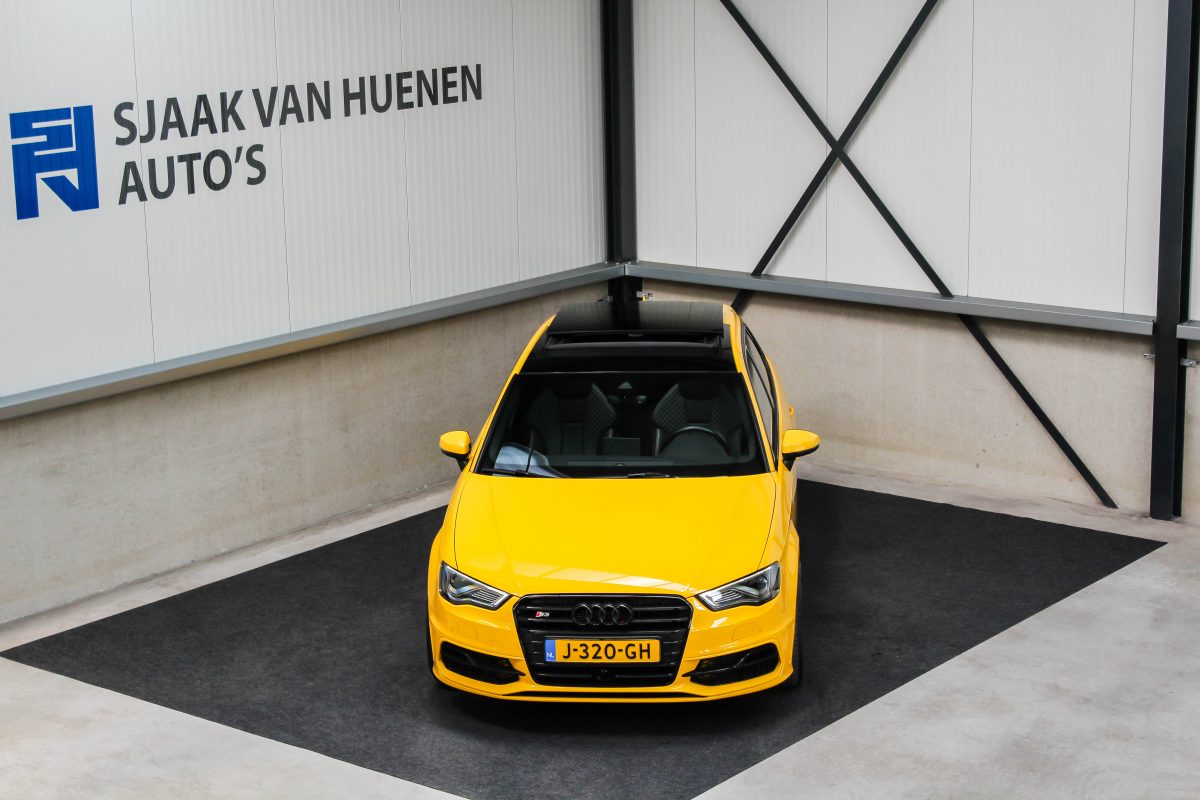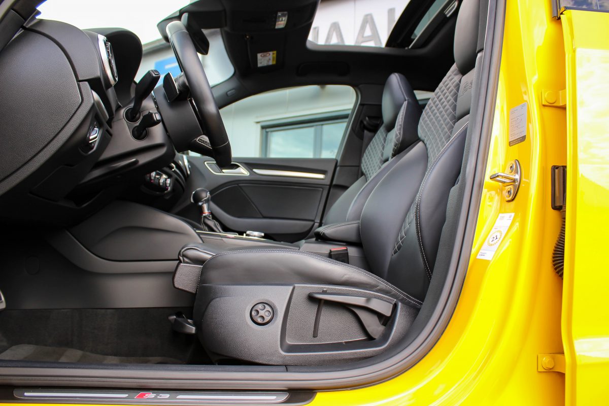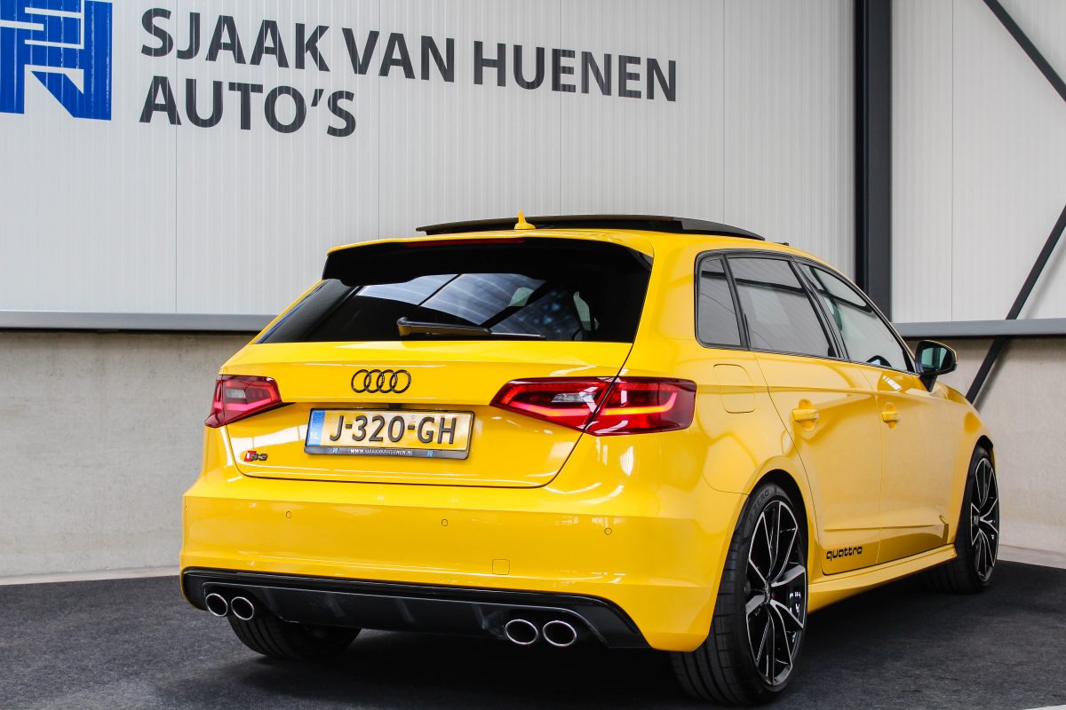 UNIEK! Een in nieuwstaat verkerende en exclusief uitgeruste Audi S3 Sportback 300pk 2.0TFSI S-Tronic automaat Quattro 5-Deurs! Een echt liefhebbers exemplaar, afkomstig van de 1e eigenaar en volledig Audi dealer onderhouden met een tellerstand van slechts 62.527 kilometer. Audi Exclusive exterieur Vegas Yellow gecombineerd met het glazen panoramadak en natuurlijk de Supersport Valcona lederen kuipstoelen met de witte cross stitching maken deze Hothatch tot een uniek exemplaar. De nieuwprijs van ruim €62.000,- vertegenwoordigd een Audi S3 die voorzien is van praktisch iedere fabrieksoptie! De getoonde 19inch Audi S3 velgenset met 4x nieuwe Pirelli PZERO zomerbanden is tegen geringe meerprijs van €995,- te verkrijgen.
