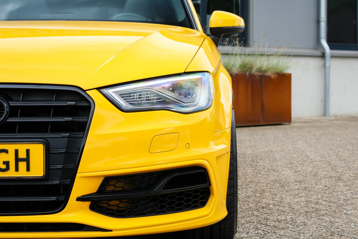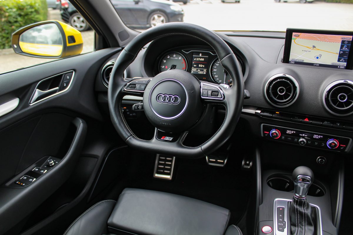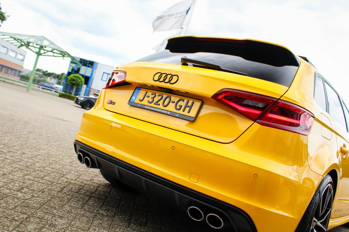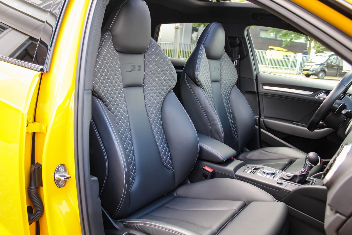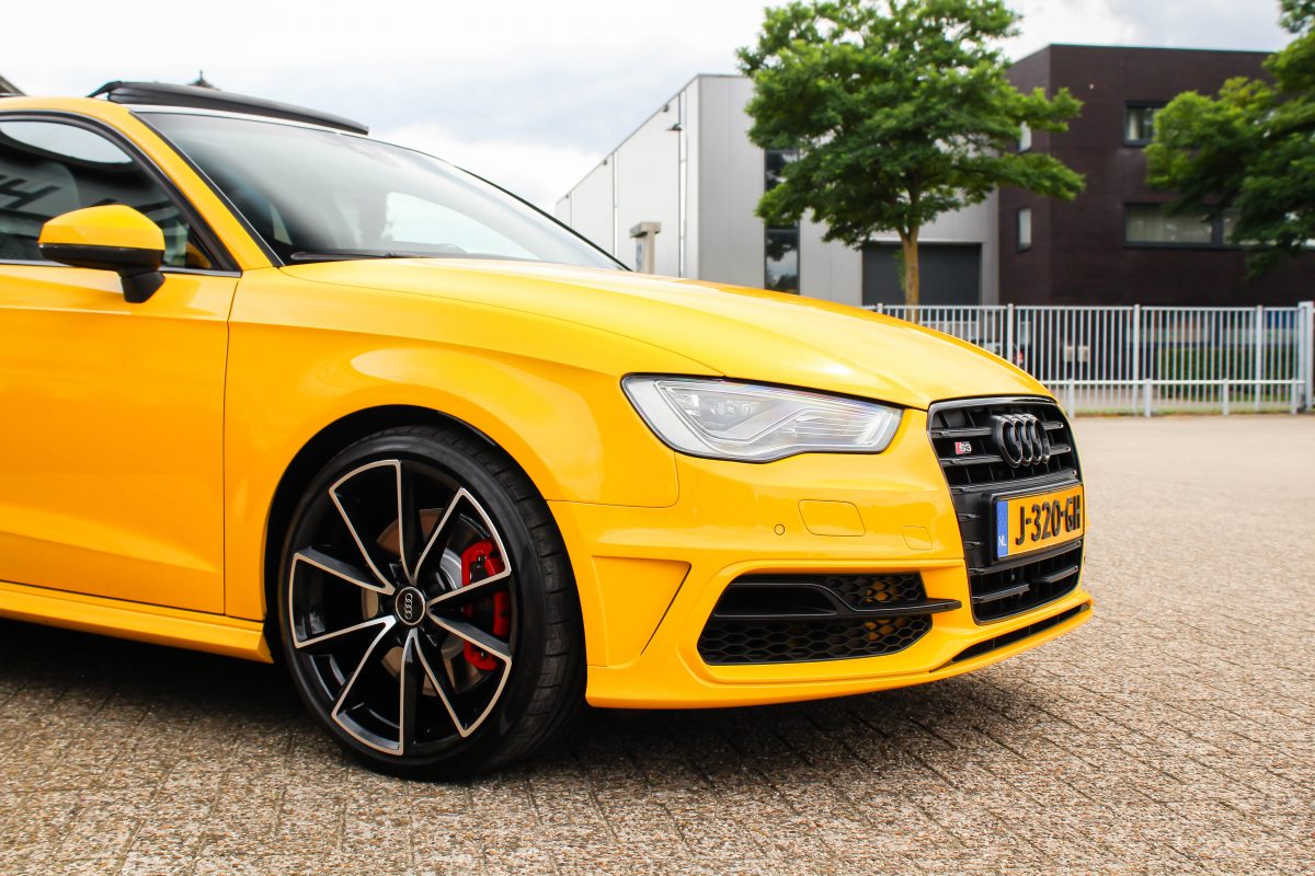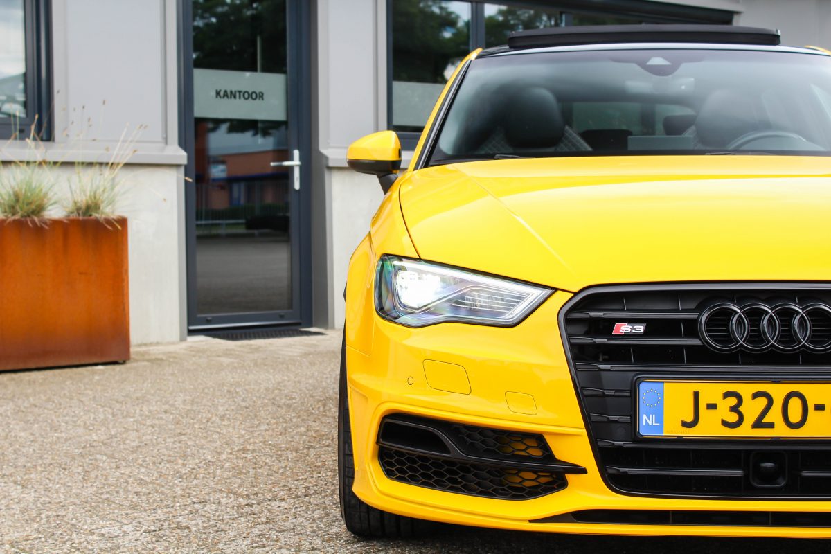 UNIEK! Een in nieuwstaat verkerende en exclusief uitgeruste Audi S3 Sportback 300pk 2.0TFSI S-Tronic automaat Quattro 5-Deurs! Een echt liefhebbers exemplaar, afkomstig van de 1e eigenaar en volledig Audi dealer onderhouden met een tellerstand van slechts 62.527 kilometer. Audi Exclusive exterieur Vegas Yellow gecombineerd met het glazen panoramadak en natuurlijk de Supersport Valcona lederen kuipstoelen met de witte cross stitching maken deze Hothatch tot een uniek exemplaar. De nieuwprijs van ruim €62.000,- vertegenwoordigd een Audi S3 die voorzien is van praktisch iedere fabrieksoptie! De getoonde 19inch Audi S3 velgenset met 4x nieuwe Pirelli PZERO zomerbanden is tegen geringe meerprijs van €995,- te verkrijgen.