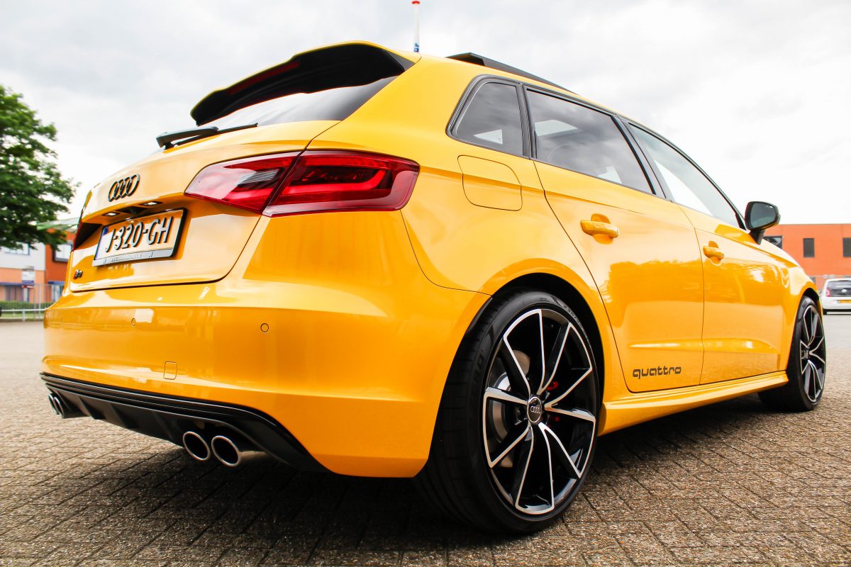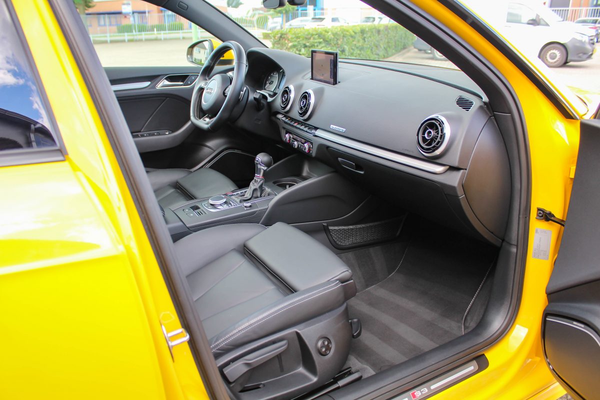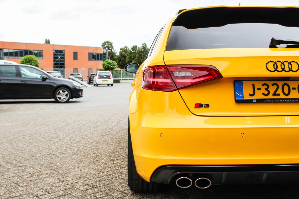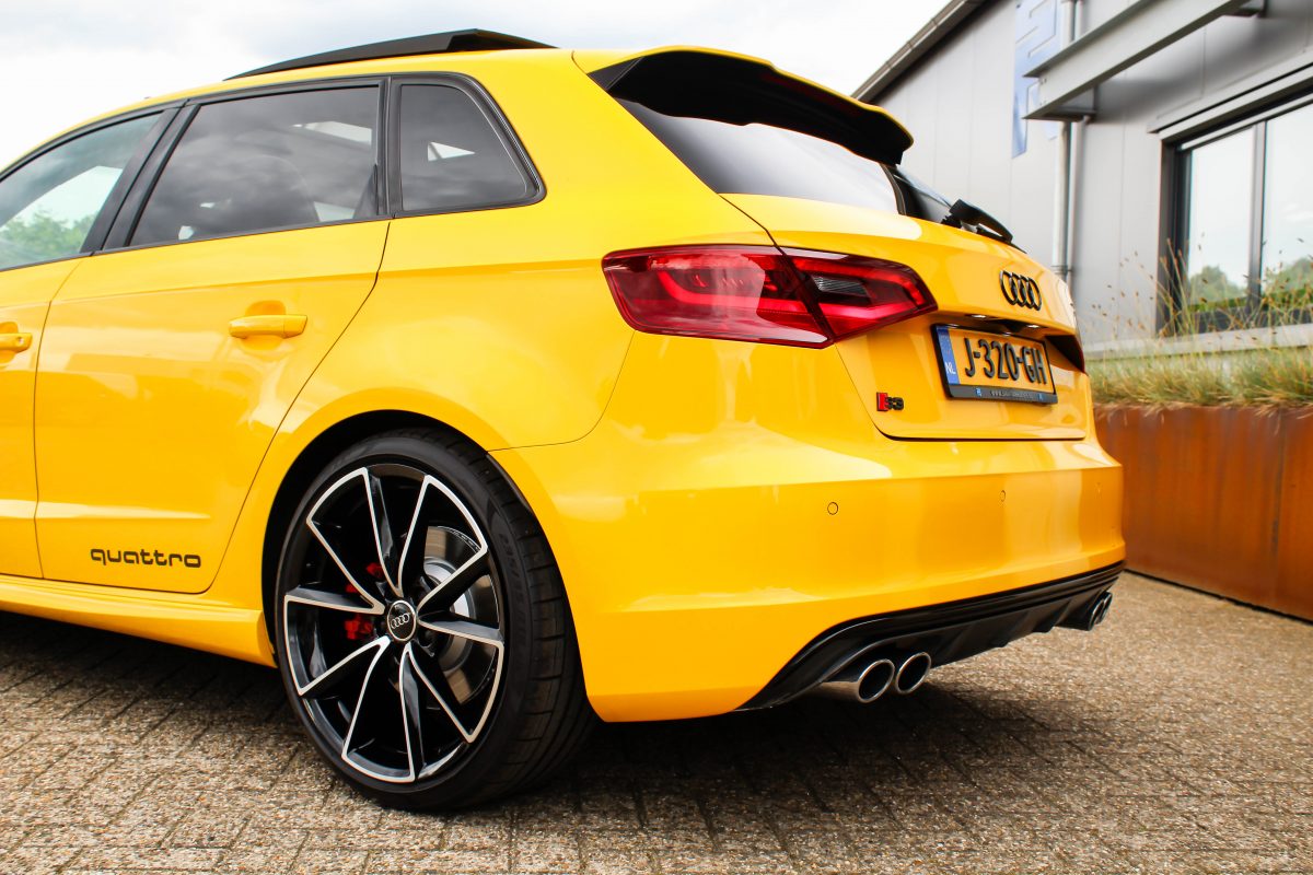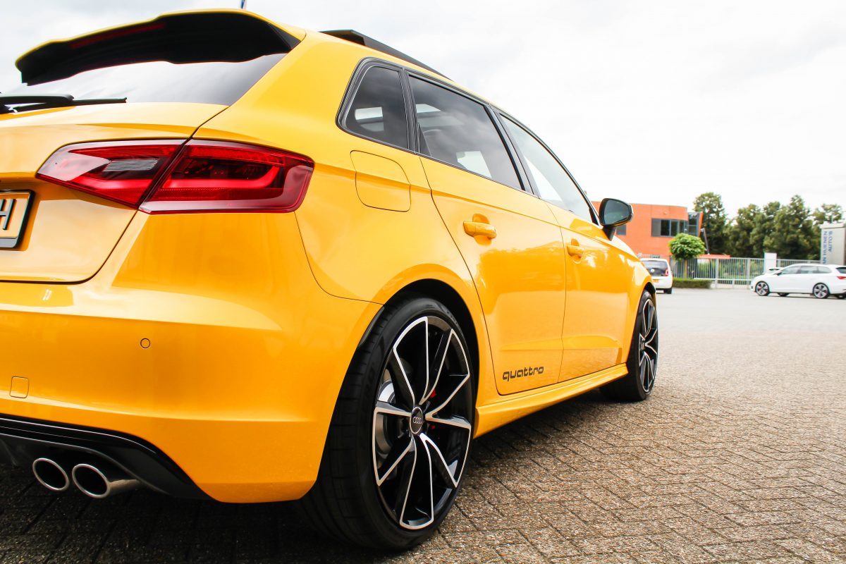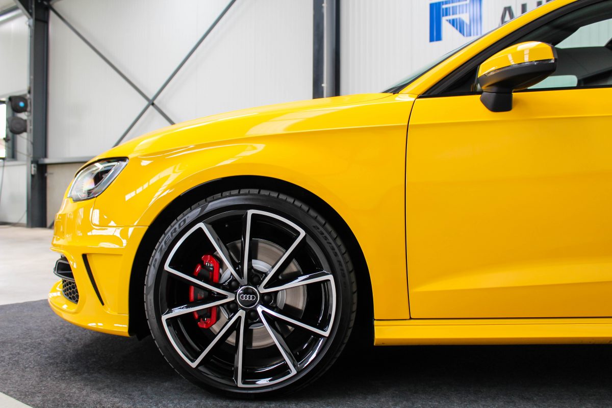 UNIEK! Een in nieuwstaat verkerende en exclusief uitgeruste Audi S3 Sportback 300pk 2.0TFSI S-Tronic automaat Quattro 5-Deurs! Een echt liefhebbers exemplaar, afkomstig van de 1e eigenaar en volledig Audi dealer onderhouden met een tellerstand van slechts 62.527 kilometer. Audi Exclusive exterieur Vegas Yellow gecombineerd met het glazen panoramadak en natuurlijk de Supersport Valcona lederen kuipstoelen met de witte cross stitching maken deze Hothatch tot een uniek exemplaar. De nieuwprijs van ruim €62.000,- vertegenwoordigd een Audi S3 die voorzien is van praktisch iedere fabrieksoptie! De getoonde 19inch Audi S3 velgenset met 4x nieuwe Pirelli PZERO zomerbanden is tegen geringe meerprijs van €995,- te verkrijgen.