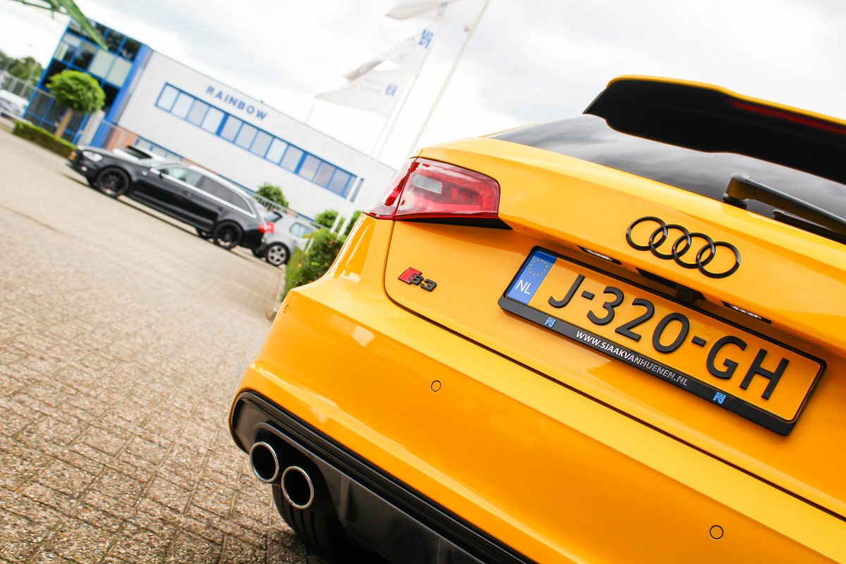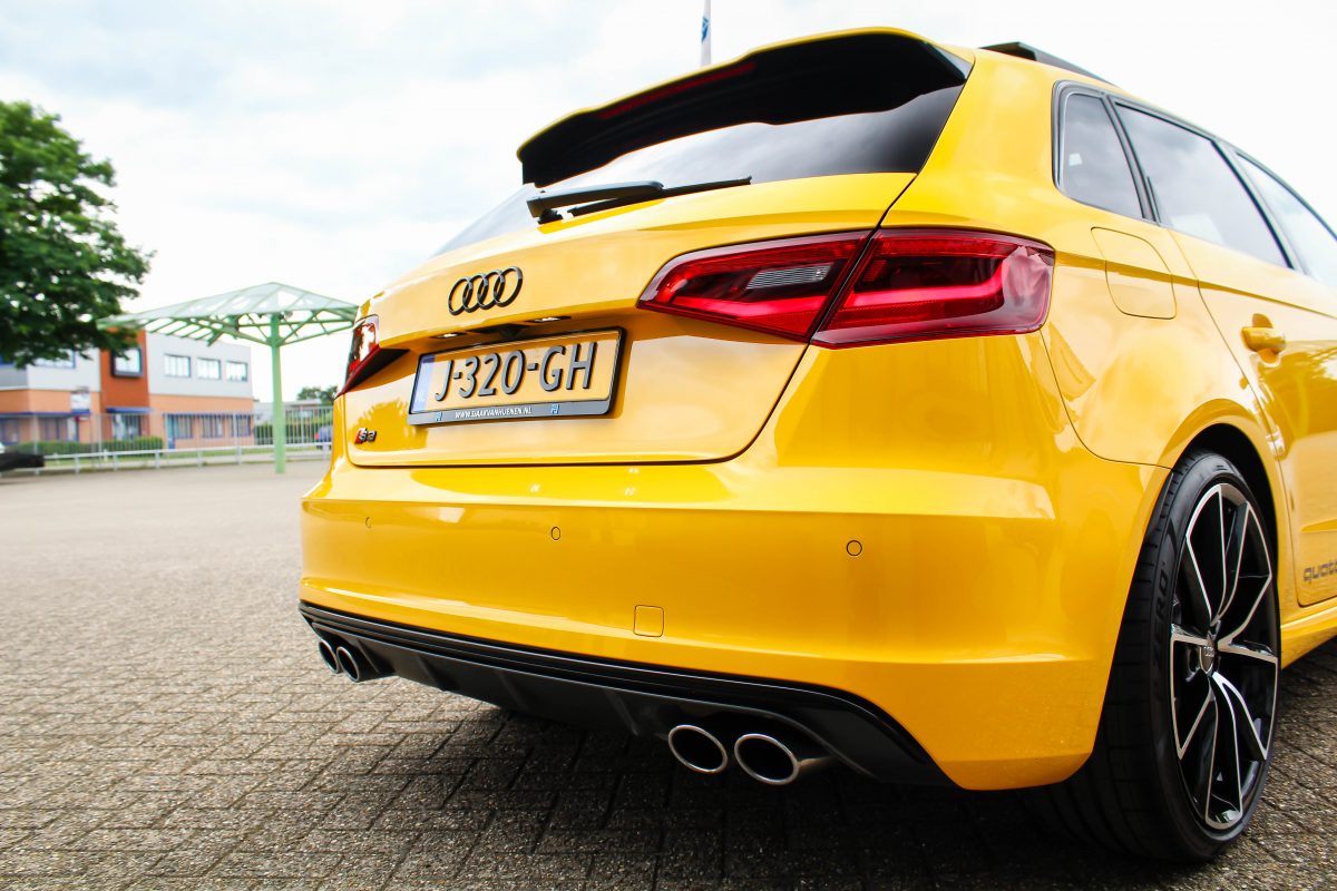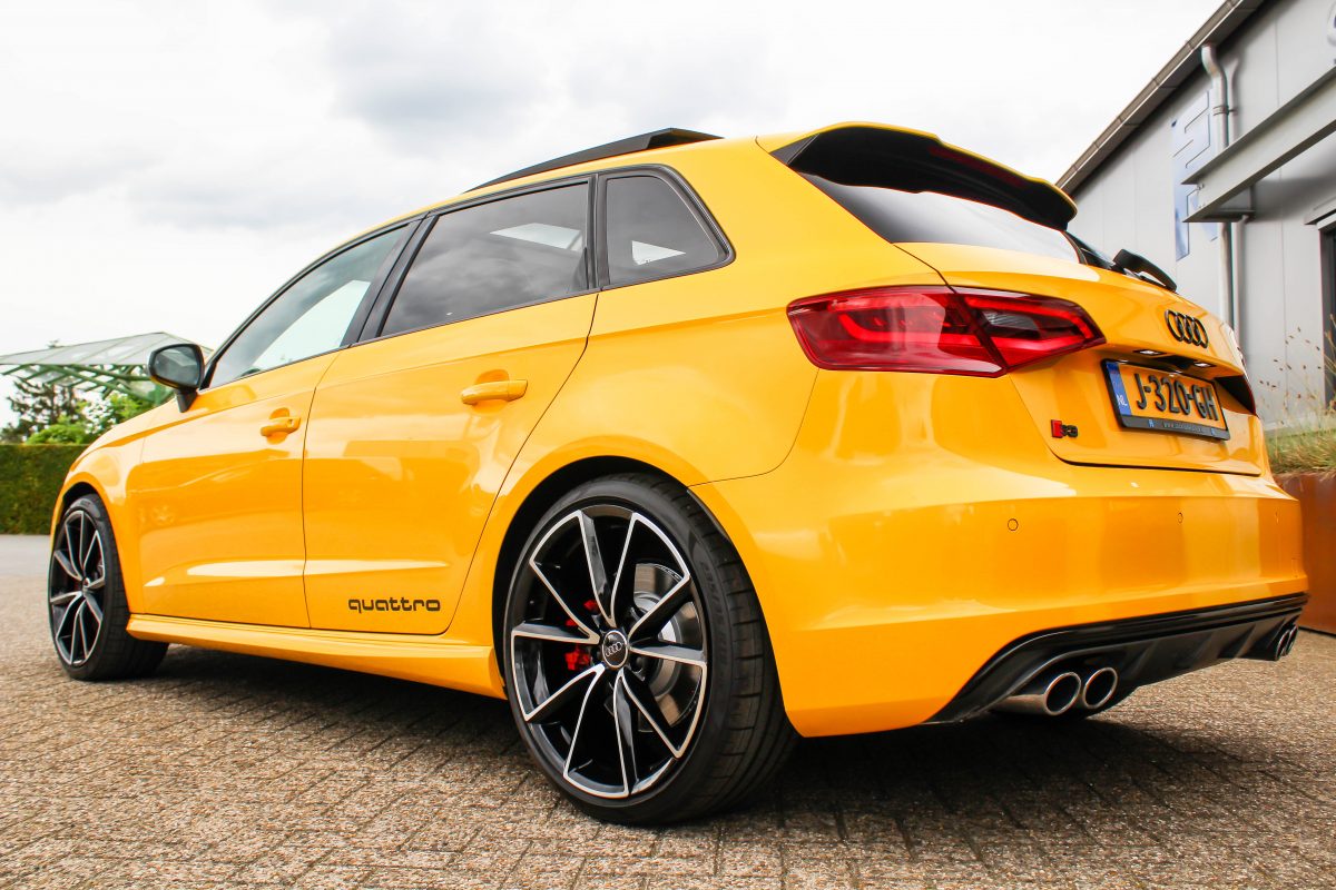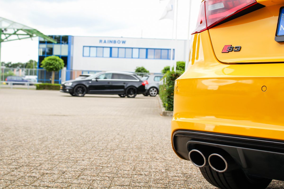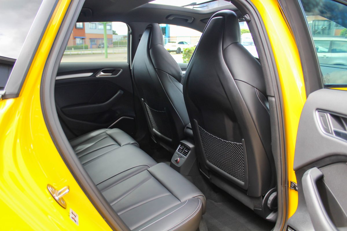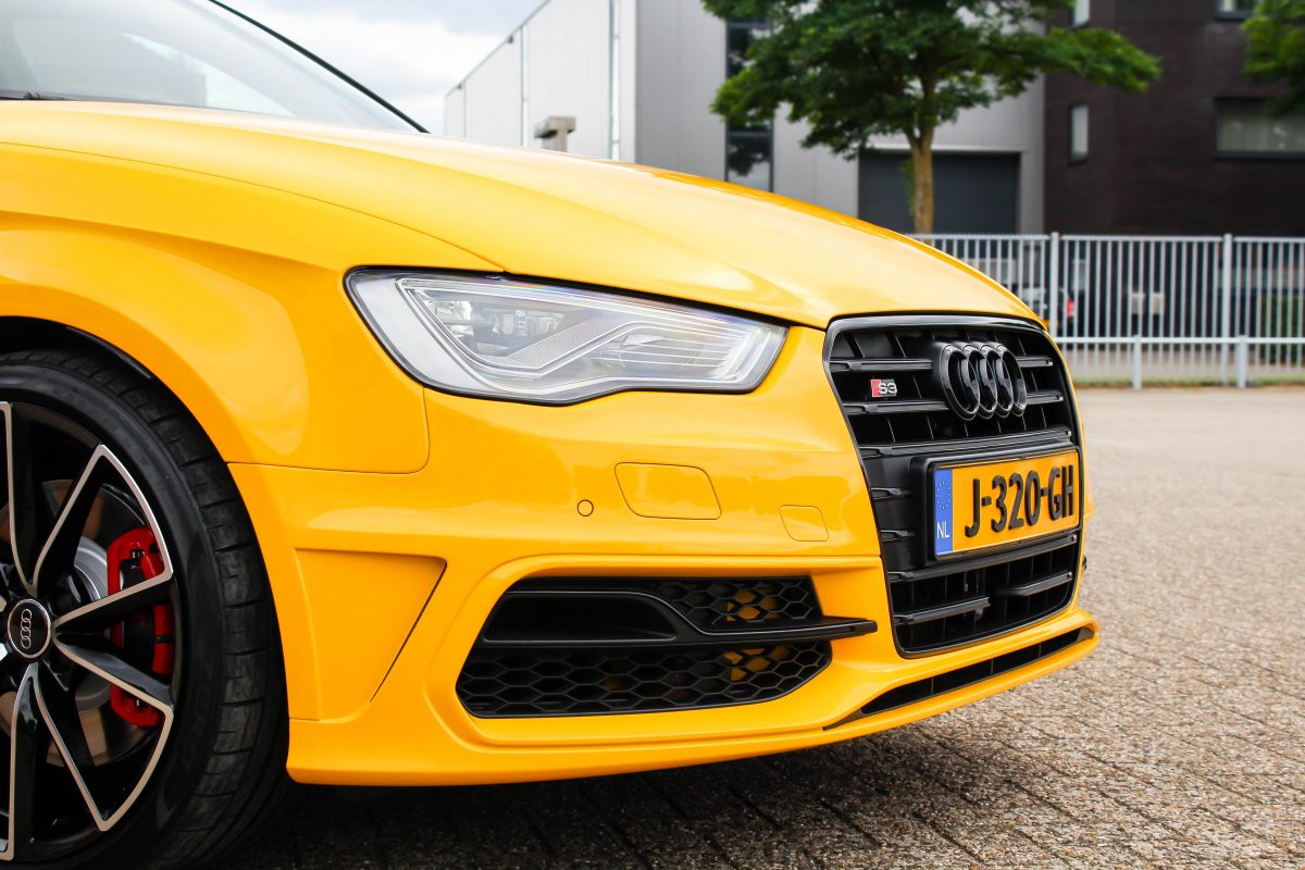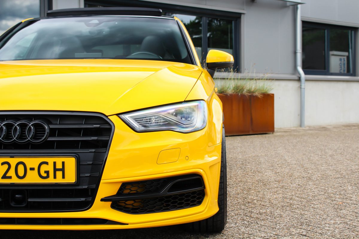 UNIEK! Een in nieuwstaat verkerende en exclusief uitgeruste Audi S3 Sportback 300pk 2.0TFSI S-Tronic automaat Quattro 5-Deurs! Een echt liefhebbers exemplaar, afkomstig van de 1e eigenaar en volledig Audi dealer onderhouden met een tellerstand van slechts 62.527 kilometer. Audi Exclusive exterieur Vegas Yellow gecombineerd met het glazen panoramadak en natuurlijk de Supersport Valcona lederen kuipstoelen met de witte cross stitching maken deze Hothatch tot een uniek exemplaar. De nieuwprijs van ruim €62.000,- vertegenwoordigd een Audi S3 die voorzien is van praktisch iedere fabrieksoptie! De getoonde 19inch Audi S3 velgenset met 4x nieuwe Pirelli PZERO zomerbanden is tegen geringe meerprijs van €995,- te verkrijgen.