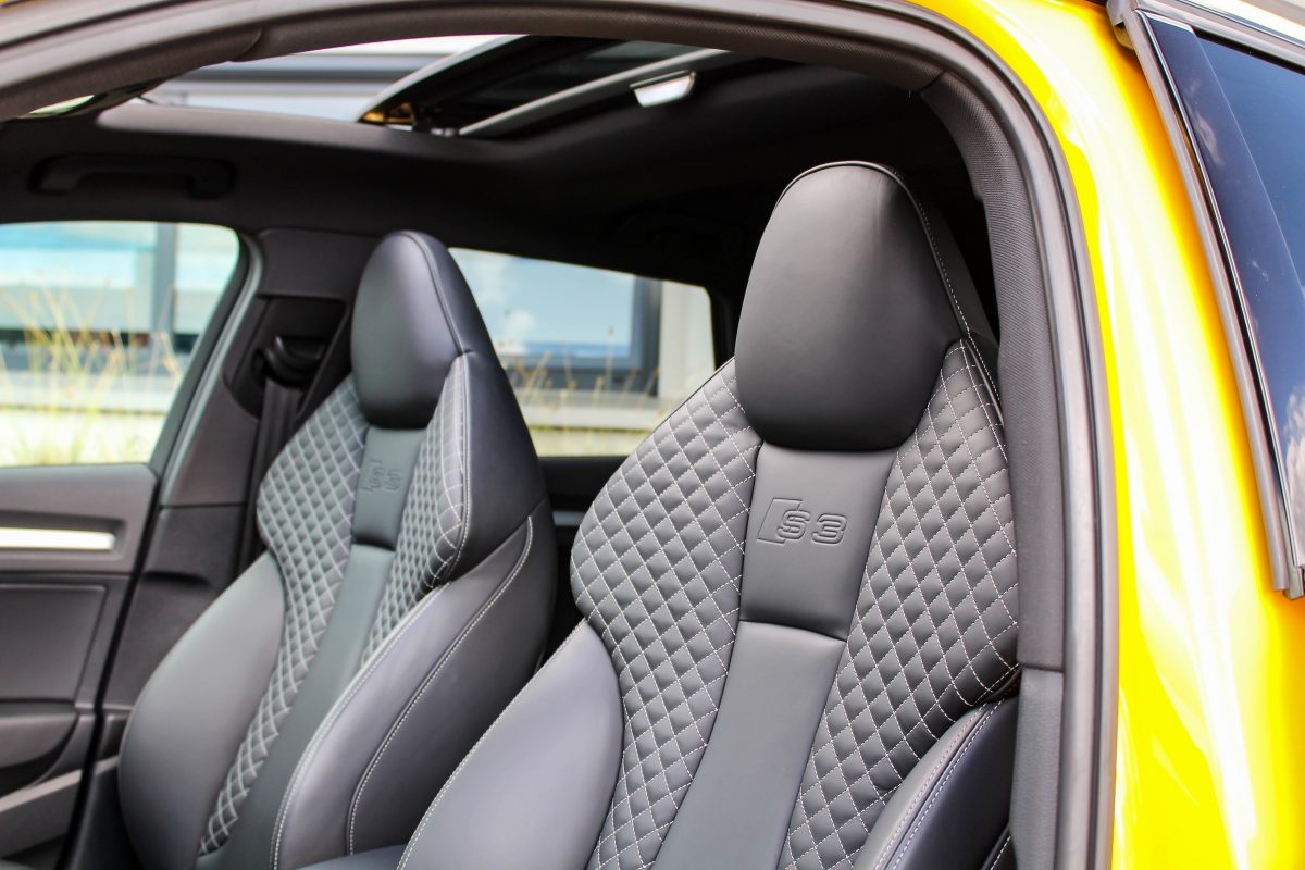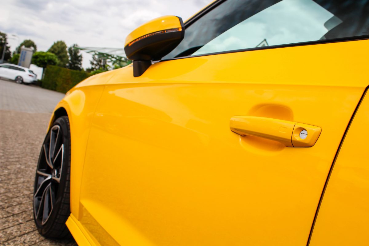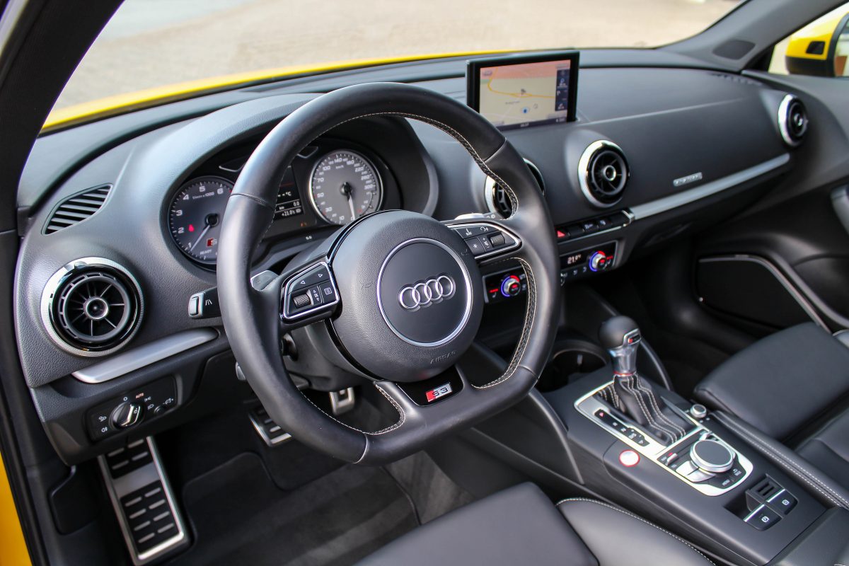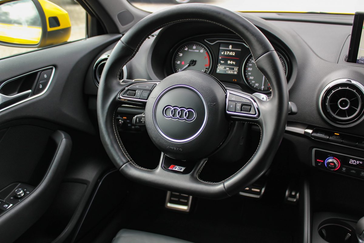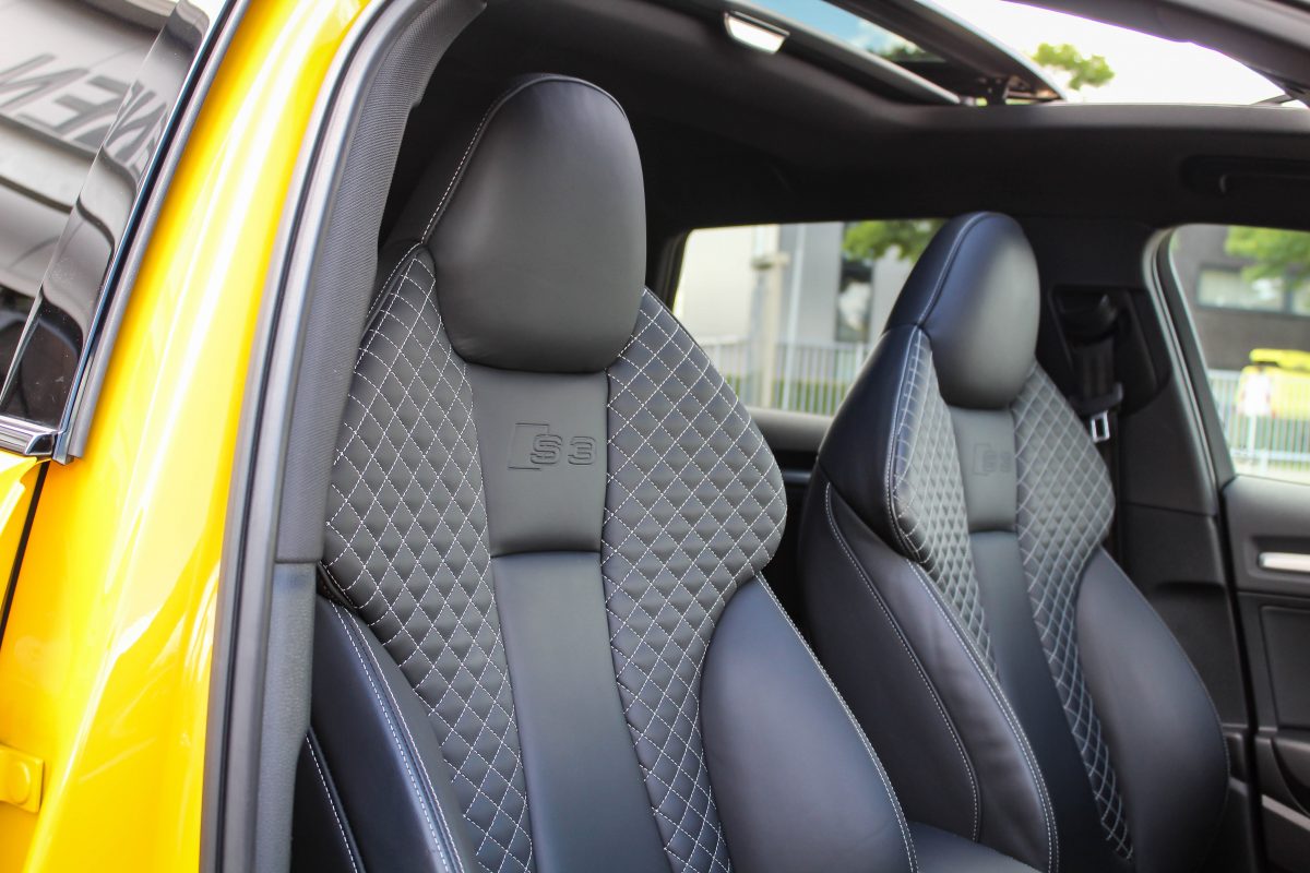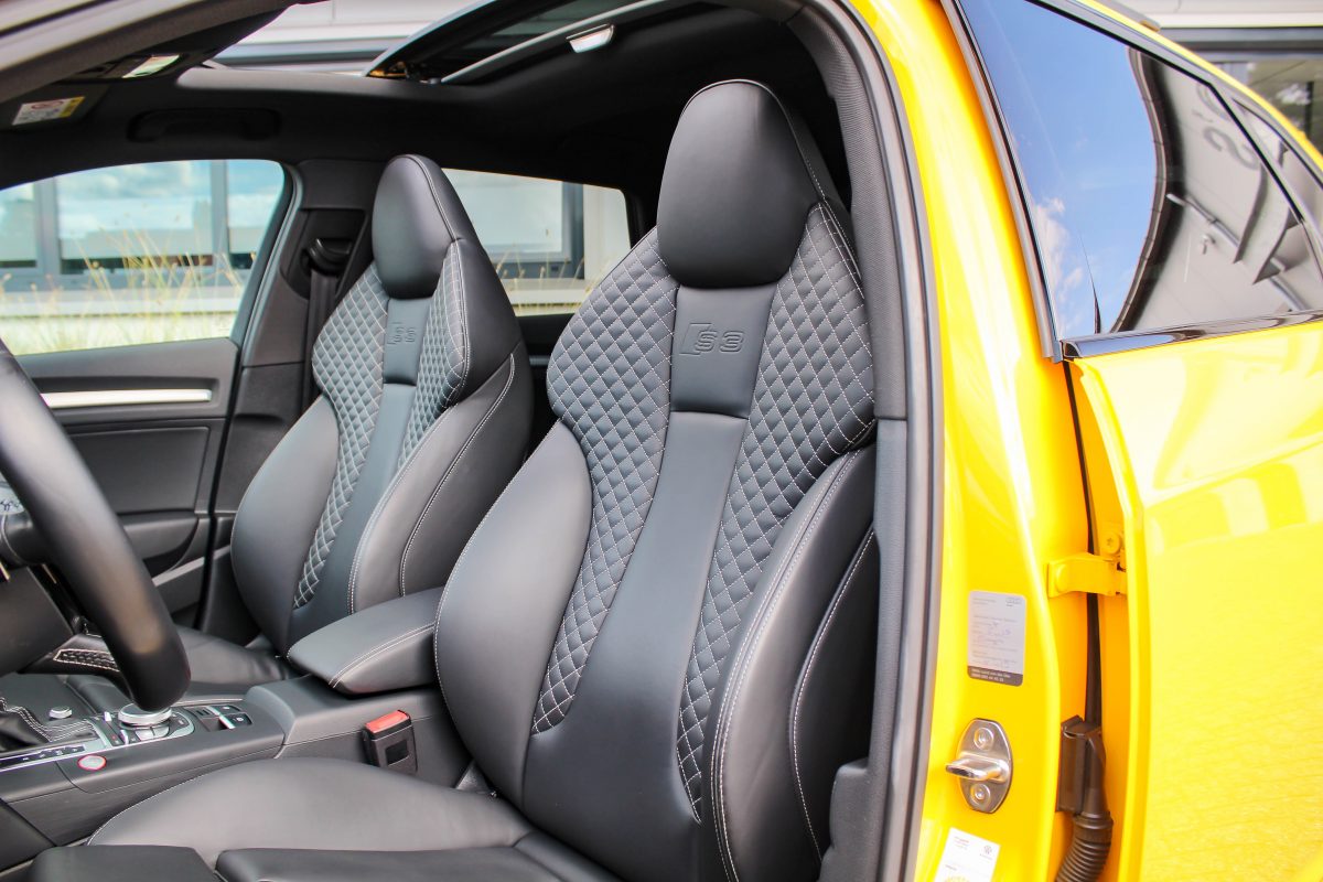 UNIEK! Een in nieuwstaat verkerende en exclusief uitgeruste Audi S3 Sportback 300pk 2.0TFSI S-Tronic automaat Quattro 5-Deurs! Een echt liefhebbers exemplaar, afkomstig van de 1e eigenaar en volledig Audi dealer onderhouden met een tellerstand van slechts 62.527 kilometer. Audi Exclusive exterieur Vegas Yellow gecombineerd met het glazen panoramadak en natuurlijk de Supersport Valcona lederen kuipstoelen met de witte cross stitching maken deze Hothatch tot een uniek exemplaar. De nieuwprijs van ruim €62.000,- vertegenwoordigd een Audi S3 die voorzien is van praktisch iedere fabrieksoptie! De getoonde 19inch Audi S3 velgenset met 4x nieuwe Pirelli PZERO zomerbanden is tegen geringe meerprijs van €995,- te verkrijgen.