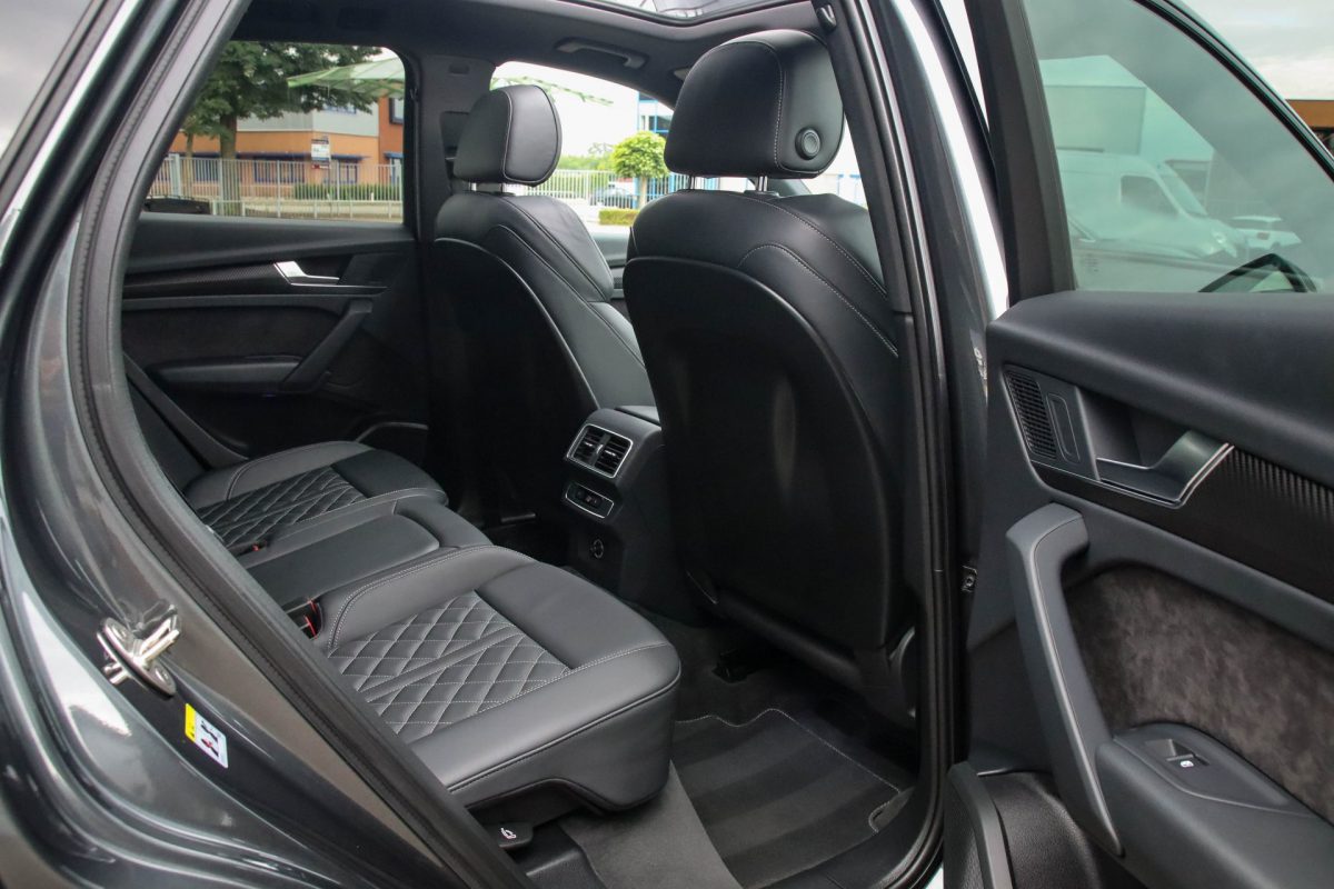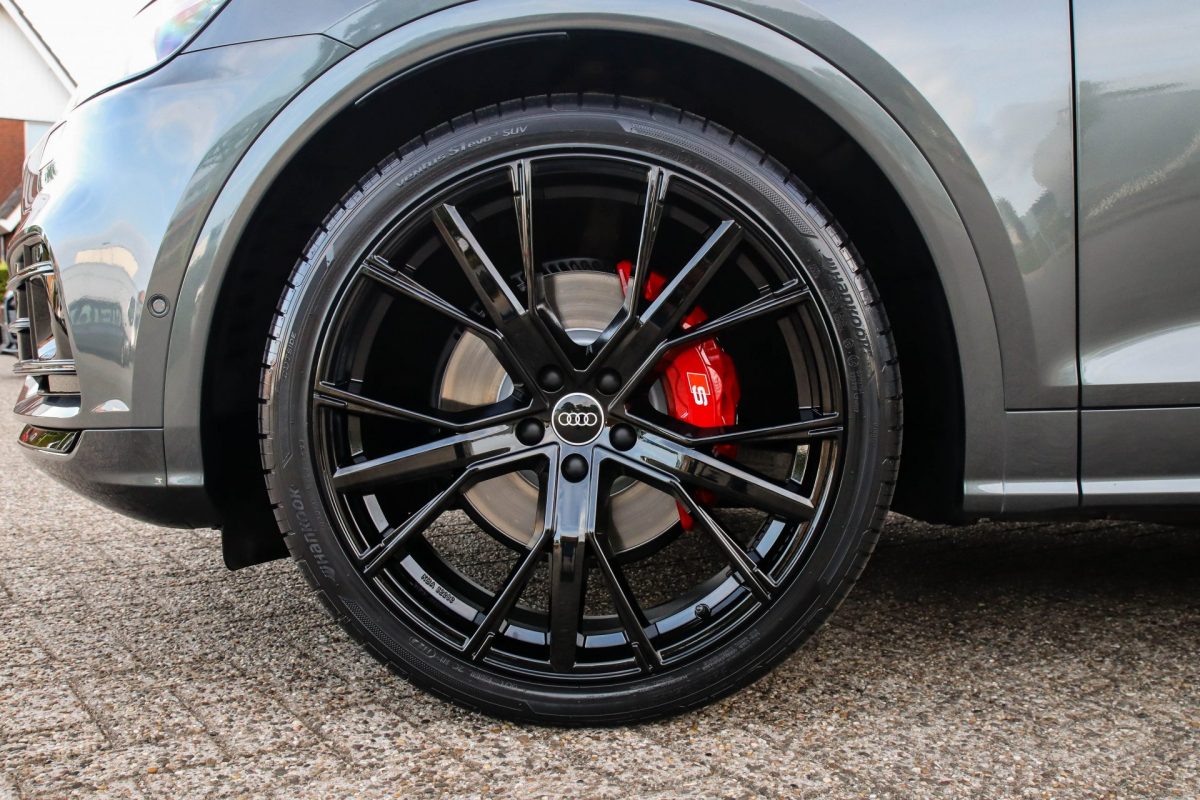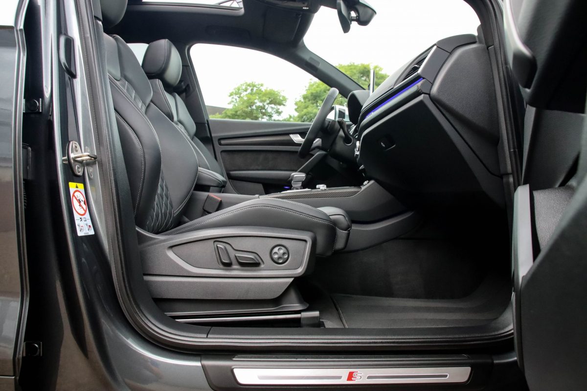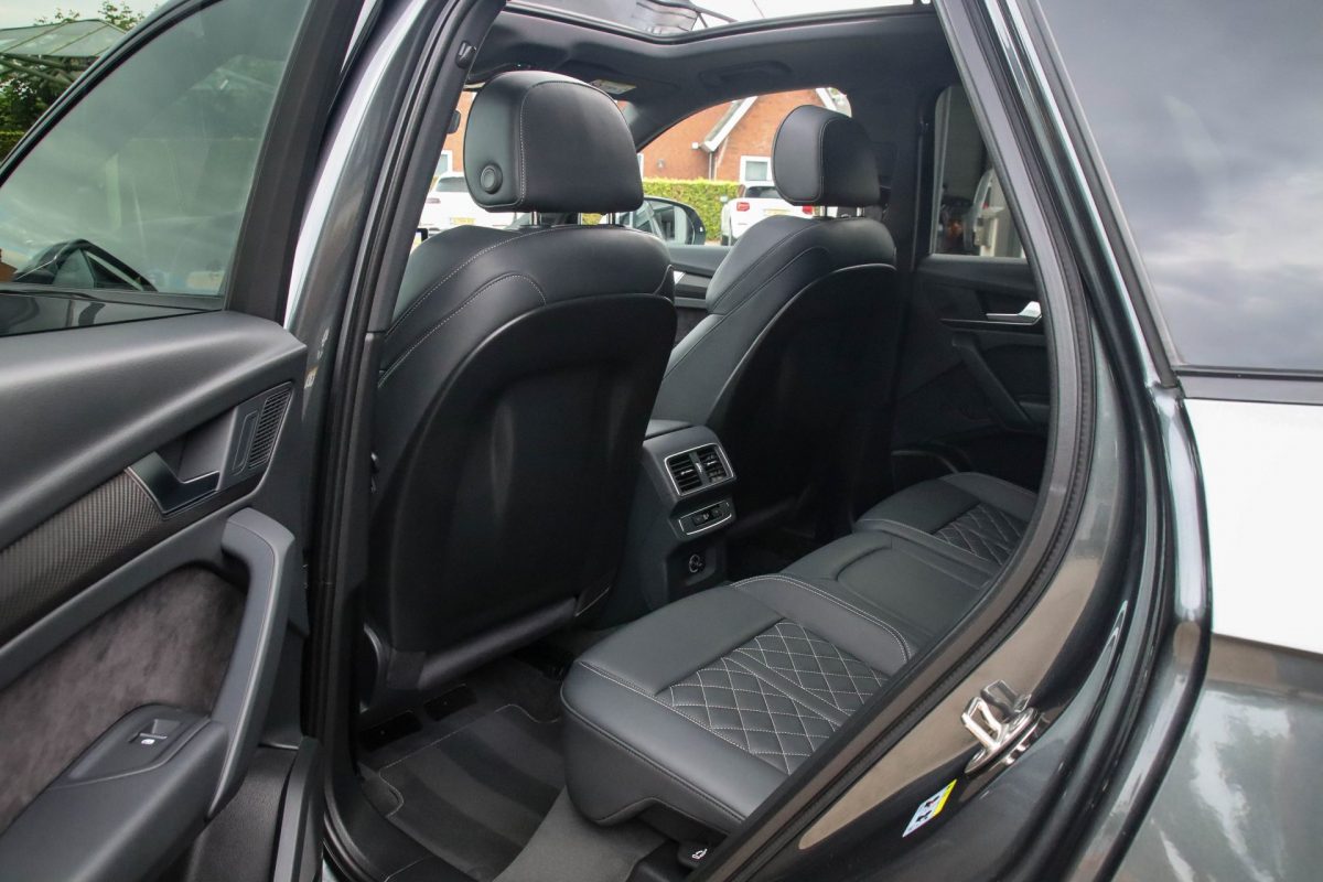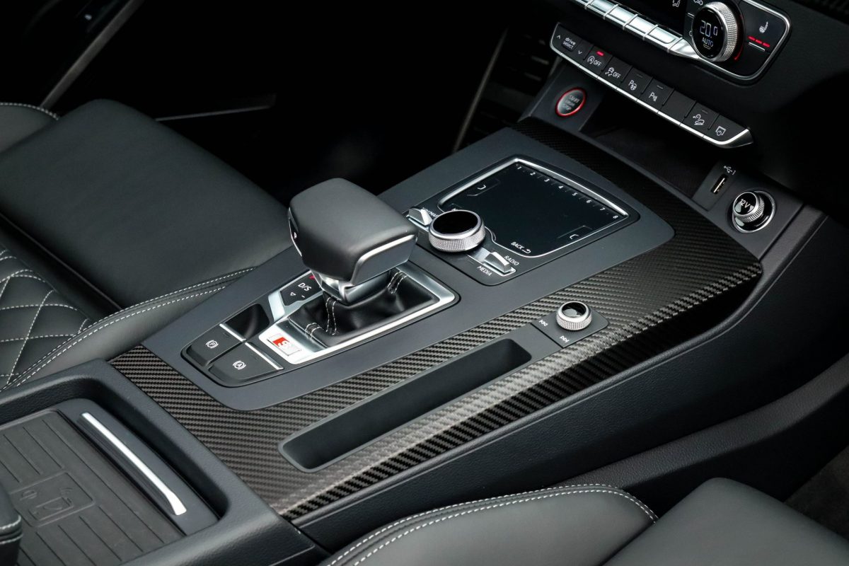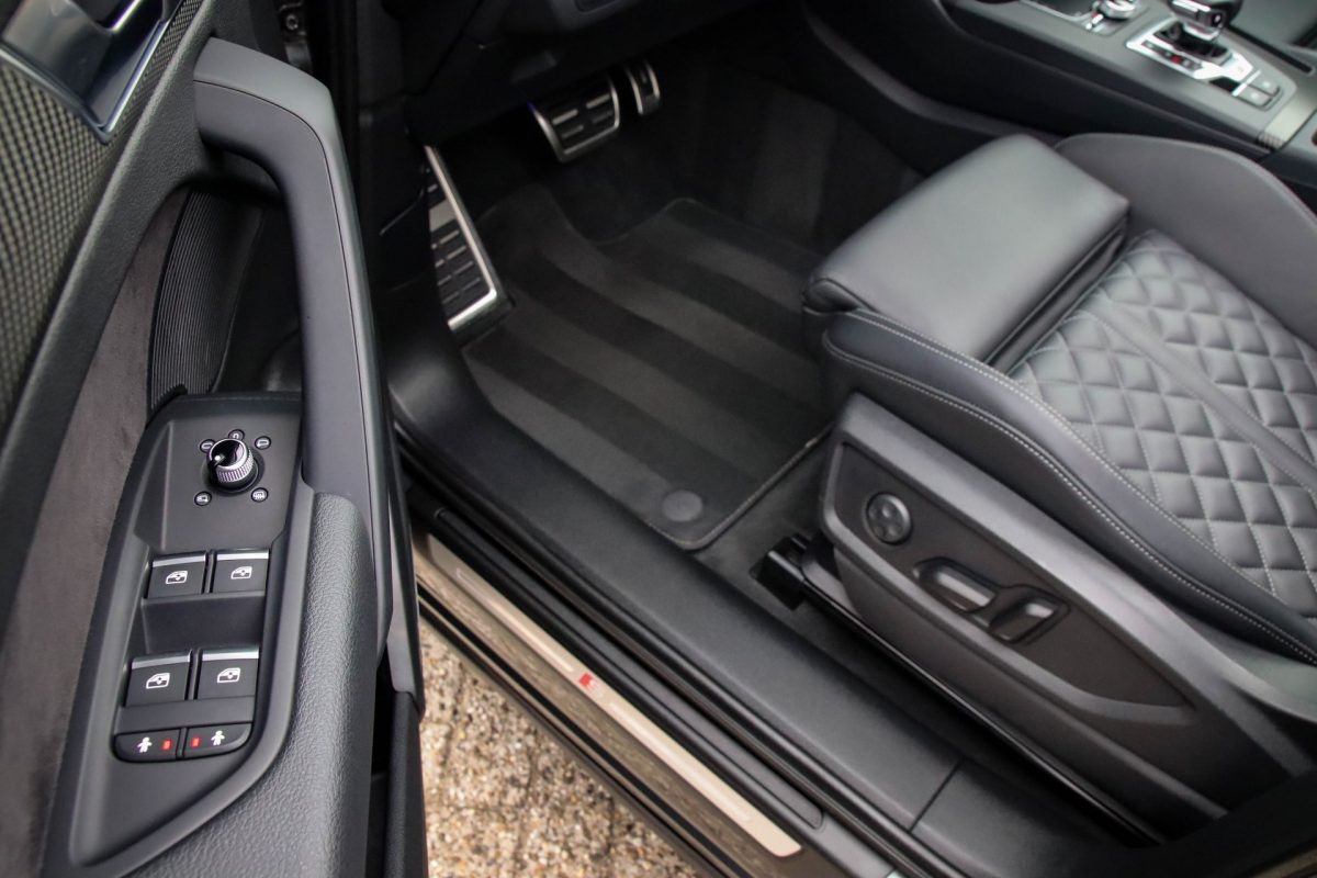 NIEUW MODEL | MODEL 2018! Een werkelijk in uitmuntende staat verkerende Audi SQ5 SUV 3.0 TFSI QUATTRO 260kw/354pk 6-cilinder automaat! Afkomstig van de 1e eigenaar, volledig Audi dealer onderhouden inclusief bijbehorende documentatie. Uiteraard met een transparante en schadevrije historie en een gecontroleerde tellerstand van slechts 51.445 kilometer. Een prachtig sportieve SUV die is voorzien van de krachtige en fantastisch klinkende 3.0 v6 benzine turbomotor die maarliefst 354pk en 500Nm levert. De prestaties liegen er ook niet om, er is slechts 5,4 seconden nodig om vanuit stilstand de 100 km/h te bereiken, waarbij de acceleratie pas stopt bij 250 km/h! Deze SQ5 heeft de juiste uitstraling, mede door zijn geweldige Daytona Grey parellak, het zwart optiekpakket en natuurlijk zijn uiterst royale fabrieksoptielijst. De nieuwprijs van bijna €120.000,- geeft goed aan om welk uitrustingsniveau het gaat. De getoonde 22inch Black Performance velgenset met 4x Hankook Ventus S1 EVO3 SUV zomerbanden is tegen geringe meerprijs van €2595,- te verkrijgen.