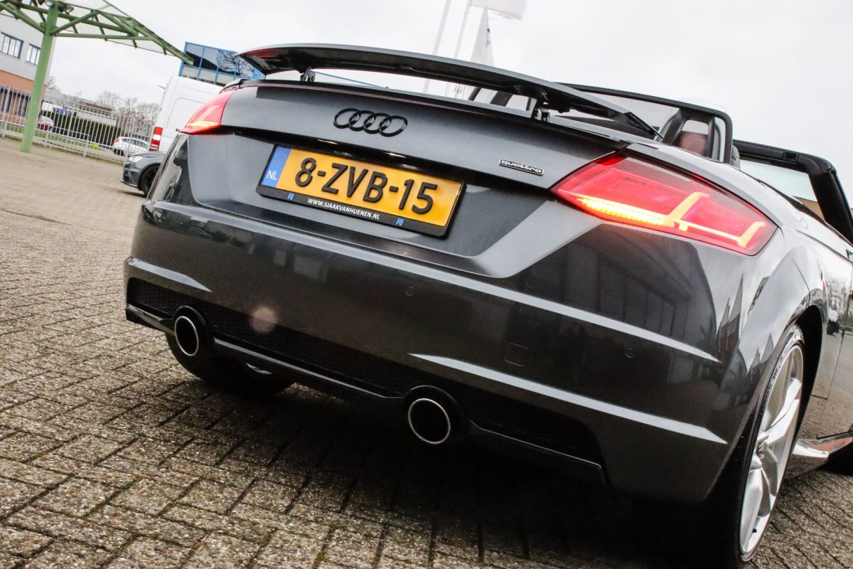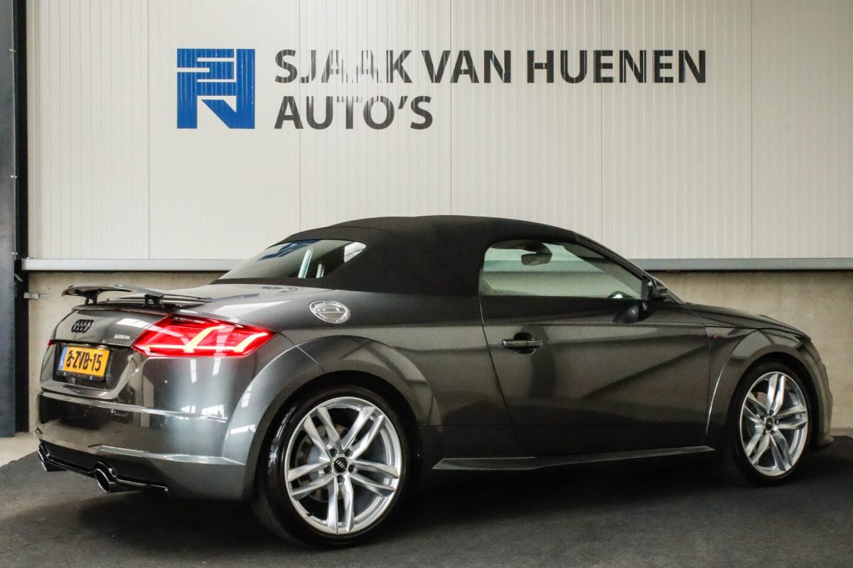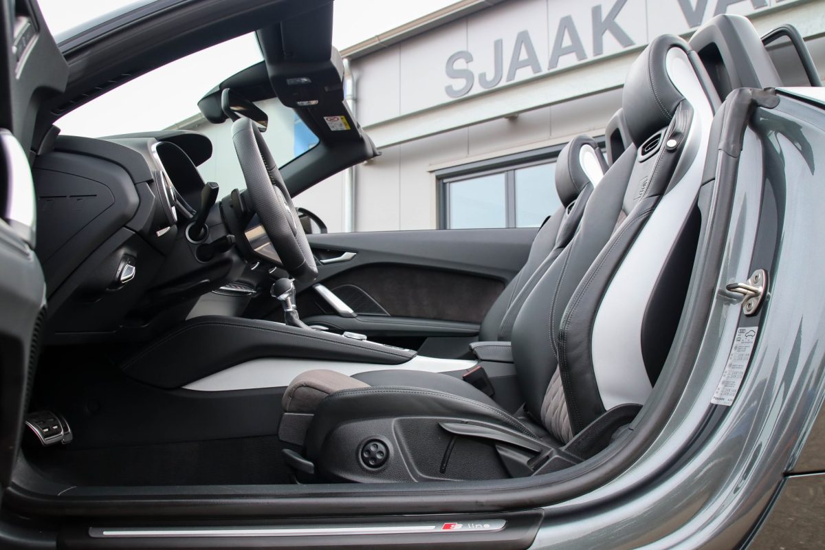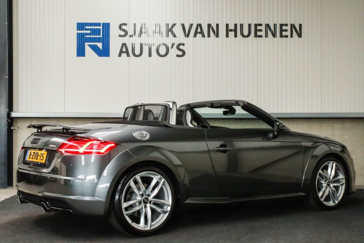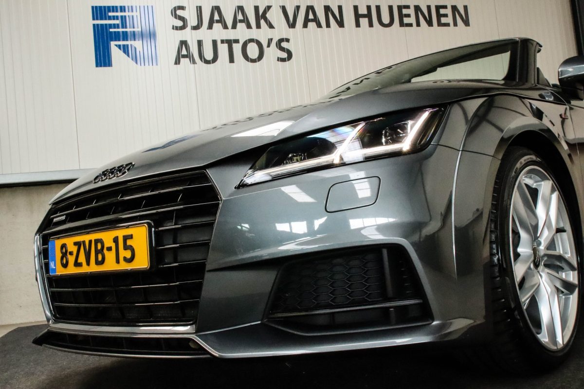 NIEUW MODEL | UNIEK | Een in uitmuntende staat verkerende Audi TT Roadster 2.0TFSI 169kw/230pk S-line S-Tronic automaat QUATTRO! Rechtstreeks afkomstig van 2e particuliere liefhebber en uiteraard volledig onderhouden! Een prachtig sportieve Roadster in de juiste configuratie tot in detail. De 230pk en 370Nm koppel sterke 2.0 liter turbomotor gecombineerd met de S-tronic automaat en de sublieme QUATTRO 4-wielaandrijving zorgen voor geweldige prestaties en bieden de garantie voor ultiem veel rijplezier. Een liefhebbers exemplaar met slechts 57.261 NAP gecontroleerde kilometers in de prachtige kleur Daytona Grey Pearl. De nieuwwaarde van ruim €60.000,- vertegenwoordigd een uiterst compleet uitrustingsniveau.