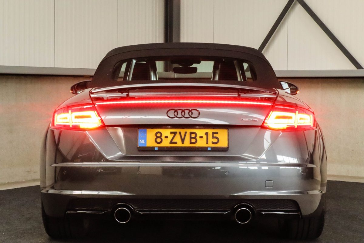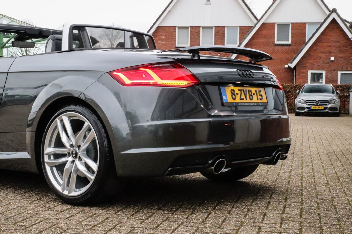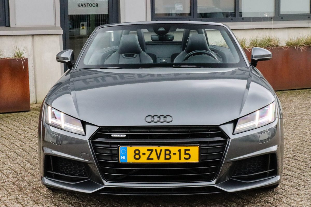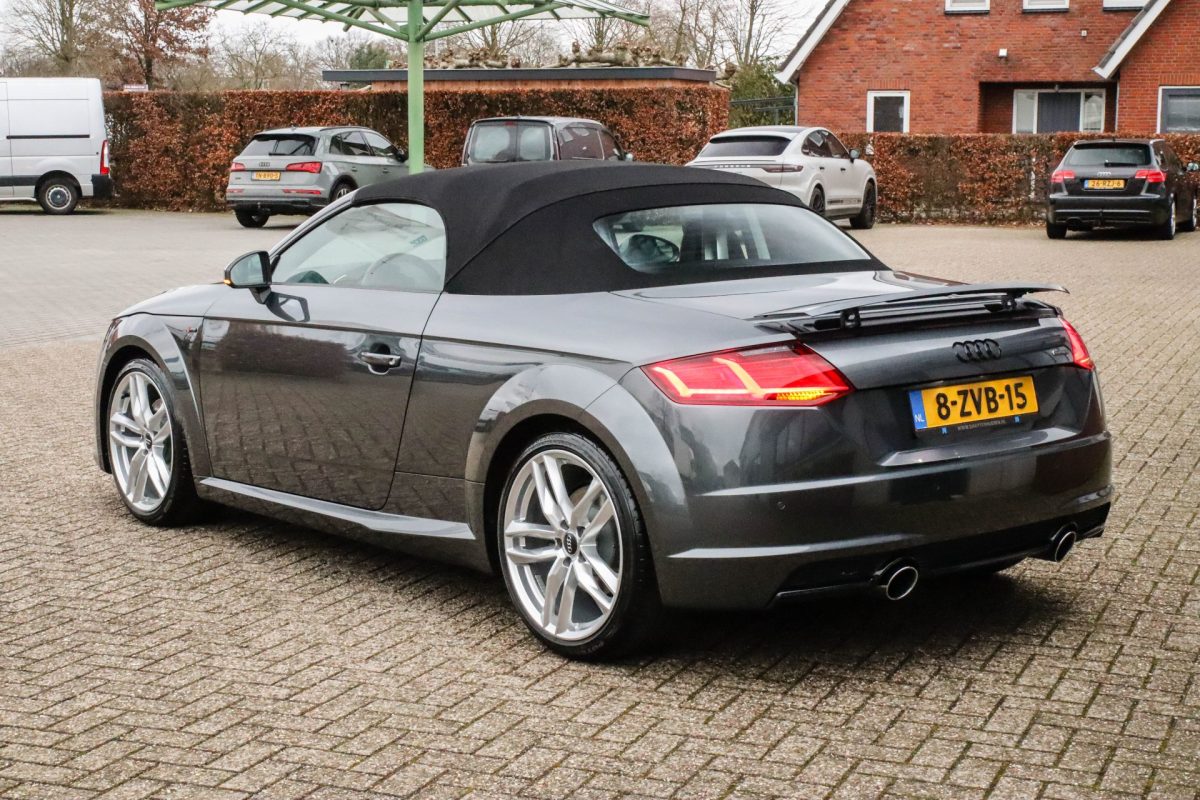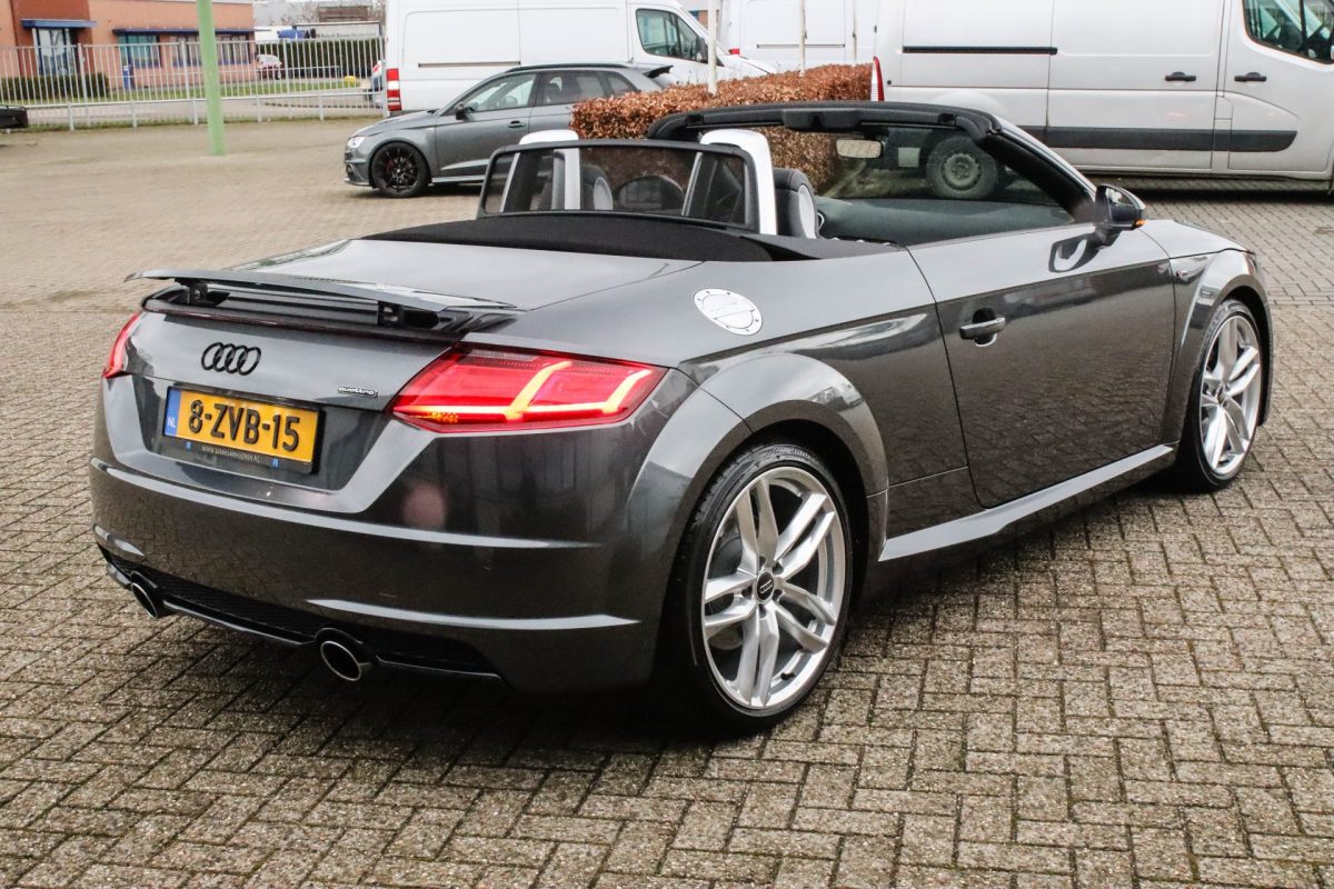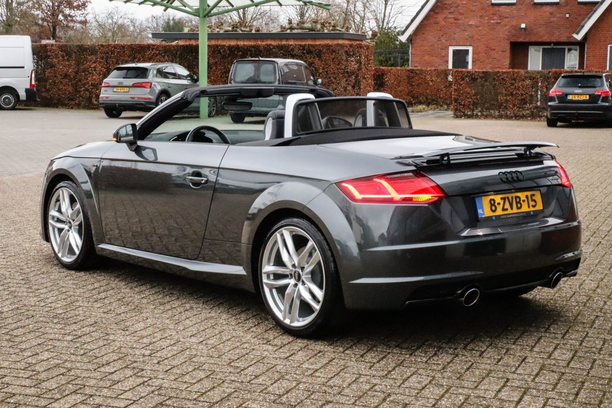 NIEUW MODEL | UNIEK | Een in uitmuntende staat verkerende Audi TT Roadster 2.0TFSI 169kw/230pk S-line S-Tronic automaat QUATTRO! Rechtstreeks afkomstig van 2e particuliere liefhebber en uiteraard volledig onderhouden! Een prachtig sportieve Roadster in de juiste configuratie tot in detail. De 230pk en 370Nm koppel sterke 2.0 liter turbomotor gecombineerd met de S-tronic automaat en de sublieme QUATTRO 4-wielaandrijving zorgen voor geweldige prestaties en bieden de garantie voor ultiem veel rijplezier. Een liefhebbers exemplaar met slechts 57.261 NAP gecontroleerde kilometers in de prachtige kleur Daytona Grey Pearl. De nieuwwaarde van ruim €60.000,- vertegenwoordigd een uiterst compleet uitrustingsniveau.