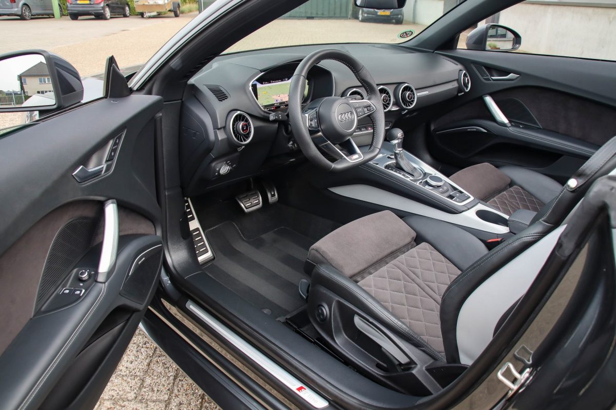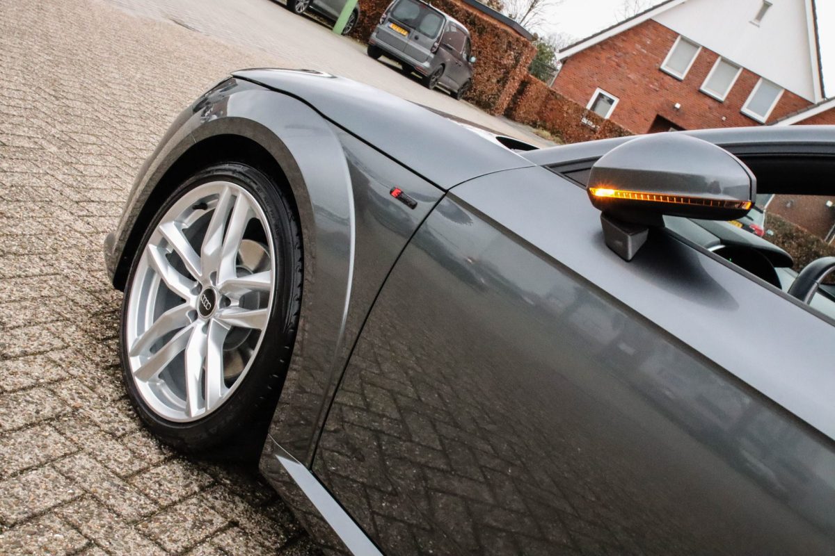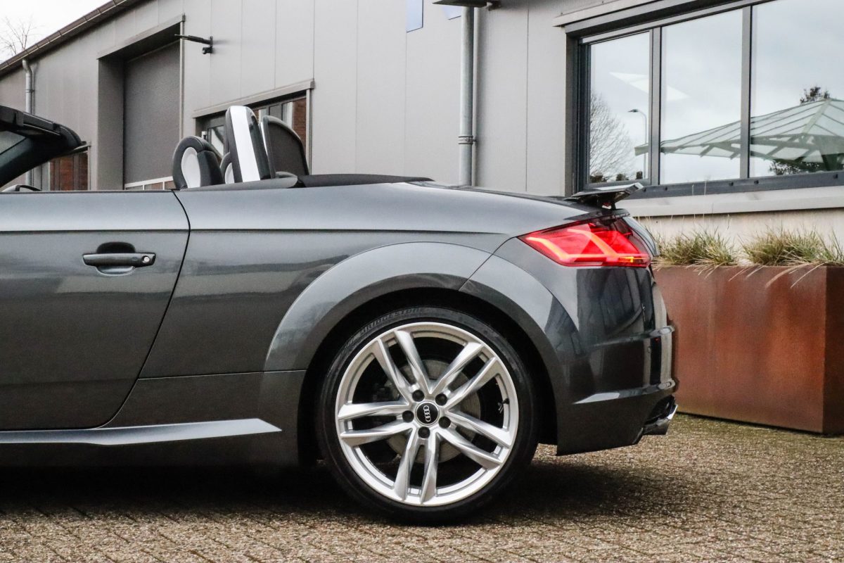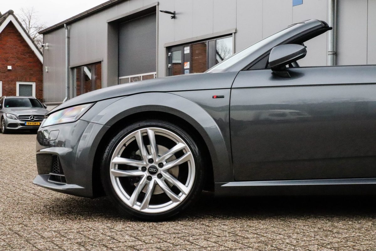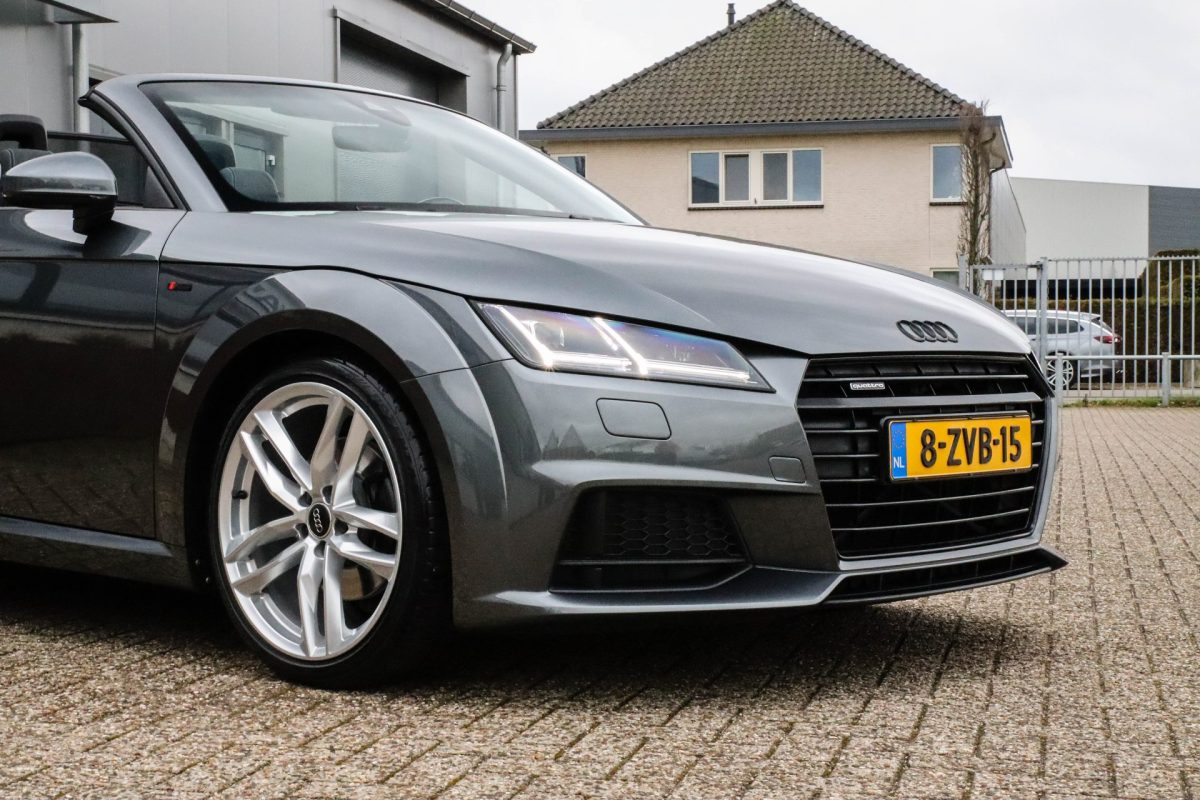 NIEUW MODEL | UNIEK | Een in uitmuntende staat verkerende Audi TT Roadster 2.0TFSI 169kw/230pk S-line S-Tronic automaat QUATTRO! Rechtstreeks afkomstig van 2e particuliere liefhebber en uiteraard volledig onderhouden! Een prachtig sportieve Roadster in de juiste configuratie tot in detail. De 230pk en 370Nm koppel sterke 2.0 liter turbomotor gecombineerd met de S-tronic automaat en de sublieme QUATTRO 4-wielaandrijving zorgen voor geweldige prestaties en bieden de garantie voor ultiem veel rijplezier. Een liefhebbers exemplaar met slechts 57.261 NAP gecontroleerde kilometers in de prachtige kleur Daytona Grey Pearl. De nieuwwaarde van ruim €60.000,- vertegenwoordigd een uiterst compleet uitrustingsniveau.