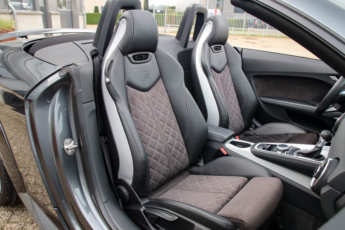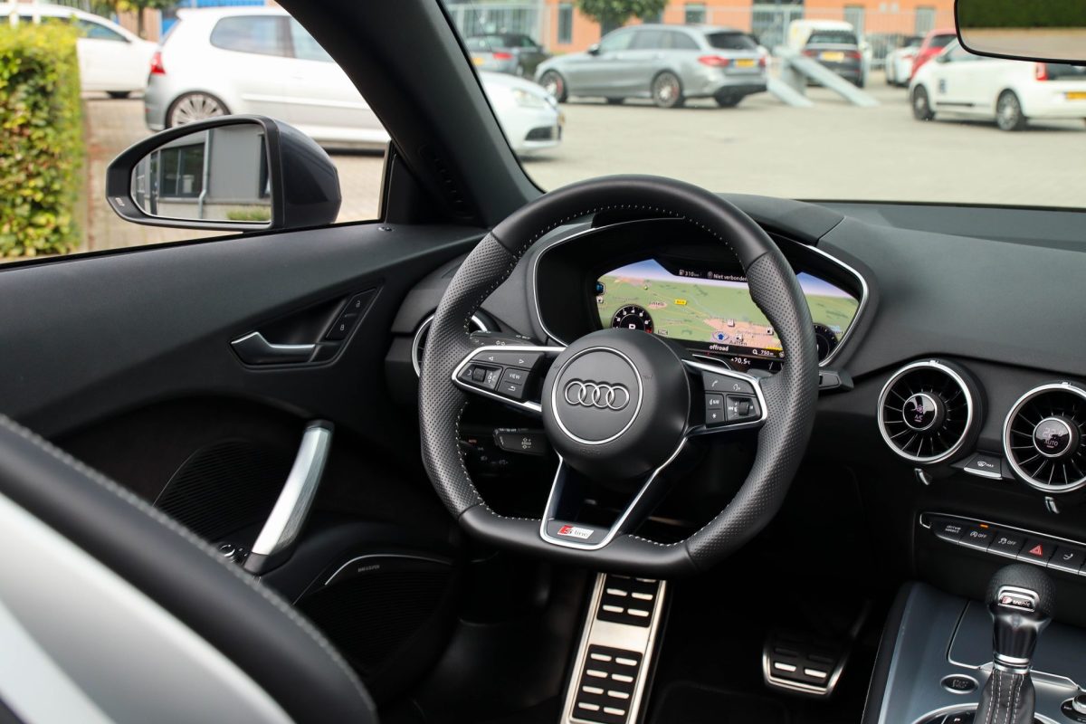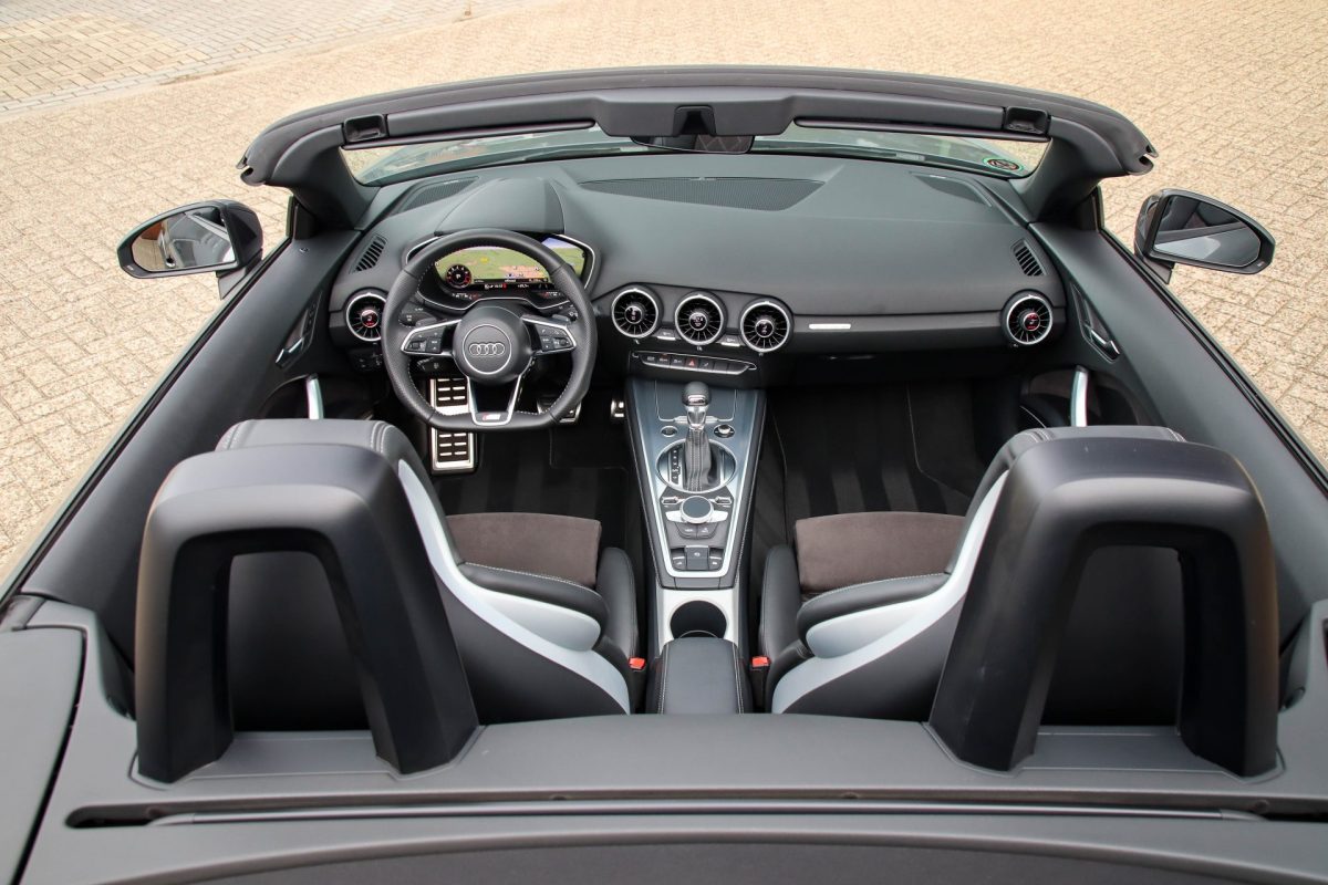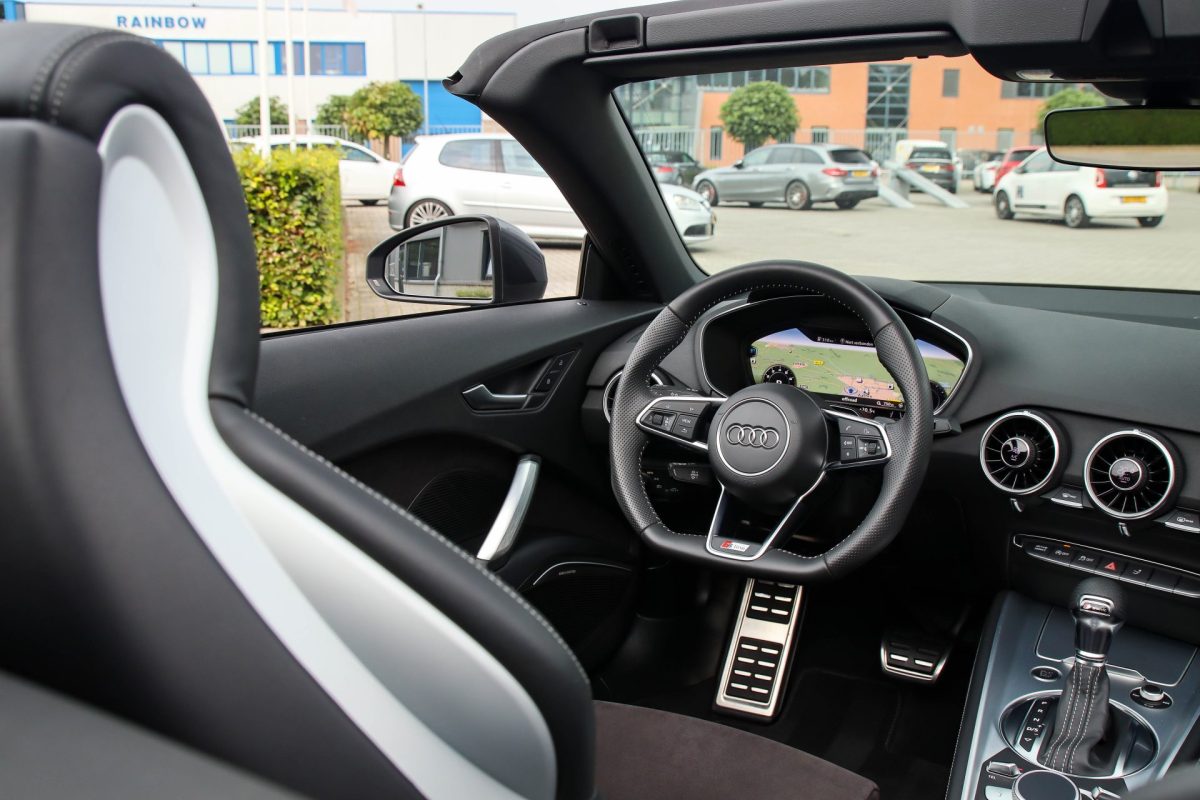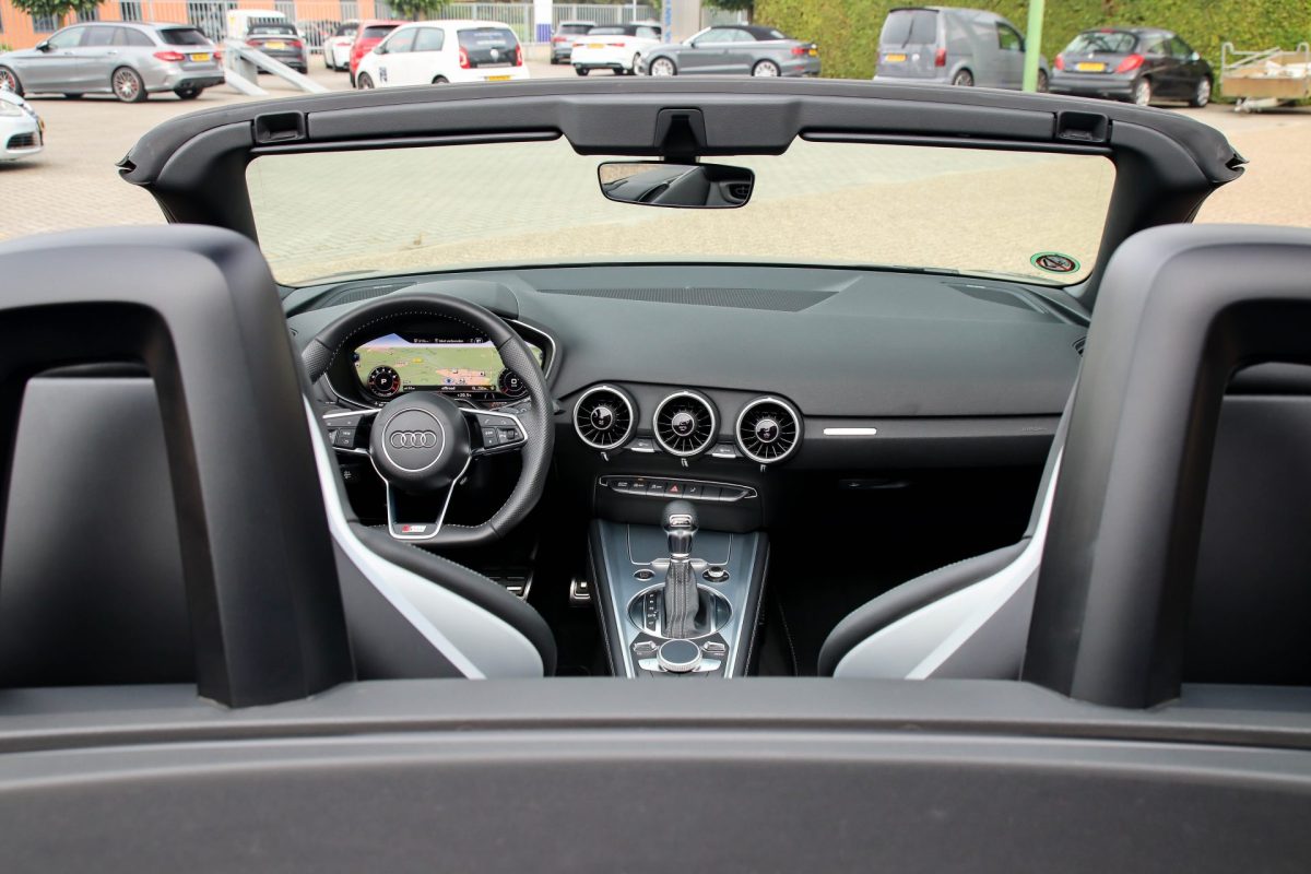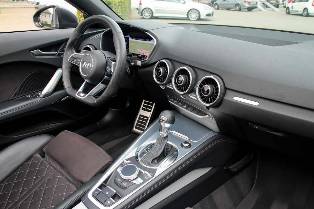 NIEUW MODEL | UNIEK | Een in uitmuntende staat verkerende Audi TT Roadster 2.0TFSI 169kw/230pk S-line S-Tronic automaat QUATTRO! Rechtstreeks afkomstig van 2e particuliere liefhebber en uiteraard volledig onderhouden! Een prachtig sportieve Roadster in de juiste configuratie tot in detail. De 230pk en 370Nm koppel sterke 2.0 liter turbomotor gecombineerd met de S-tronic automaat en de sublieme QUATTRO 4-wielaandrijving zorgen voor geweldige prestaties en bieden de garantie voor ultiem veel rijplezier. Een liefhebbers exemplaar met slechts 57.261 NAP gecontroleerde kilometers in de prachtige kleur Daytona Grey Pearl. De nieuwwaarde van ruim €60.000,- vertegenwoordigd een uiterst compleet uitrustingsniveau.
