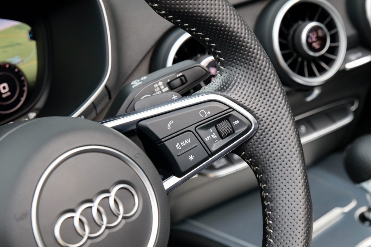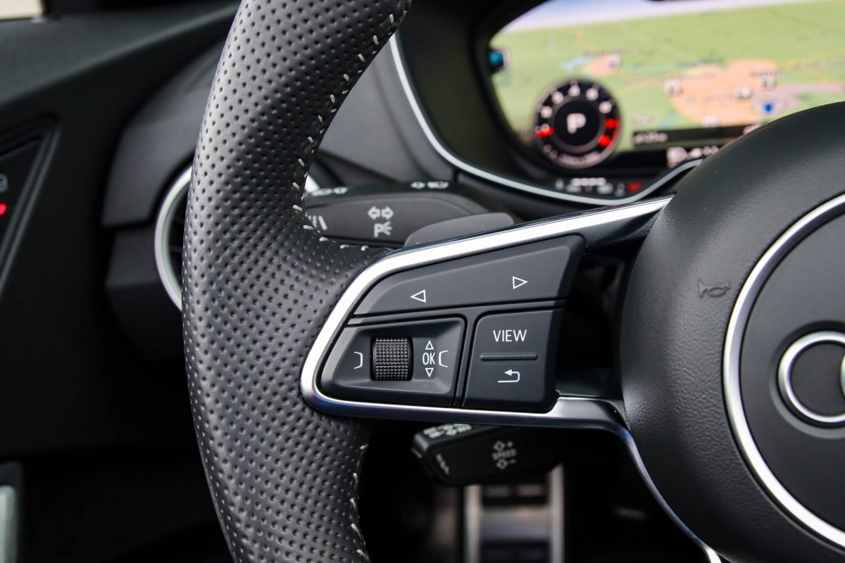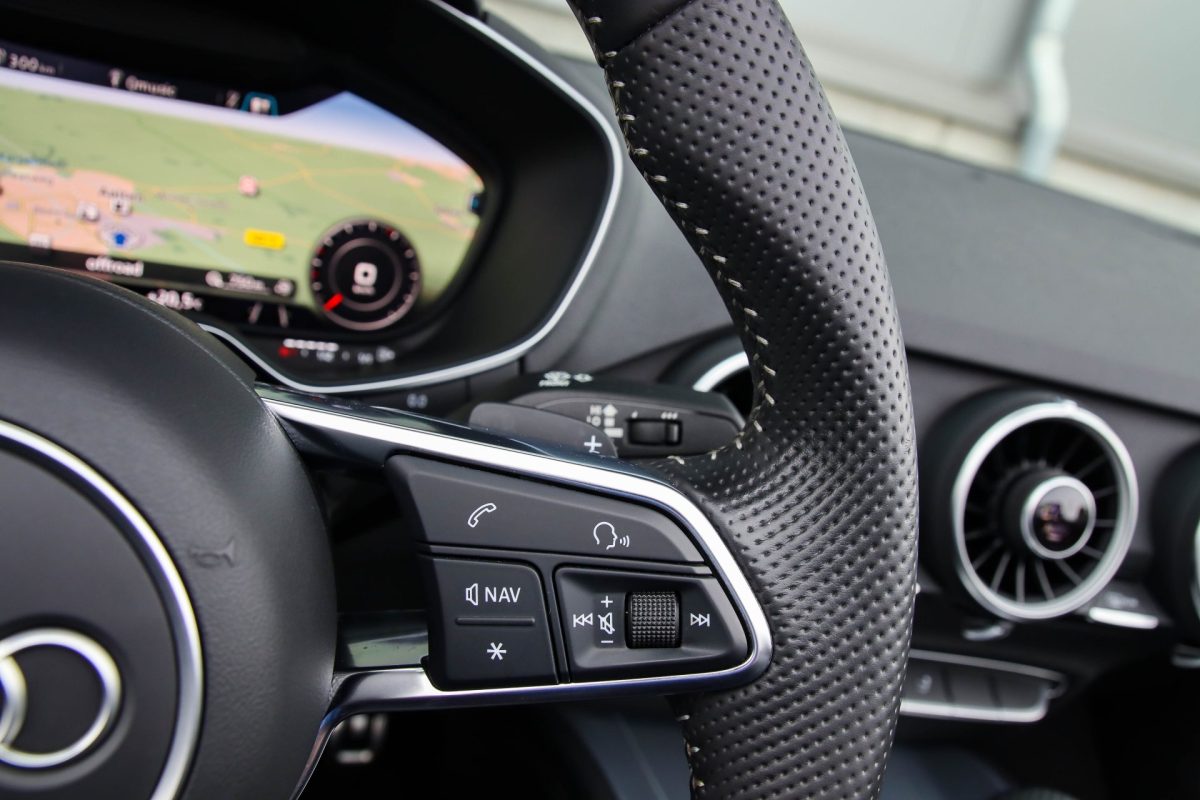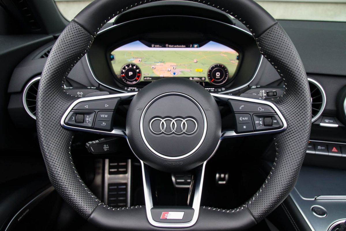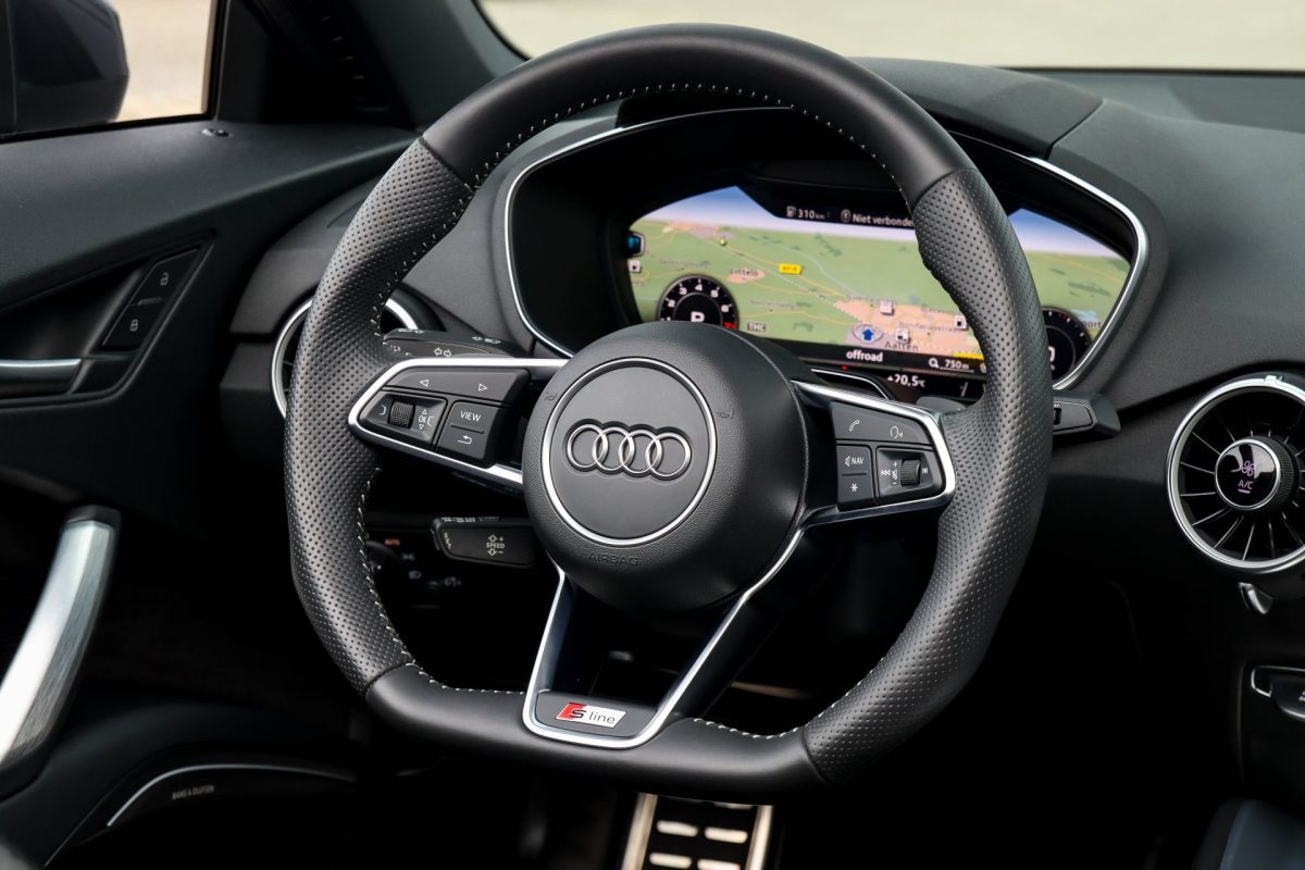 • Geperforeerd lederen afgevlakt 3-spaaks S-line sportstuurwiel multifunctioneel