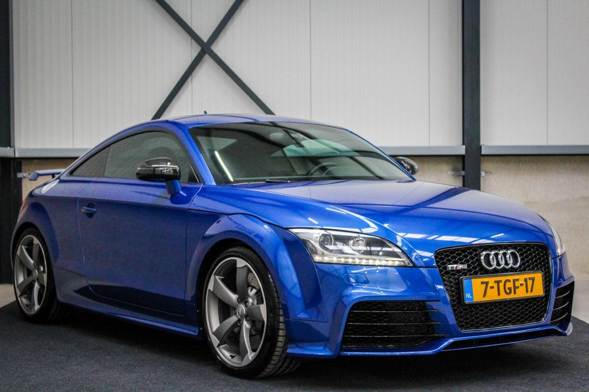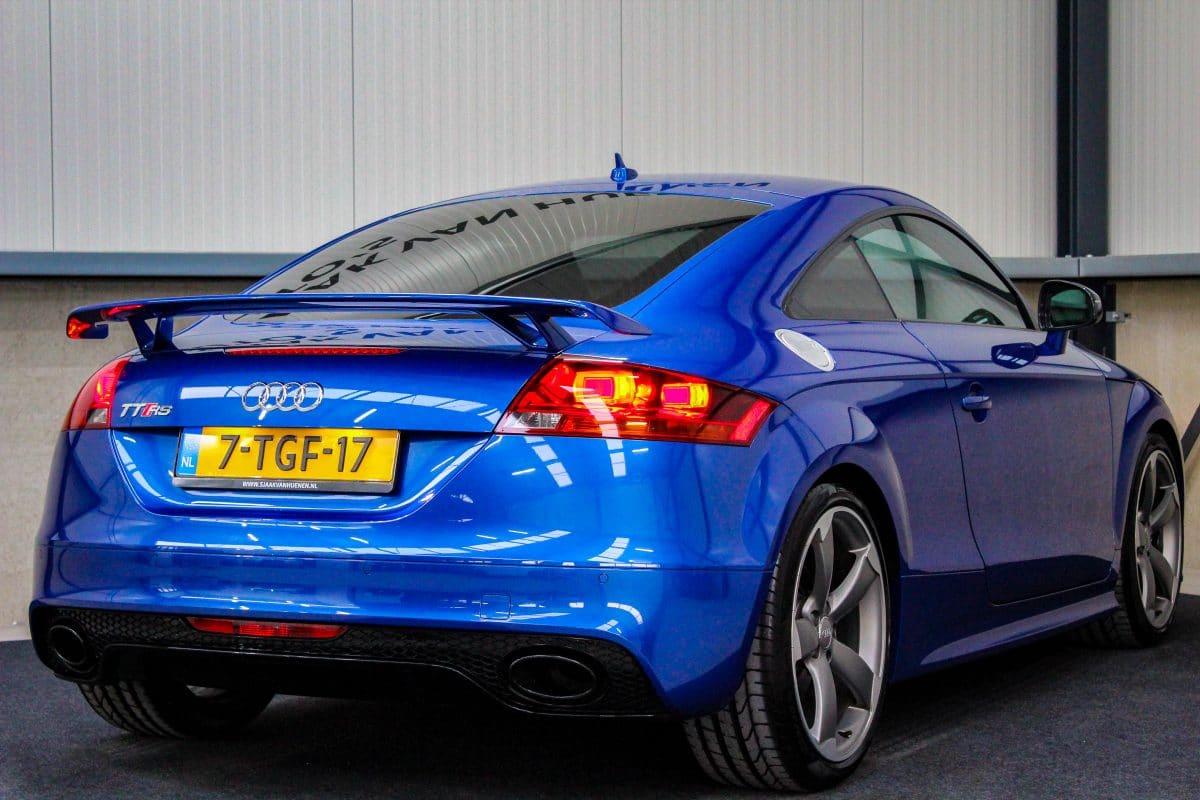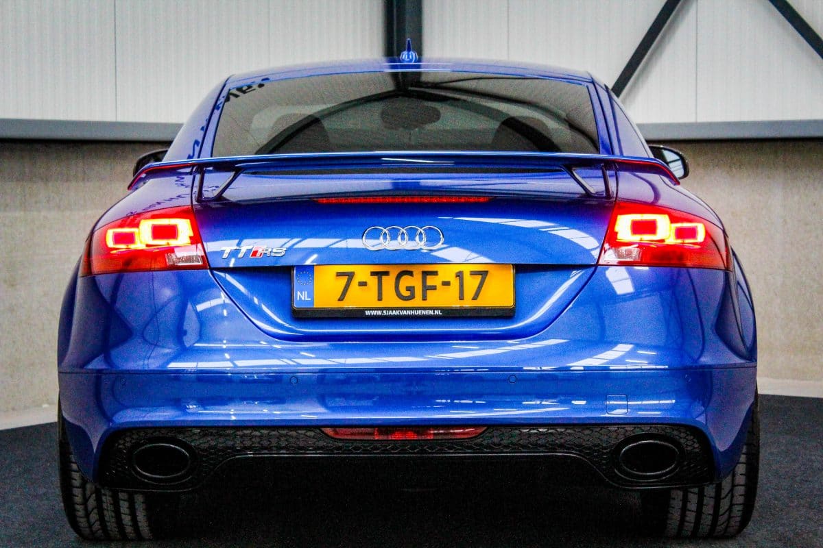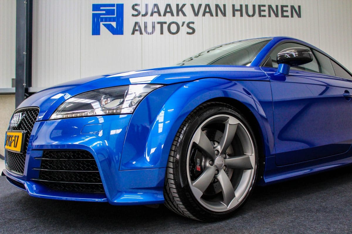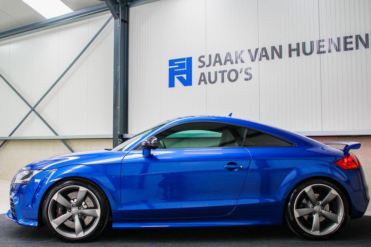 In nieuwstaat verkerende, origineel Nederlands geleverde Audi TT RS Plus 2.5TFSI 265kw/360pk S-Tronic automaat Quattro! Een fantastische sportcoupe in de prachtige Sepang Blauwe parellak, 19inch Rotor TTRS velgen en originele carbon spiegelkappen.