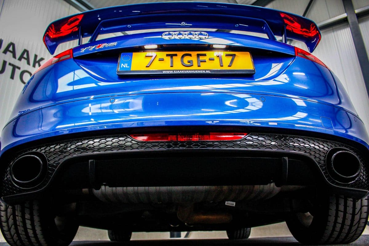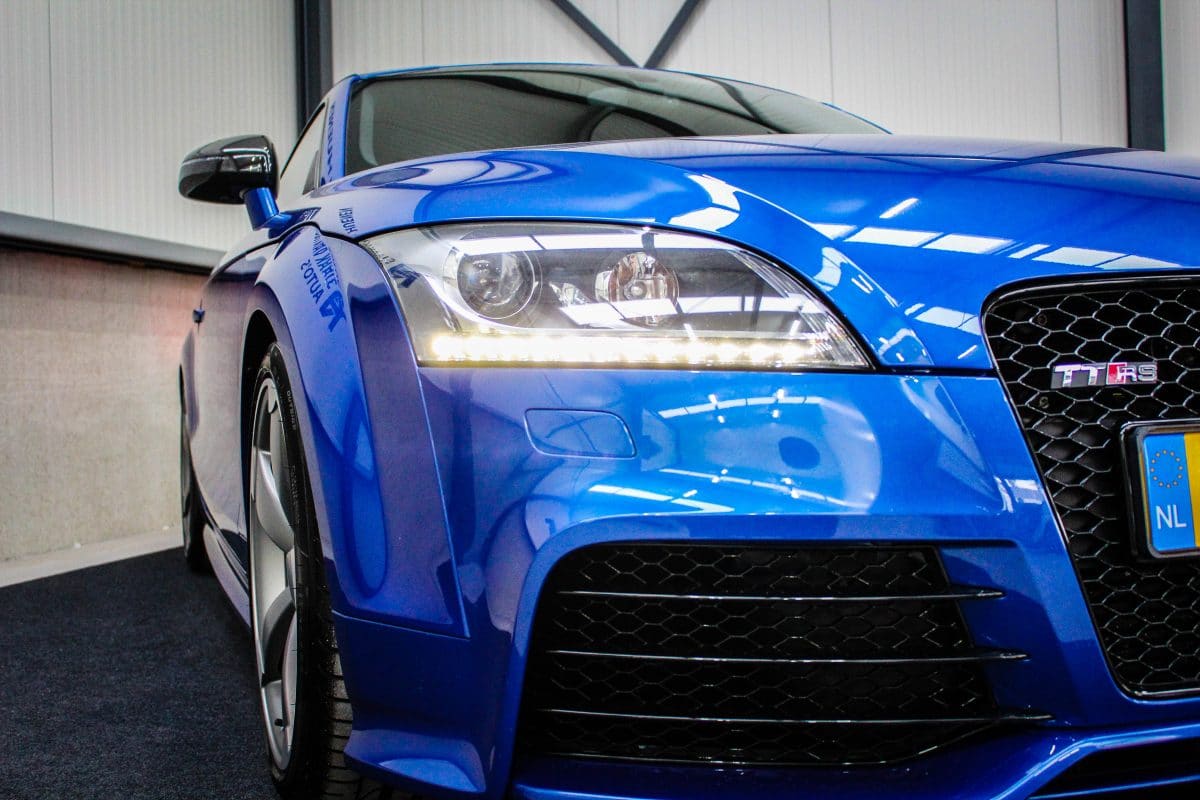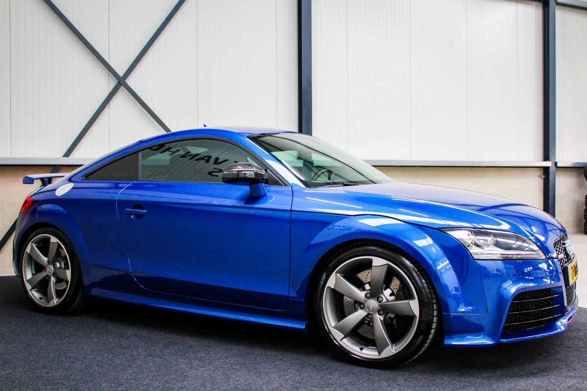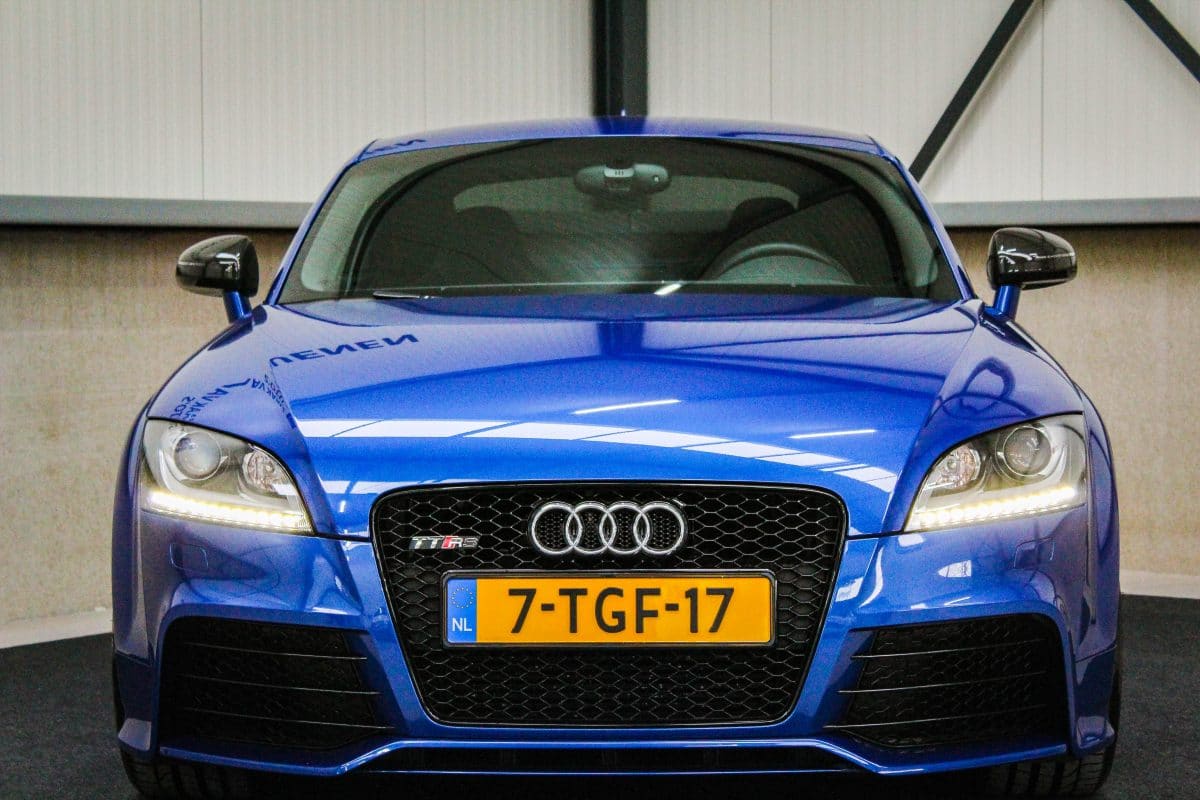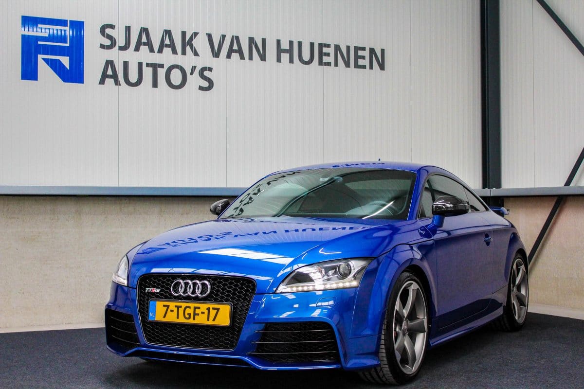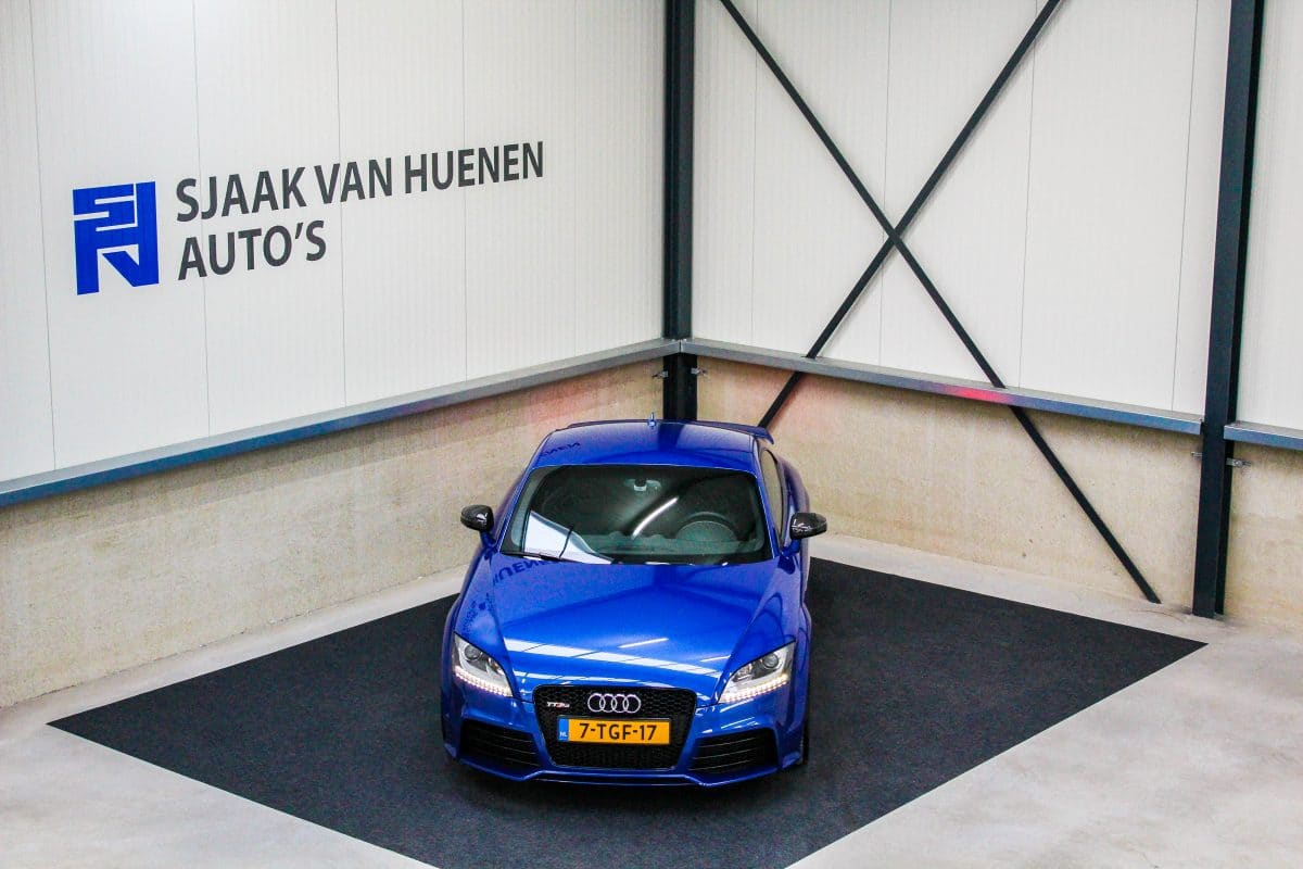 In nieuwstaat verkerende, origineel Nederlands geleverde Audi TT RS Plus 2.5TFSI 265kw/360pk S-Tronic automaat Quattro! Een fantastische sportcoupe in de prachtige Sepang Blauwe parellak, 19inch Rotor TTRS velgen en originele carbon spiegelkappen.