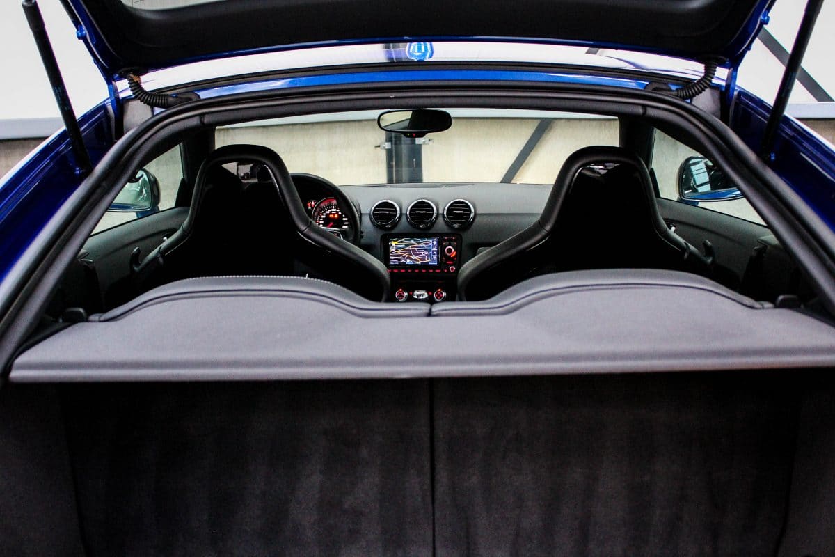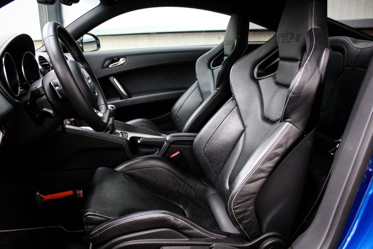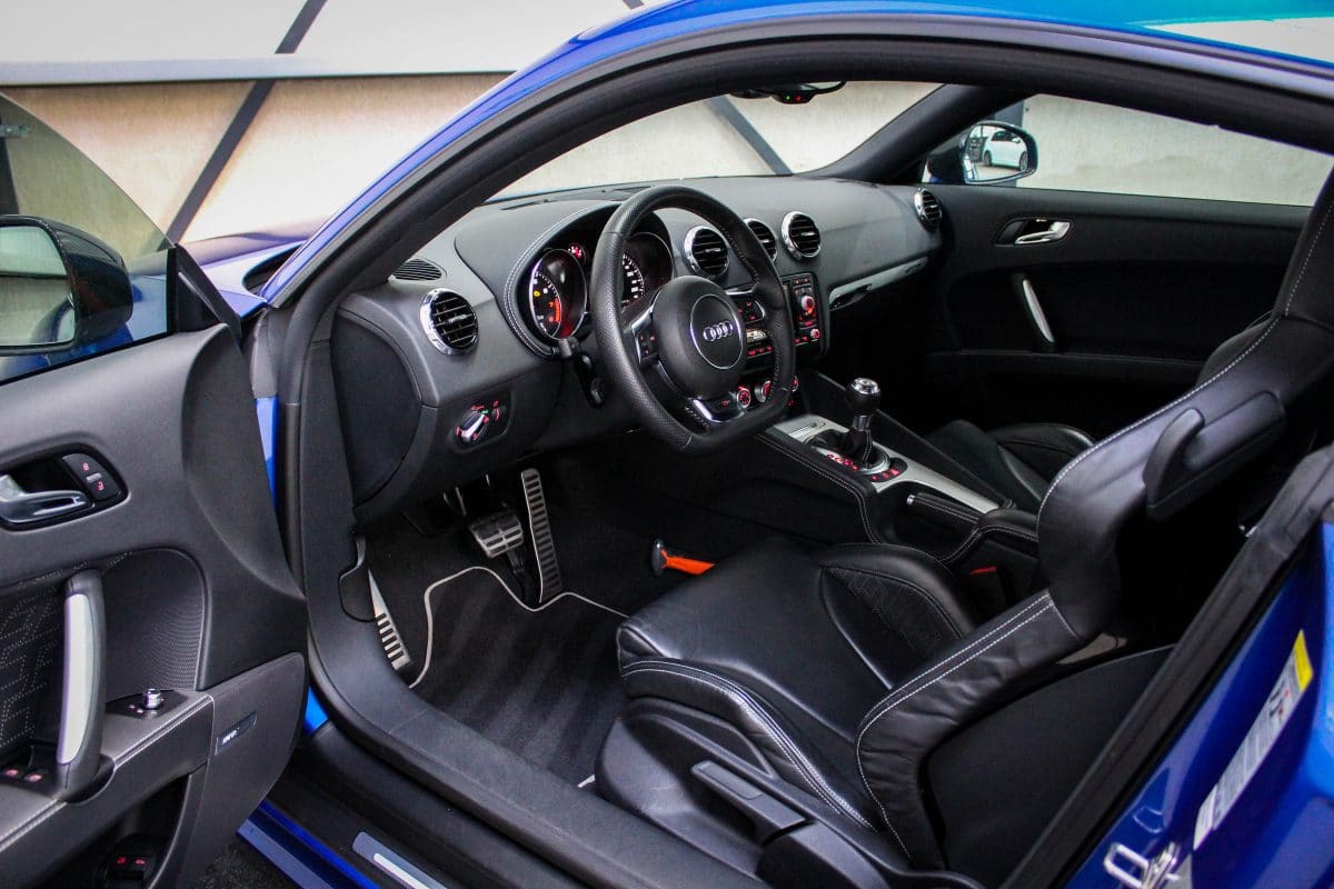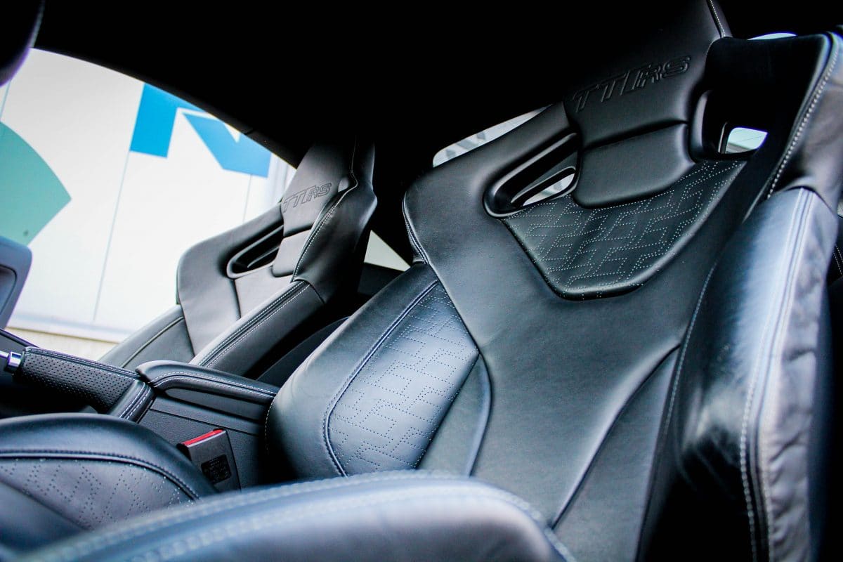 Niet alleen het exterieur is fantastisch, het interieur ademt dezelfde sportiviteit mede door de vollederen zwarte schaalstoelen van Recaro met witte stiksels, het TTRS 3-spaaks geperforeerd lederen sportstuur inclusief de DSG F1 schakelpaddles en het lederen afgestikte dashboard als voorbeeld.