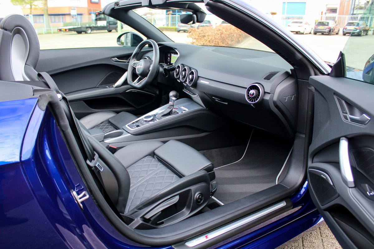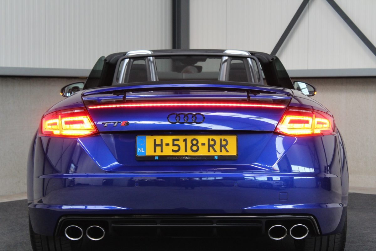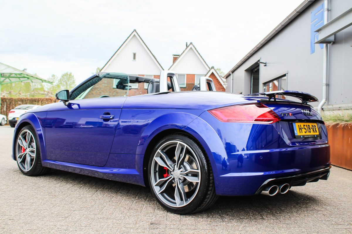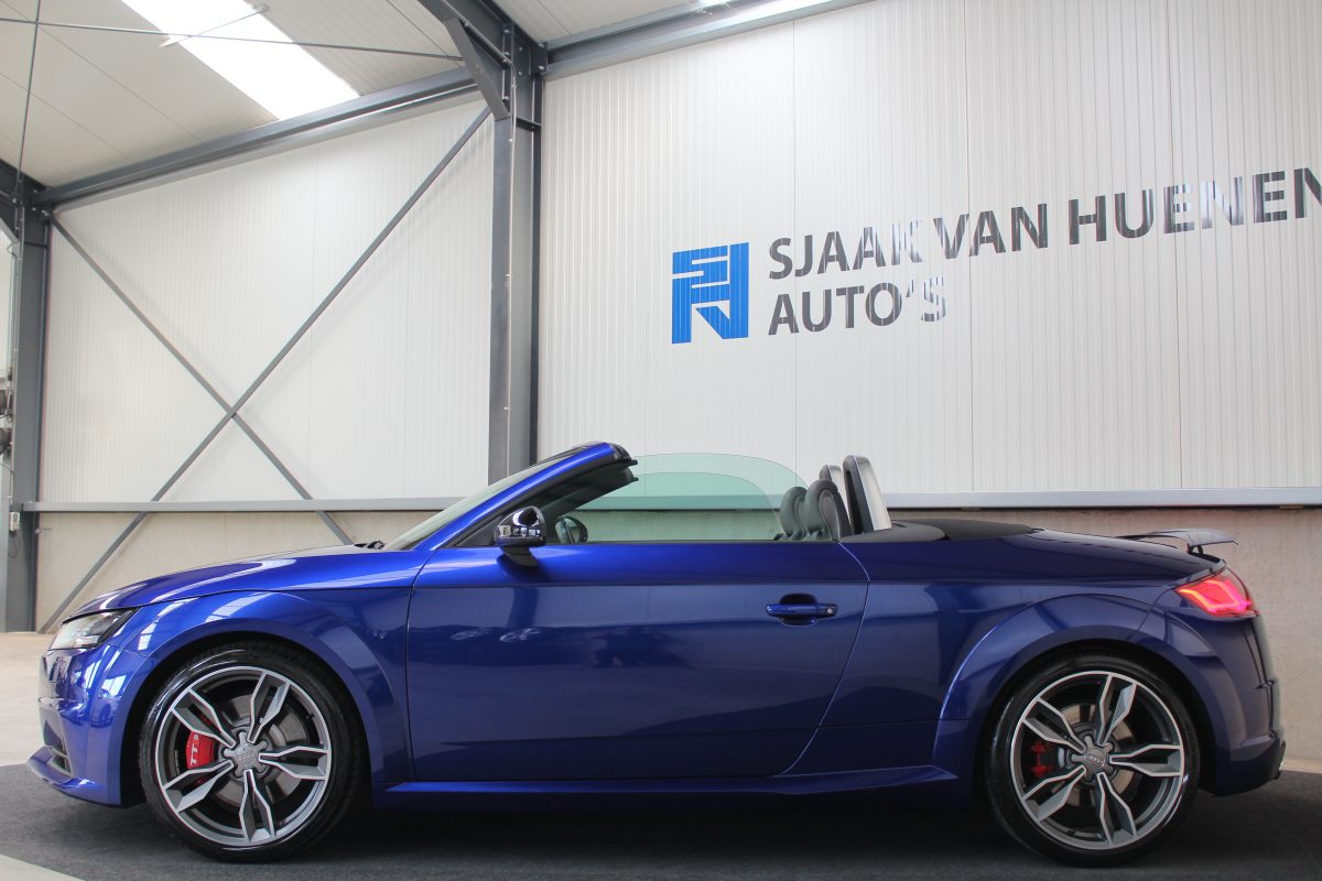 NIEUW MODEL | UNIEK | Deze in nieuwstaat verkerende Audi TTS Roadster 2.0TFSI 228kw/310pk S-Tronic automaat QUATTRO! Rechtstreeks door ons aangekocht van de 1e eigenaar en volledig Audi dealeronderhouden! Een prachtig sportieve Roadster in de juiste configuratie tot in detail. De 310pk en 380Nm koppel sterke 2.0 liter turbomotor gecombineerd met de S-tronic automaat en de sublieme QUATTRO 4-wielaandrijving zorgen voor geweldige prestaties en bieden de garantie voor ultiem veel rijplezier. Een liefhebbers exemplaar met slechts 56.963 gecontroleerde kilometers in de Audi Exclusive kleur San Marino Pearl. De nieuwwaarde van bijna €90.000,- vertegenwoordigd een uiterst compleet uitrustingsniveau. Deze Audi TTS wordt geleverd inclusief Audi dealer garantie tot 5-2021.