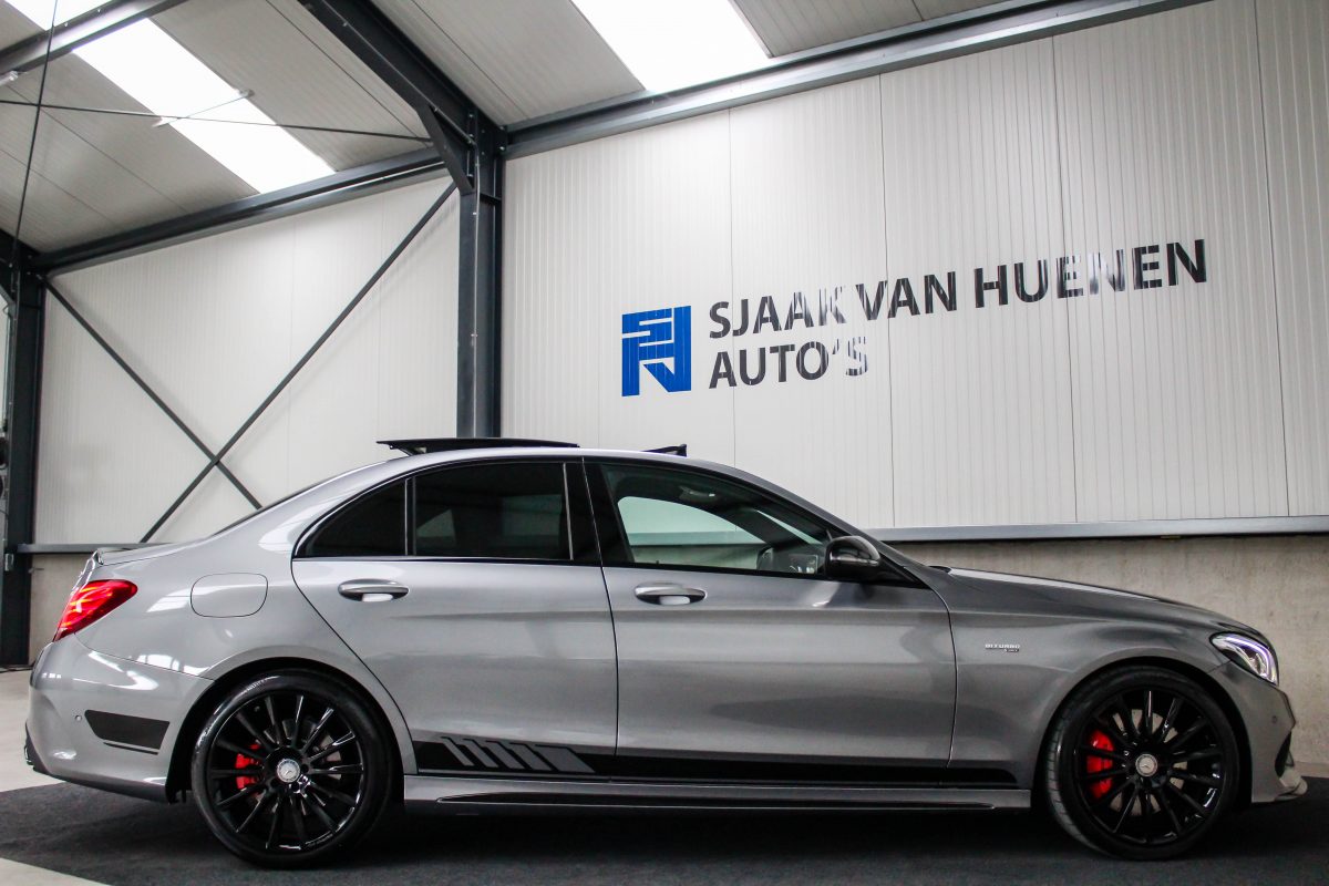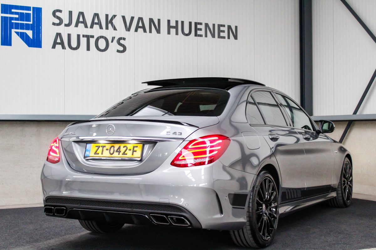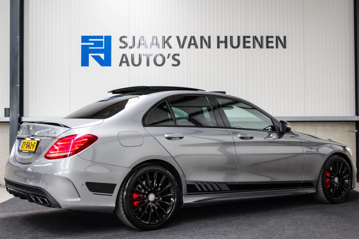 UNIEK! Een uiterst compleet geconfigureerde Mercedes-Benz C43 AMG Limousine Edition One 367pk V6 BITURBO 4MATIC! Afkomstig van de 2e eigenaar en volledig Mercedes-Benz dealer onderhouden. Het rijden met deze 367pk en 520Nm sterke V6 biturbo gekoppeld aan de 7G automatische transmissie is werkelijk een geweldige ervaring. Palladium grijs metallic gecombineerd met de hoogglans zwarte accenten, de Edition 1 striping en rode remklauwen geven aan met wat voor een auto we te maken hebben. Deze Mercedes-Benz C43 AMG is rechtstreeks bij de Duitse Mercedes-Benz dealer aangekocht en wordt geleverd met Mercedes-Benz Junge Sterne garantie tot 12-08-2020.