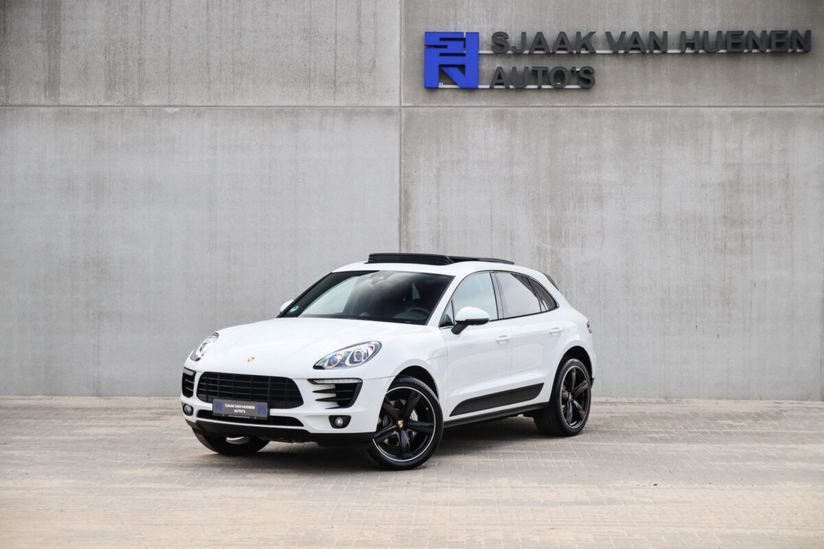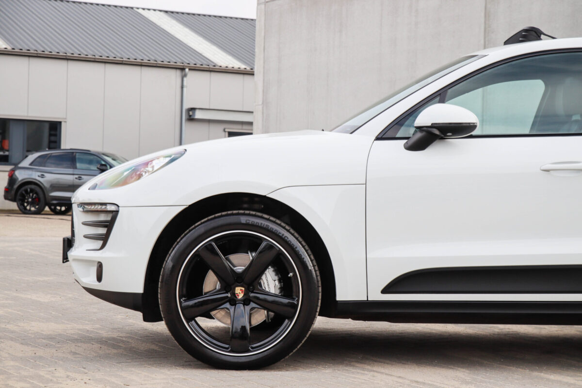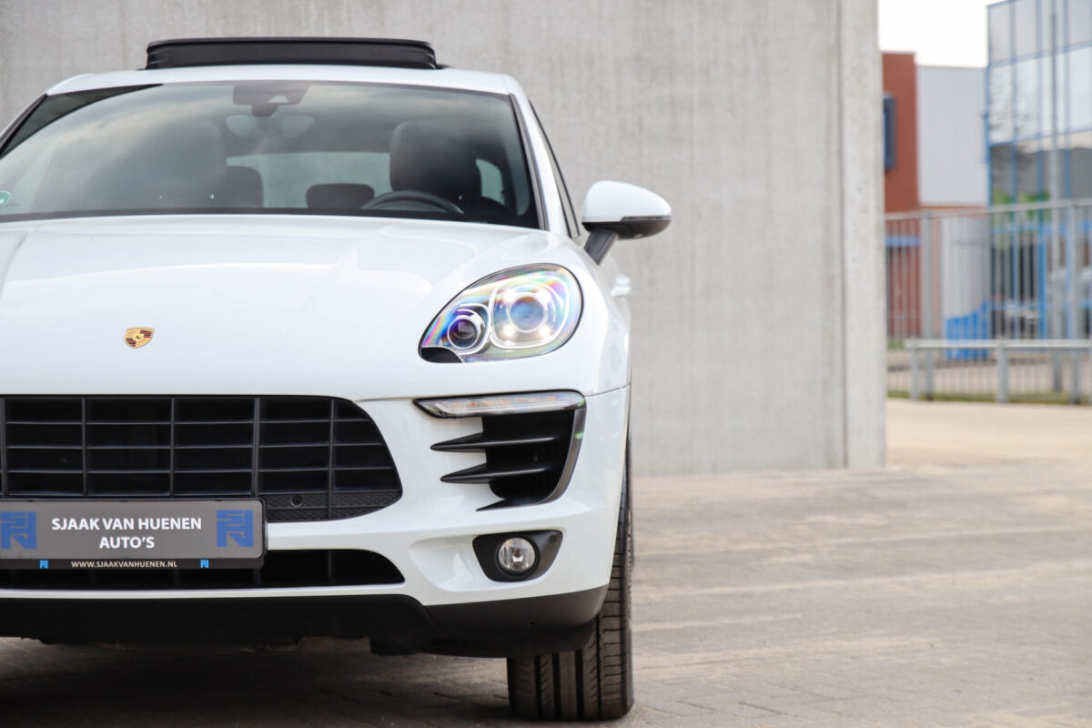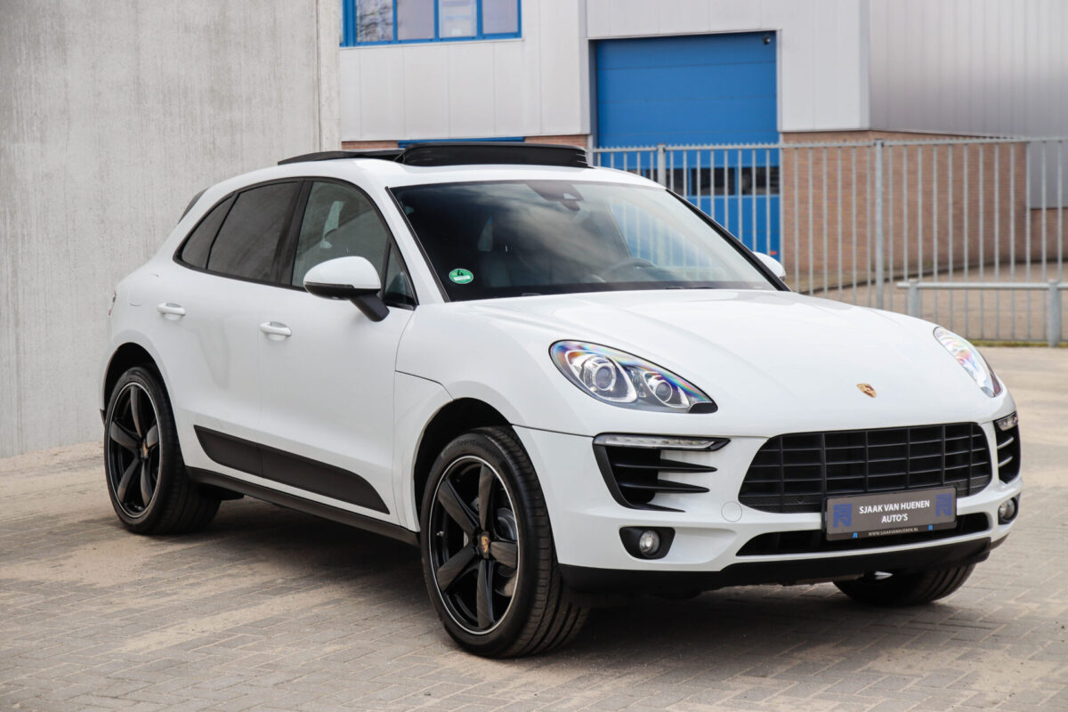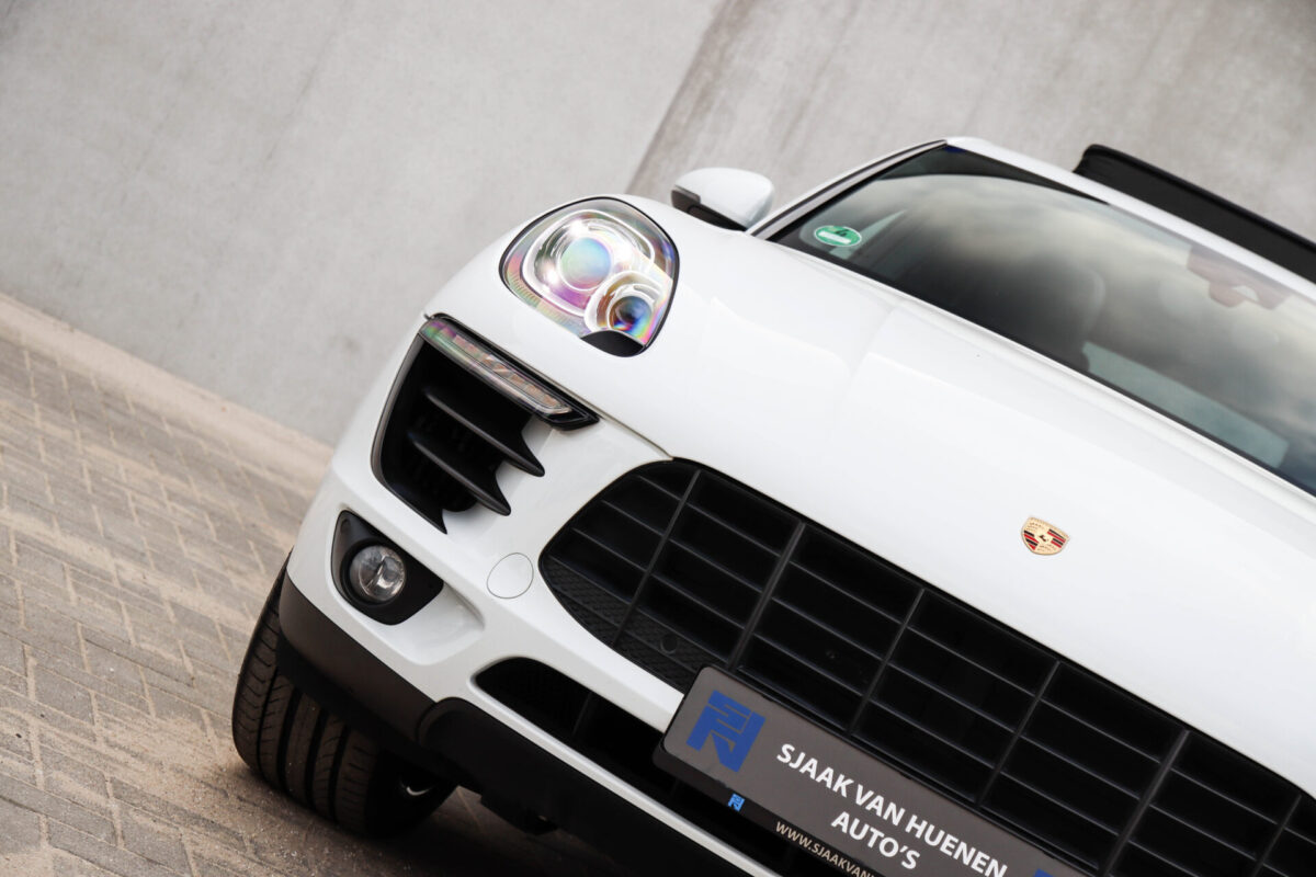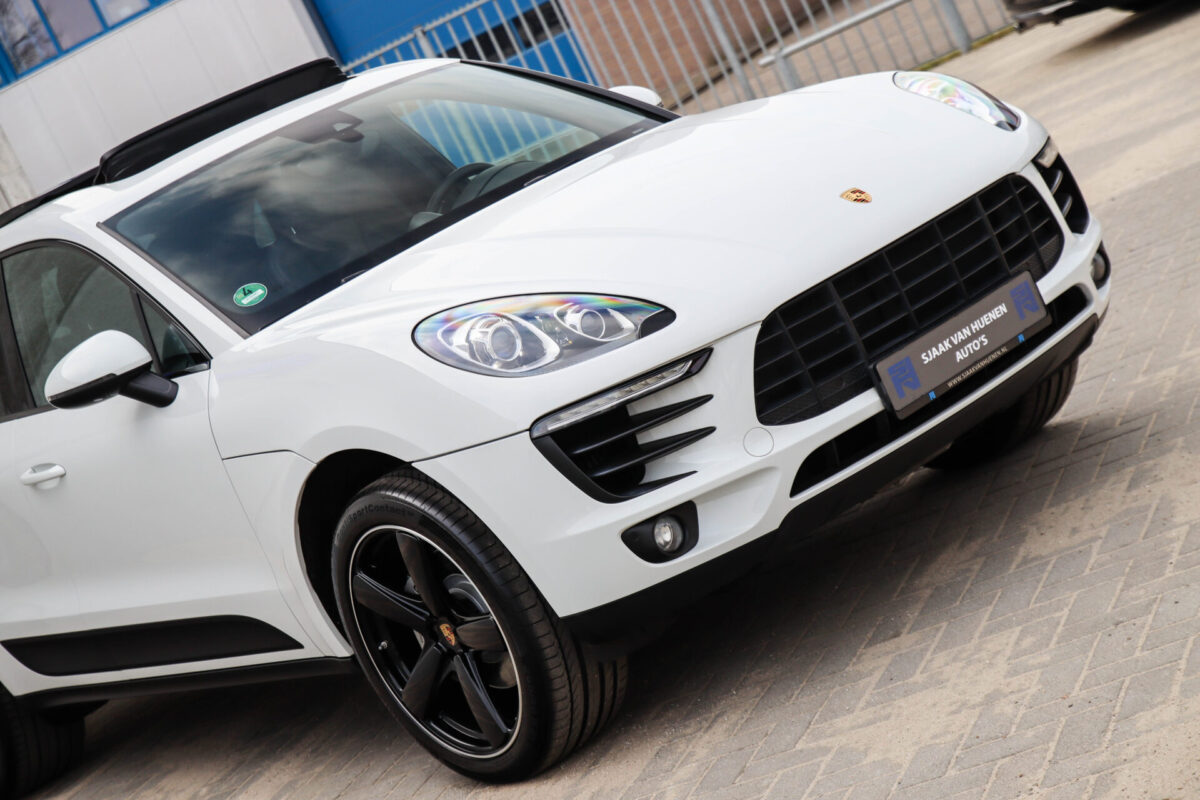 Een werkelijk in sublieme staat verkerende en perfect geconfigureerde PORSCHE Macan 3.0 S 340pk/460Nm V6 PDK! Het betreft een origineel PORSCHE geleverde, dealer- & door ons onderhouden exemplaar welke afkomstig is van de 3e eigenaar. Slechts 76.639 logisch gecontroleerde kilometers. De Pure White lak in combinatie met de zwarte exterieurdetails, het Panoramisch glazen schuif-/kanteldak, het Sport Chrono pakket en meest luxe 18-voudig Adaptieve zwart geperforeerd lederen sportstoelen geven deze Macan de juiste sportieve uitstraling. De getoonde onbeschadigde 21inch Sport Classic hoogglans zwarte replica velgenset met 4x Continental zomerbanden is tegen geringe meerprijs van €1995,- te verkrijgen.