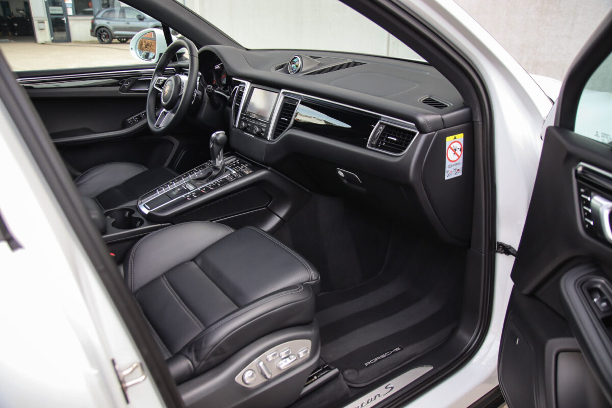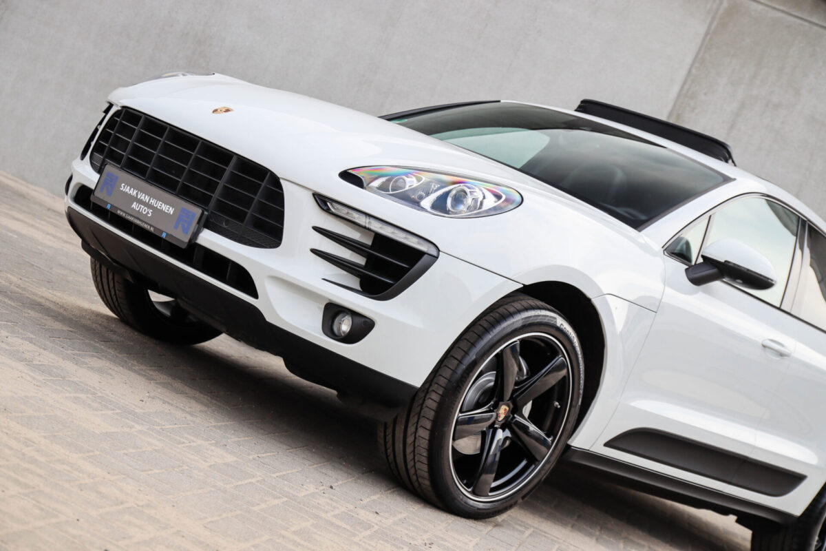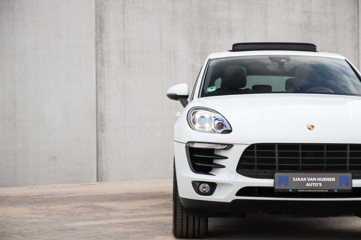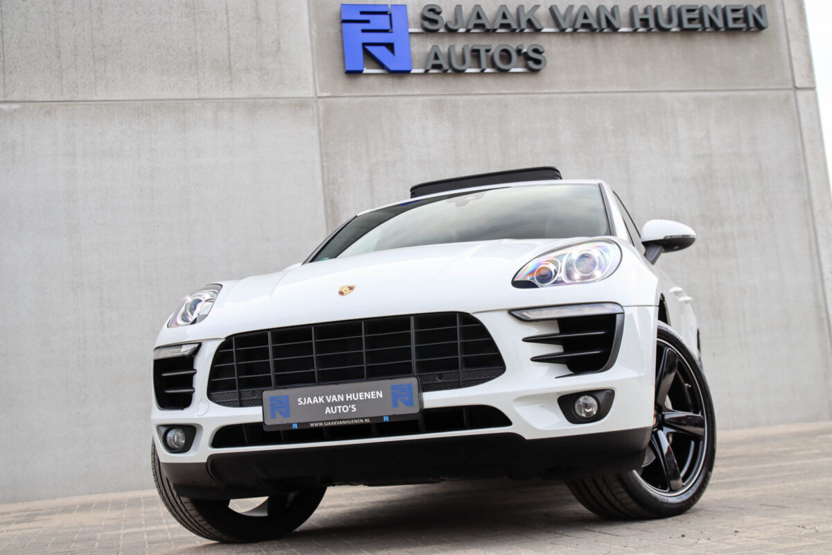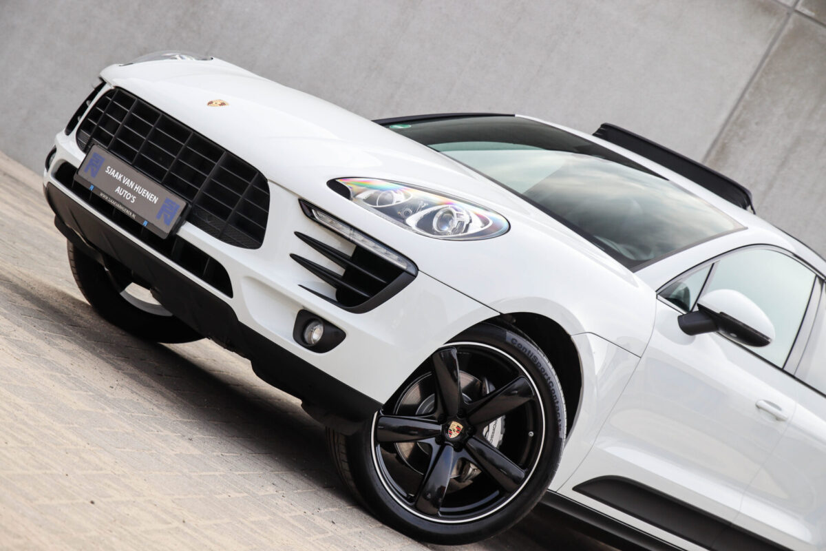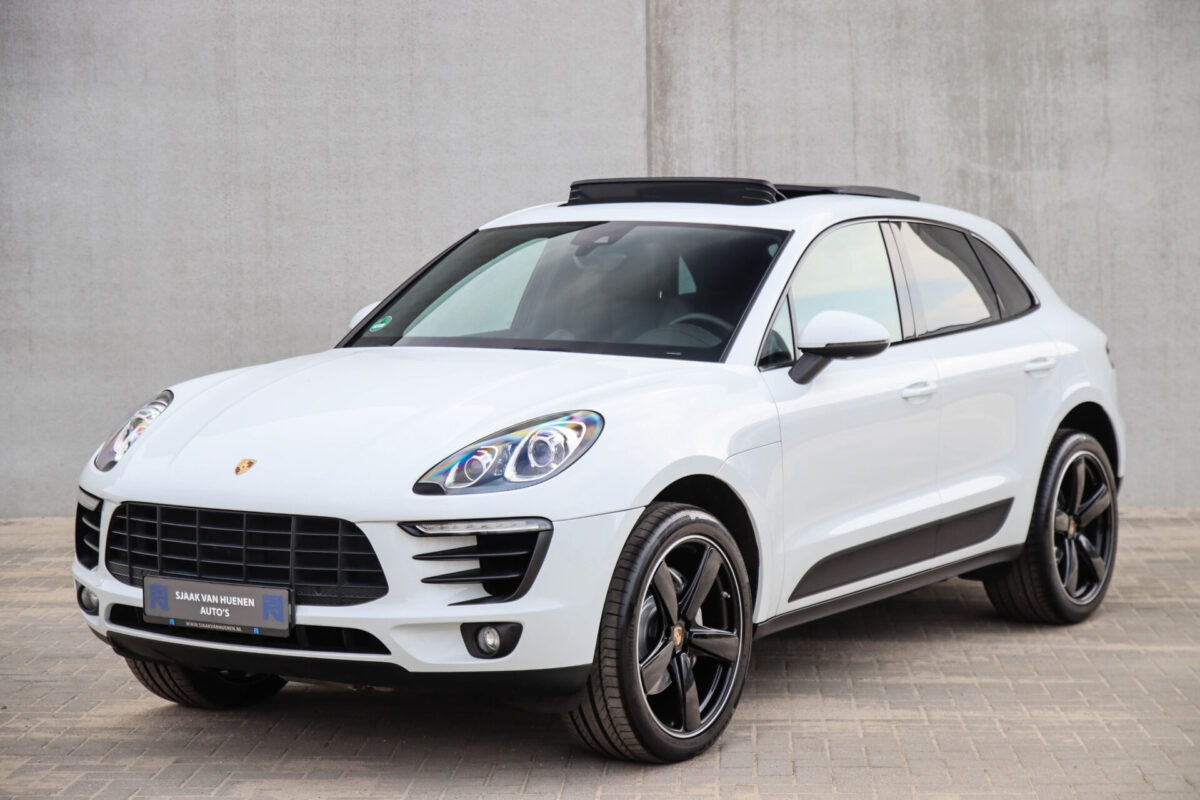 Een werkelijk in sublieme staat verkerende en perfect geconfigureerde PORSCHE Macan 3.0 S 340pk/460Nm V6 PDK! Het betreft een origineel PORSCHE geleverde, dealer- & door ons onderhouden exemplaar welke afkomstig is van de 3e eigenaar. Slechts 76.639 logisch gecontroleerde kilometers. De Pure White lak in combinatie met de zwarte exterieurdetails, het Panoramisch glazen schuif-/kanteldak, het Sport Chrono pakket en meest luxe 18-voudig Adaptieve zwart geperforeerd lederen sportstoelen geven deze Macan de juiste sportieve uitstraling. De getoonde onbeschadigde 21inch Sport Classic hoogglans zwarte replica velgenset met 4x Continental zomerbanden is tegen geringe meerprijs van €1995,- te verkrijgen.