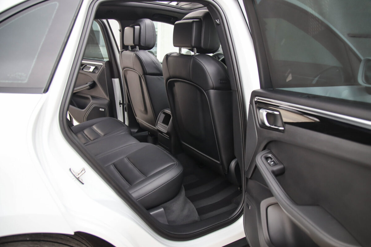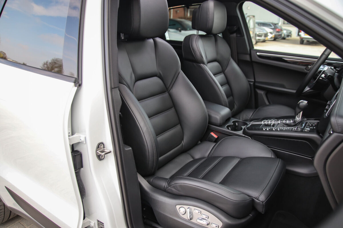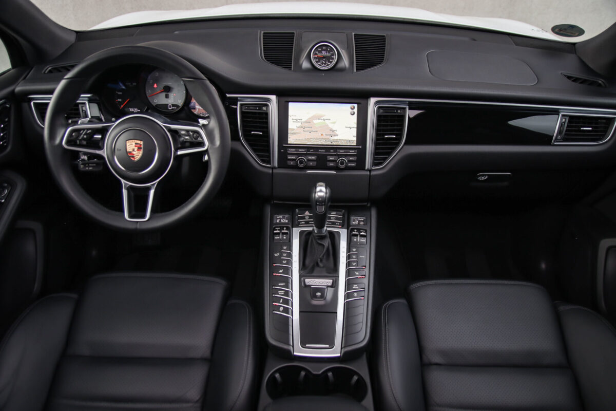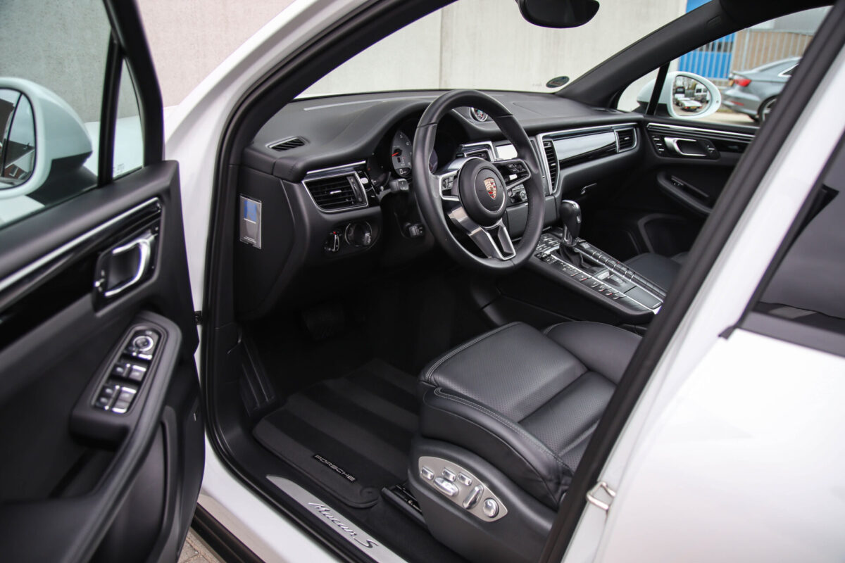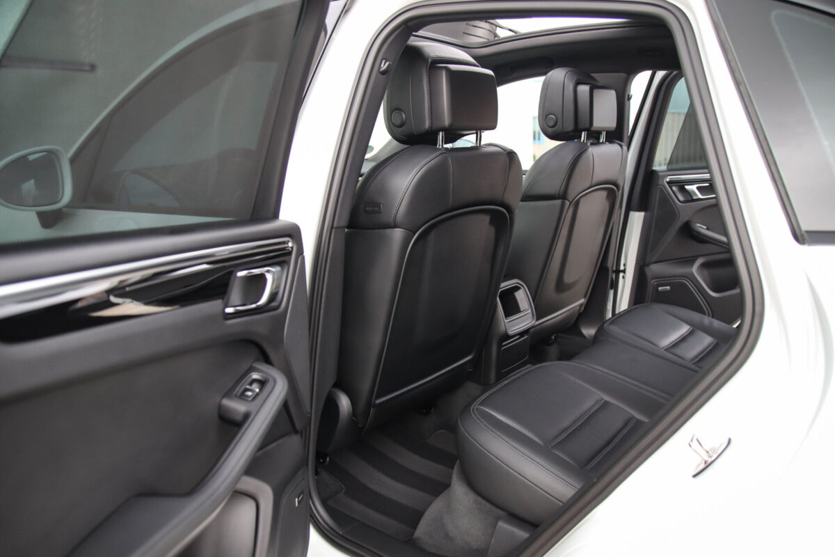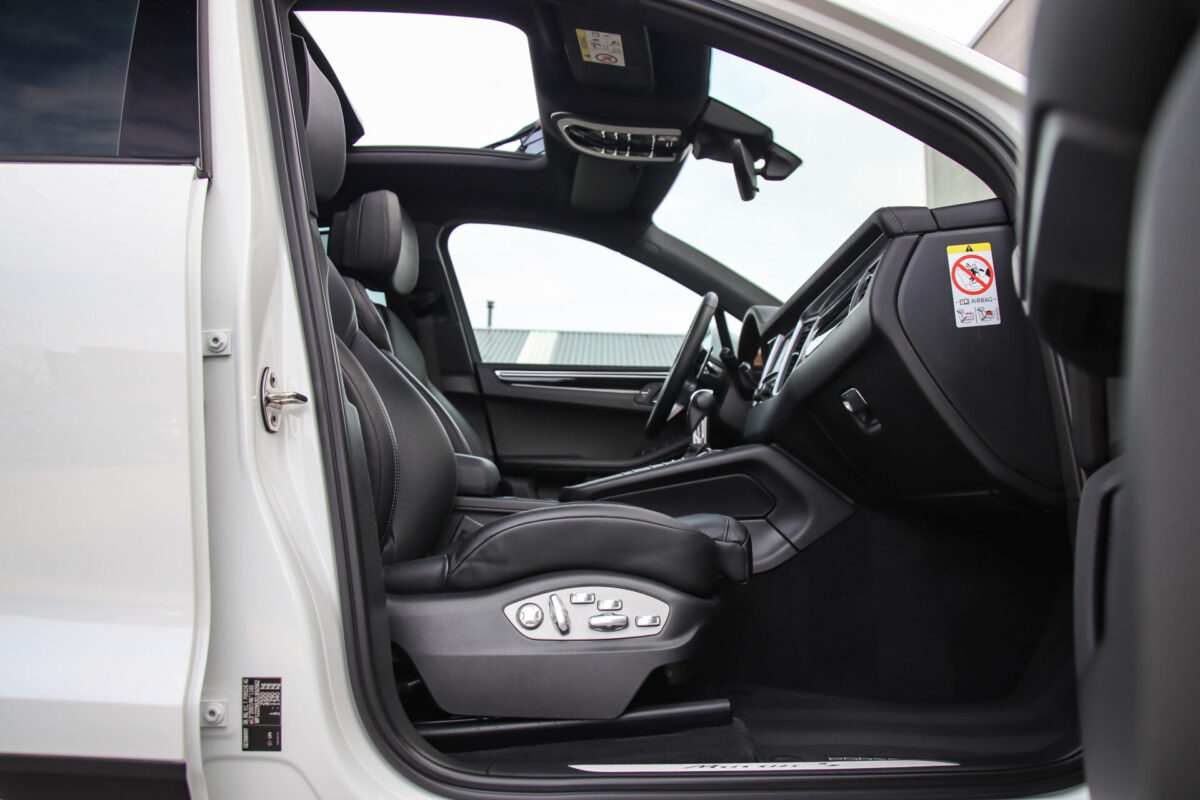 Een werkelijk in sublieme staat verkerende en perfect geconfigureerde PORSCHE Macan 3.0 S 340pk/460Nm V6 PDK! Het betreft een origineel PORSCHE geleverde, dealer- & door ons onderhouden exemplaar welke afkomstig is van de 3e eigenaar. Slechts 76.639 logisch gecontroleerde kilometers. De Pure White lak in combinatie met de zwarte exterieurdetails, het Panoramisch glazen schuif-/kanteldak, het Sport Chrono pakket en meest luxe 18-voudig Adaptieve zwart geperforeerd lederen sportstoelen geven deze Macan de juiste sportieve uitstraling. De getoonde onbeschadigde 21inch Sport Classic hoogglans zwarte replica velgenset met 4x Continental zomerbanden is tegen geringe meerprijs van €1995,- te verkrijgen.