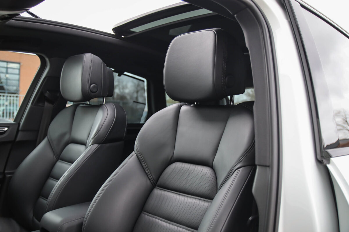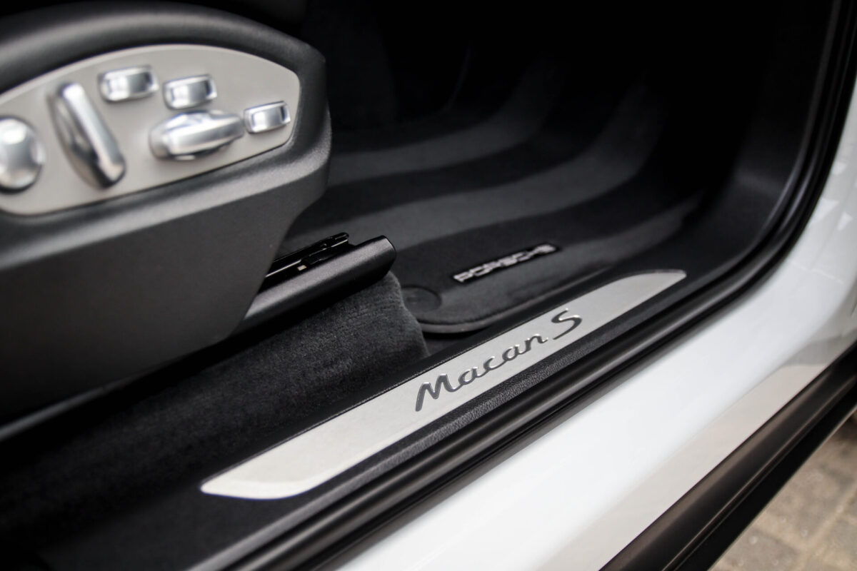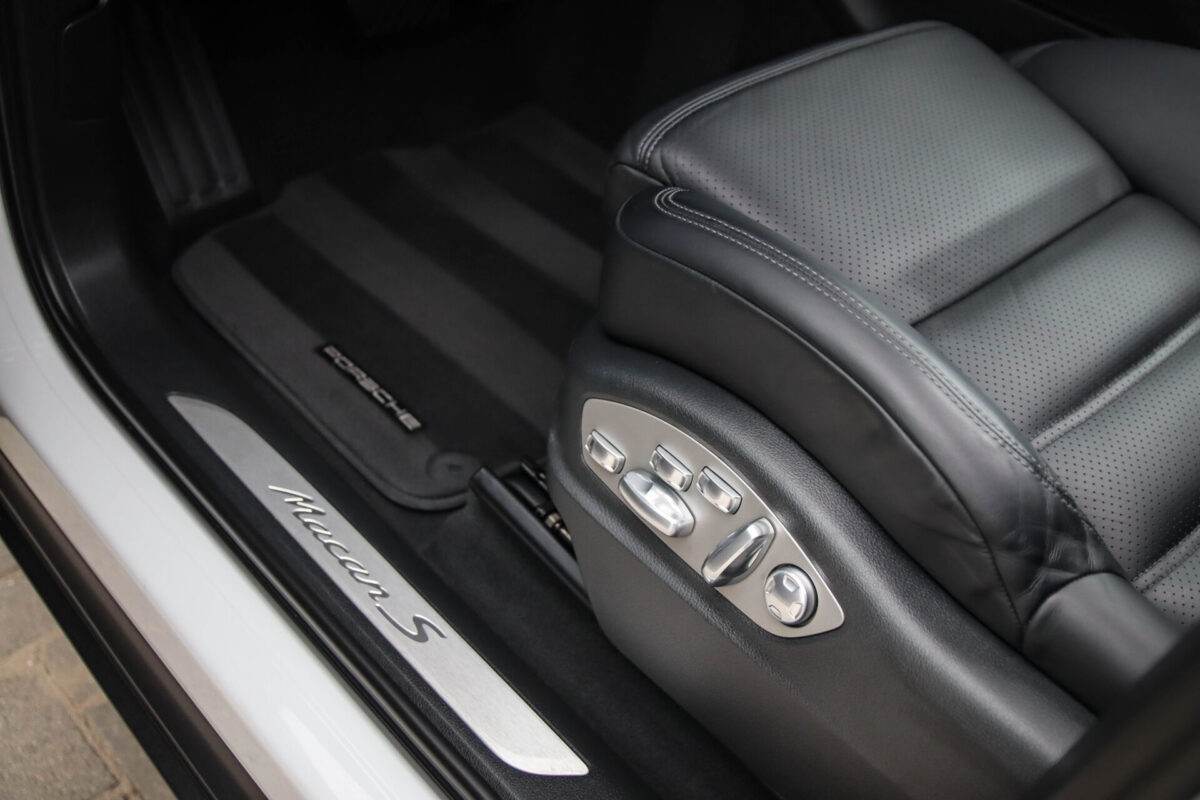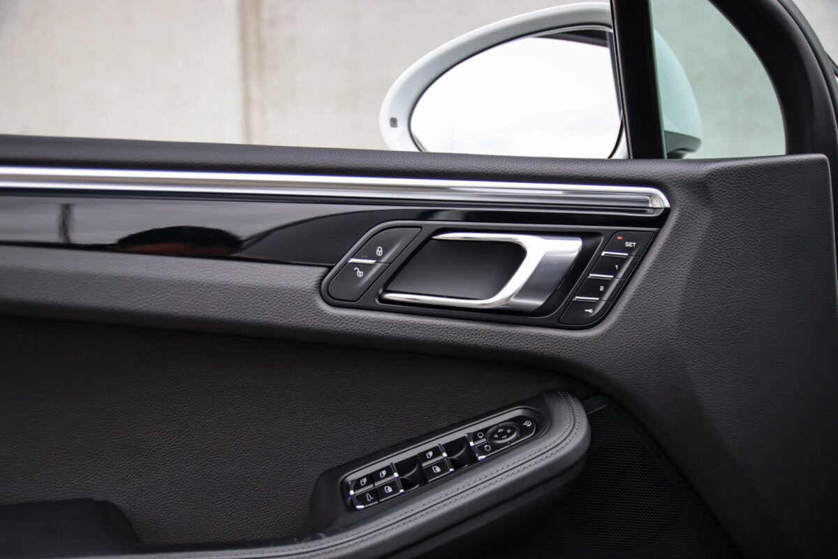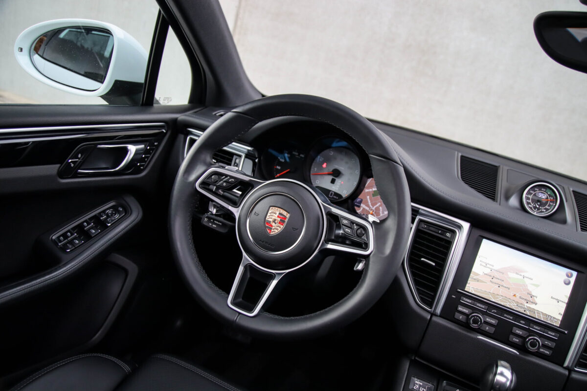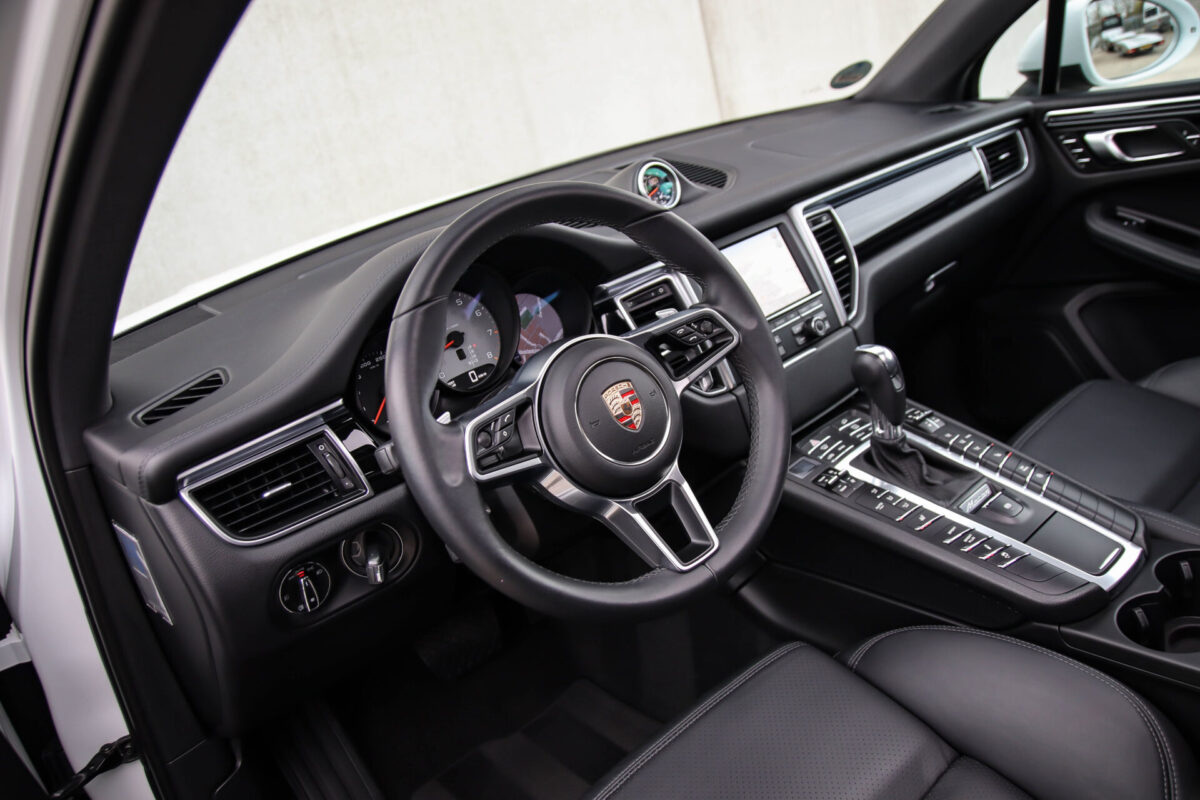Een werkelijk in sublieme staat verkerende en perfect geconfigureerde PORSCHE Macan 3.0 S 340pk/460Nm V6 PDK! Het betreft een origineel PORSCHE geleverde, dealer- & door ons onderhouden exemplaar welke afkomstig is van de 3e eigenaar. Slechts 76.639 logisch gecontroleerde kilometers. De Pure White lak in combinatie met de zwarte exterieurdetails, het Panoramisch glazen schuif-/kanteldak, het Sport Chrono pakket en meest luxe 18-voudig Adaptieve zwart geperforeerd lederen sportstoelen geven deze Macan de juiste sportieve uitstraling. De getoonde onbeschadigde 21inch Sport Classic hoogglans zwarte replica velgenset met 4x Continental zomerbanden is tegen geringe meerprijs van €1995,- te verkrijgen.